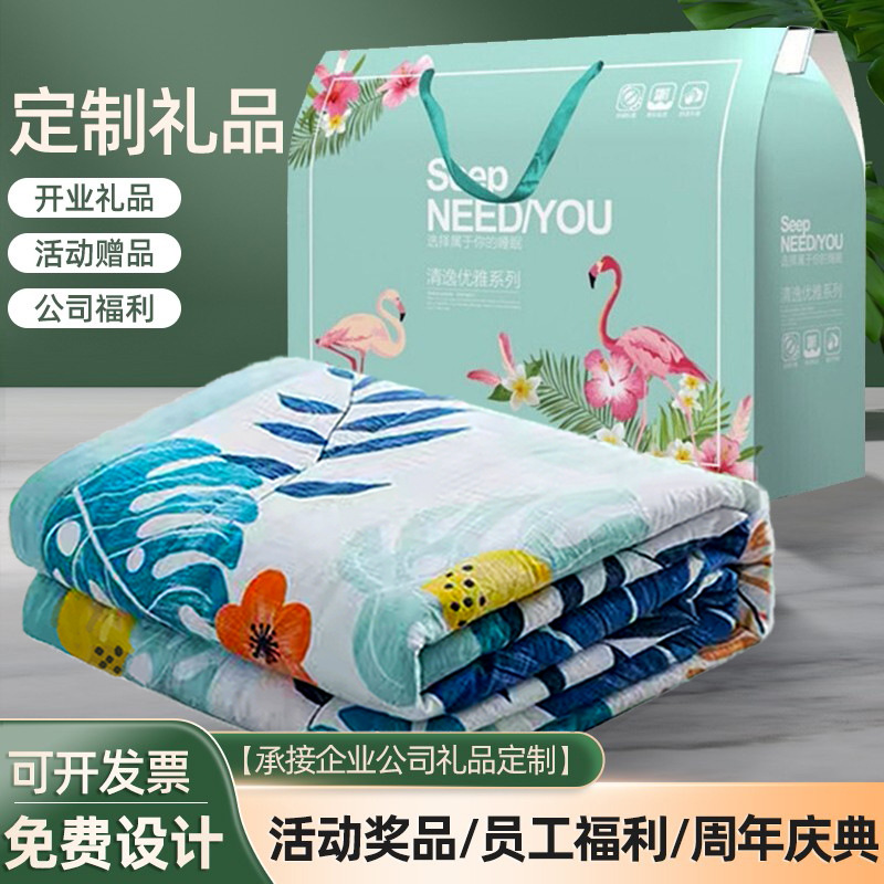 厂家批发水洗棉夏凉被子会销礼品水洗空调被礼盒装福利礼品夏凉被