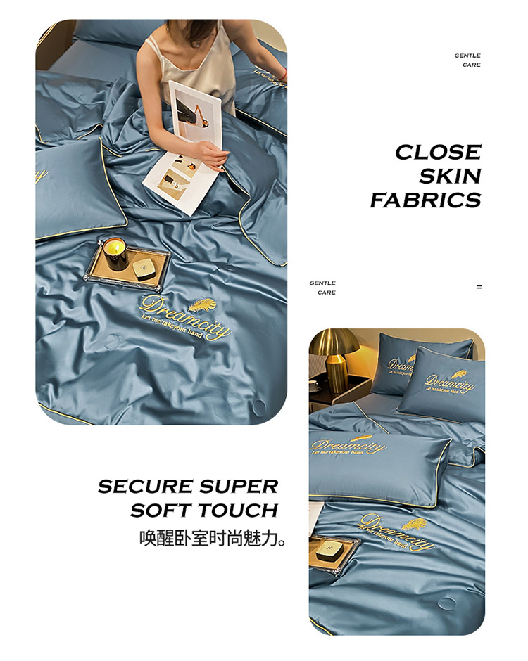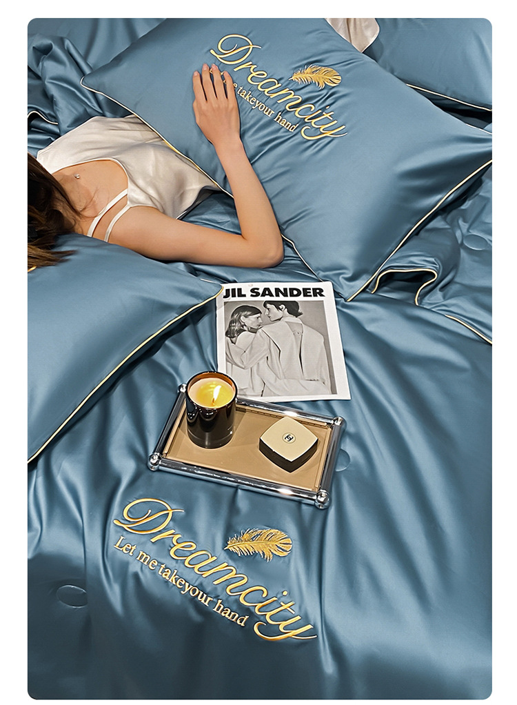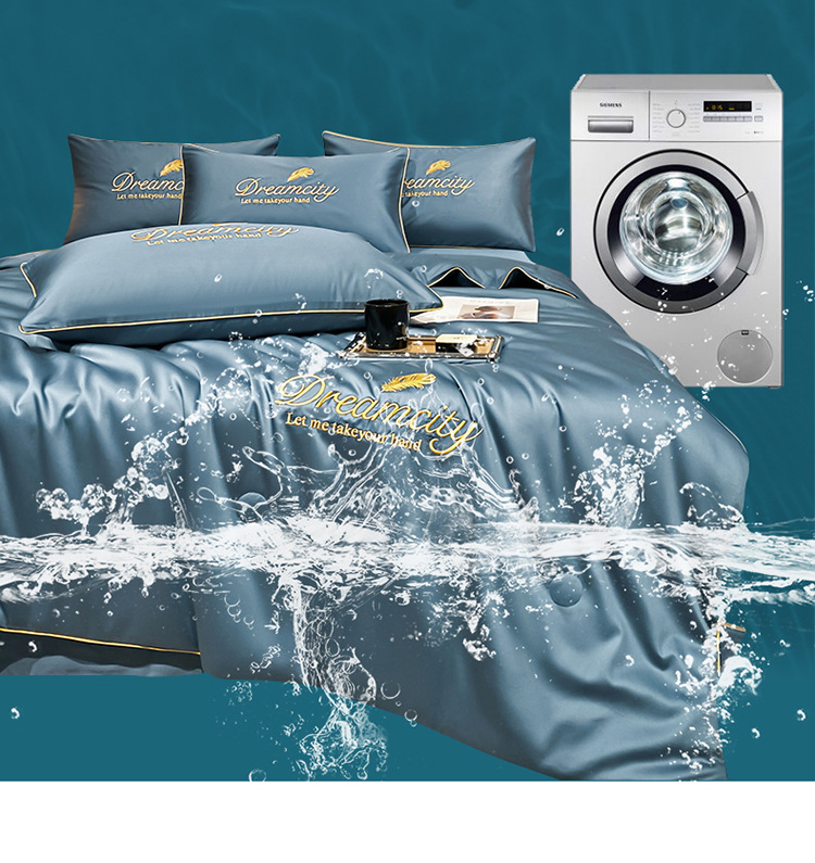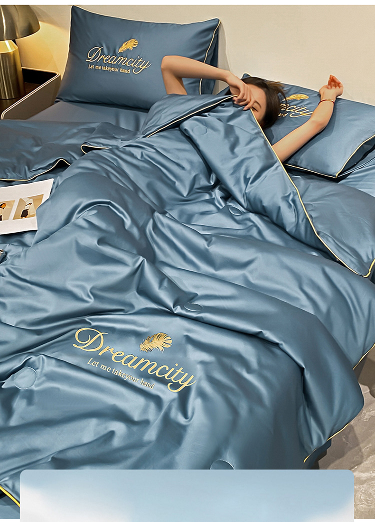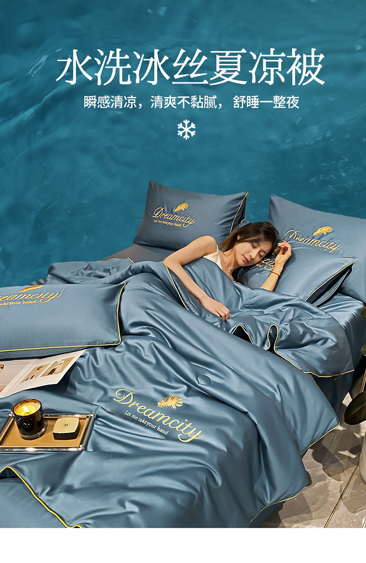 跨境简约水洗天丝空调被冰丝印染刺绣天丝夏被四件套夏凉被单夏被