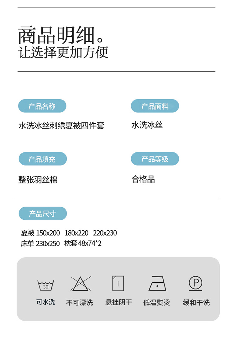 | 200 * 230cm summer quilt four-piece set(200*230cm夏被四件套) | USD $18.38 | 1999 set available |