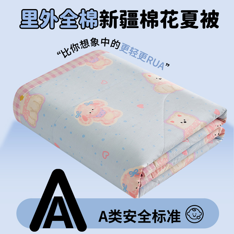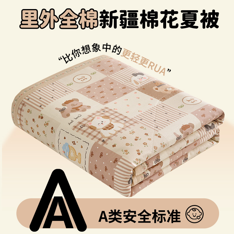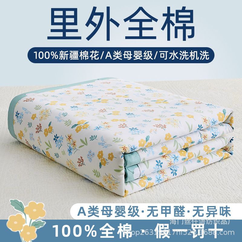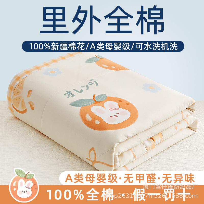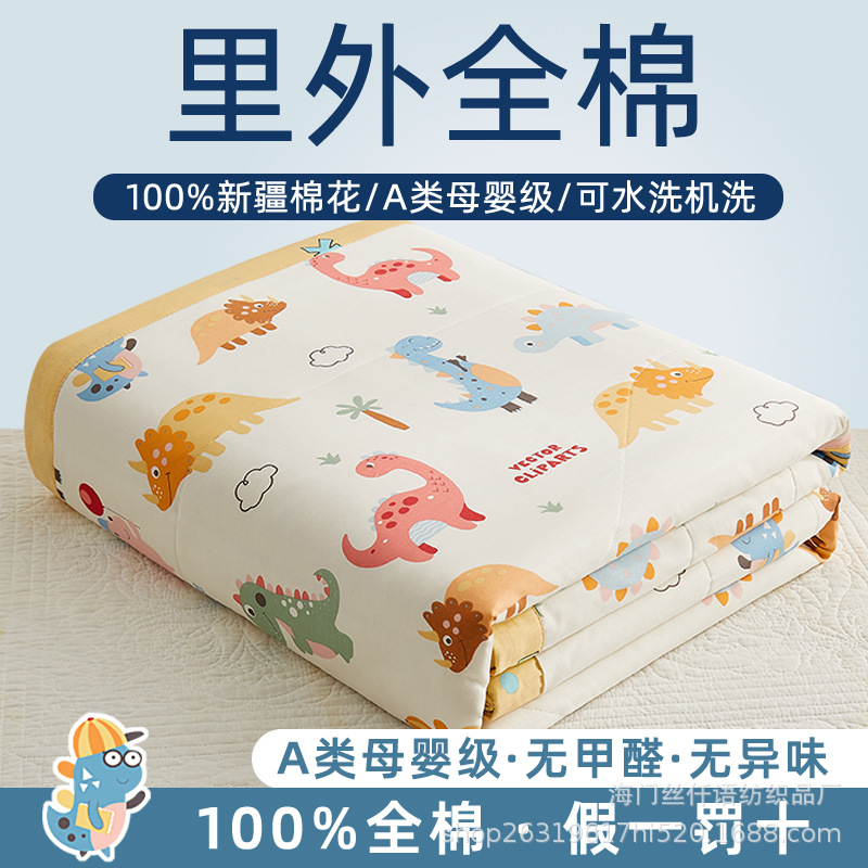 A类纯棉夏凉被四件套可机洗里外全棉空调被棉花夏被儿童园小被子