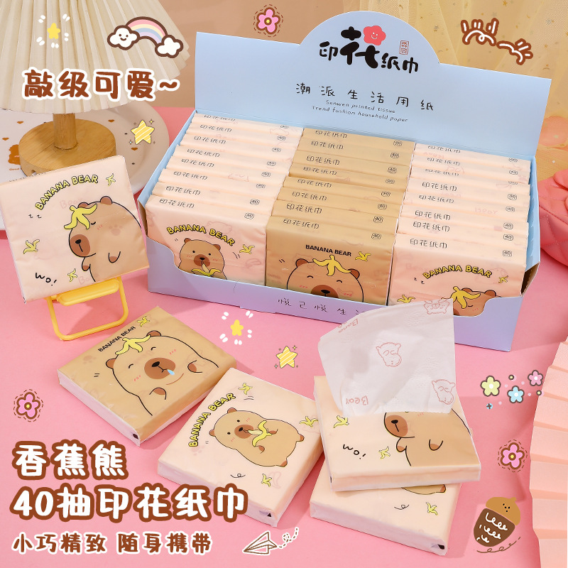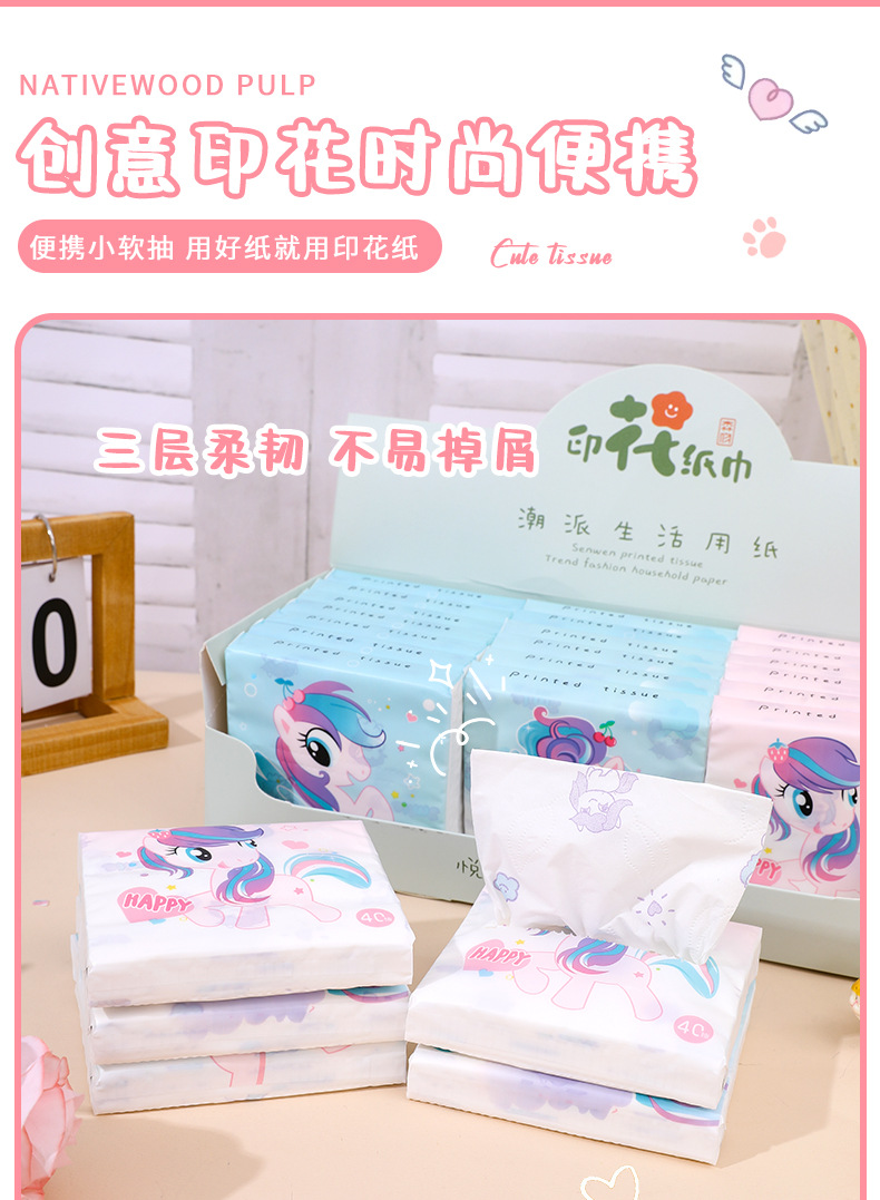 40抽小宝马儿童学生小包便携式印花抽纸巾原生木浆干湿两用抽纸巾