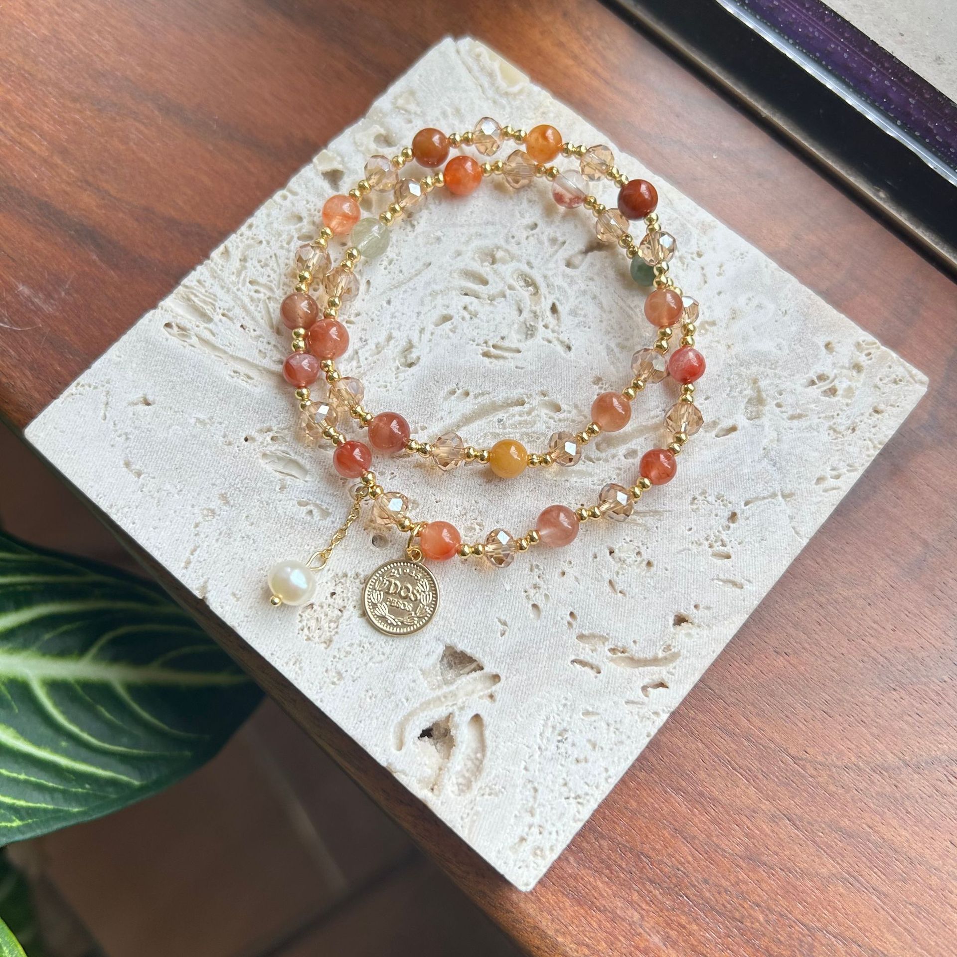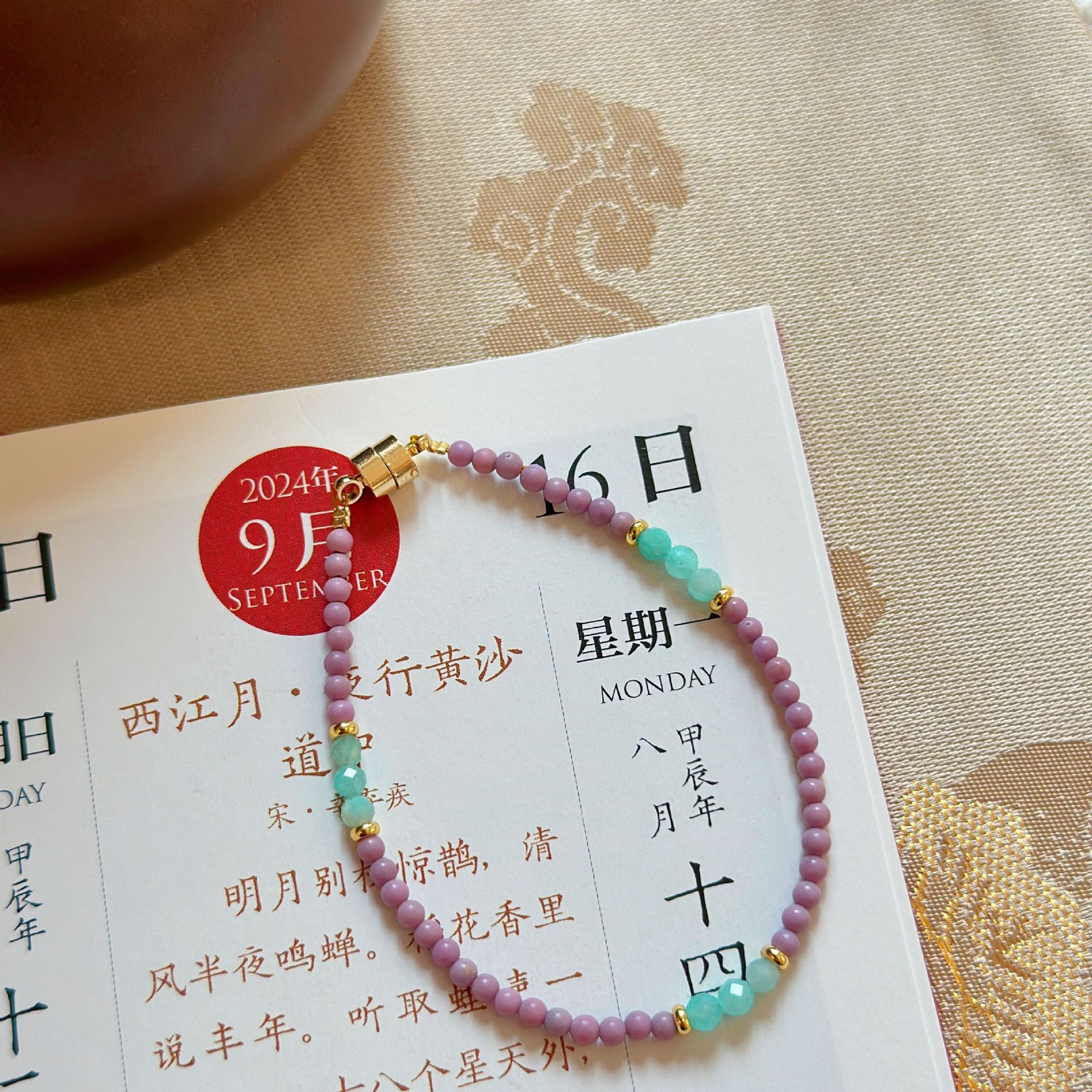 新中式彩色天然石手链小众设计感多巴胺百搭手串饰品义乌批发