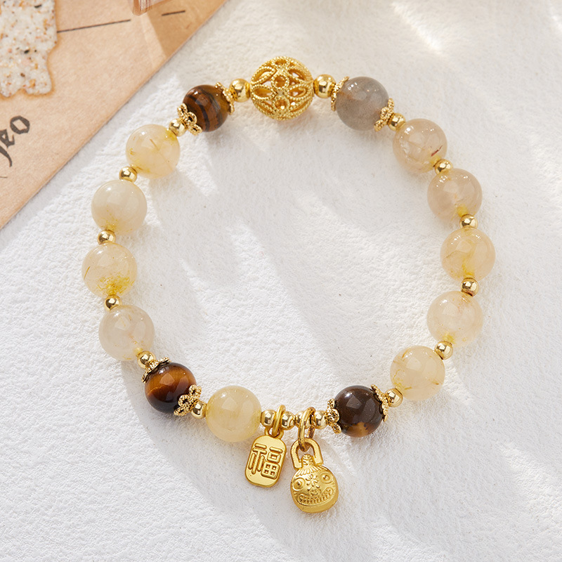 金发晶,虎眼石,月光石,铜镀金配饰,合金配饰