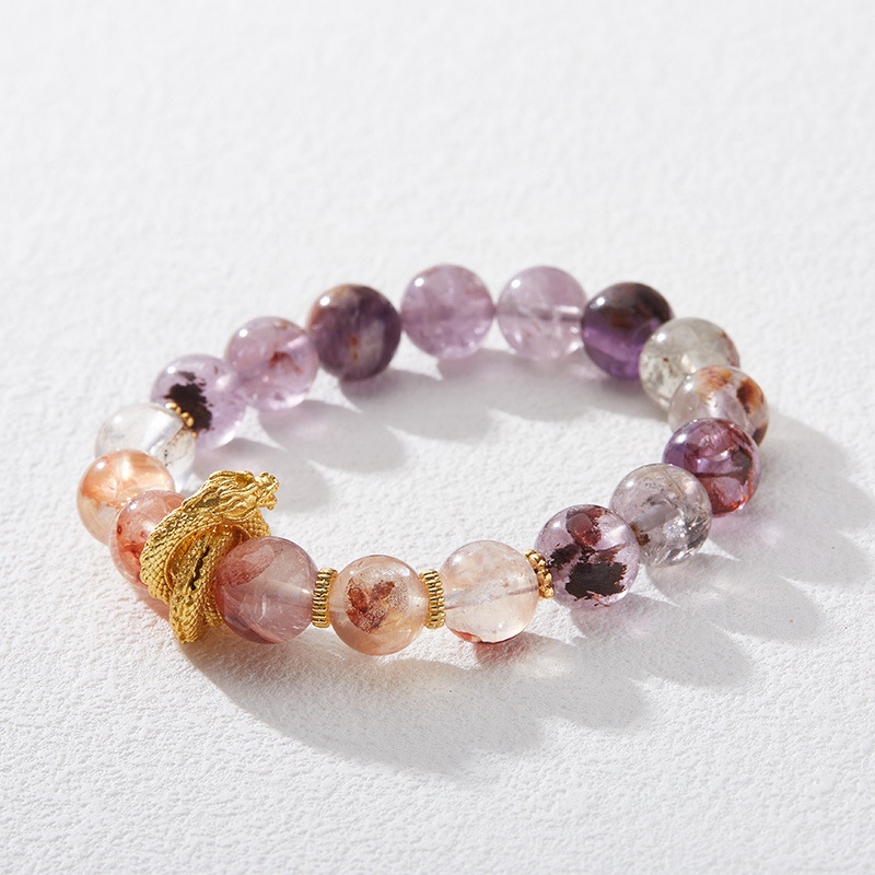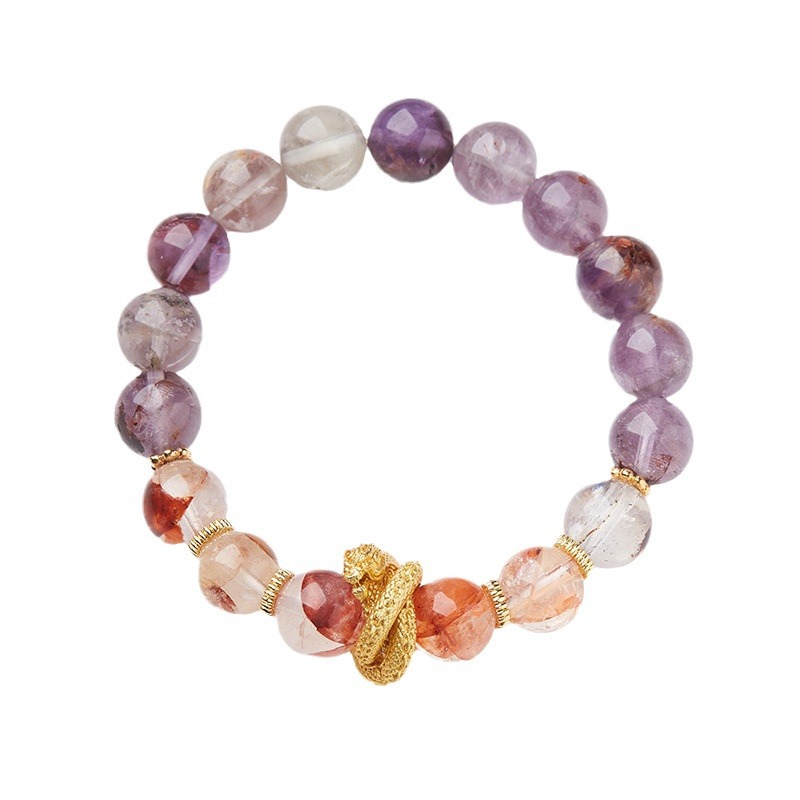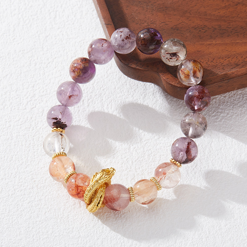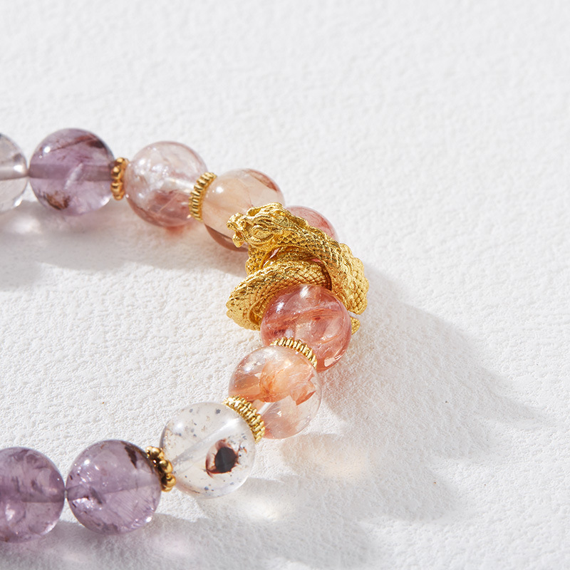 九紫离火 “龙翻身,祥瑞耀” 盘龙设计款运手链紫幽灵红胶花手串