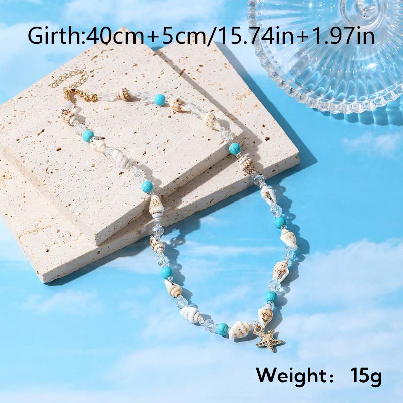 新款夏季海星海螺项链女士时尚海星吊坠米珠项链贝壳项链饰品批发
