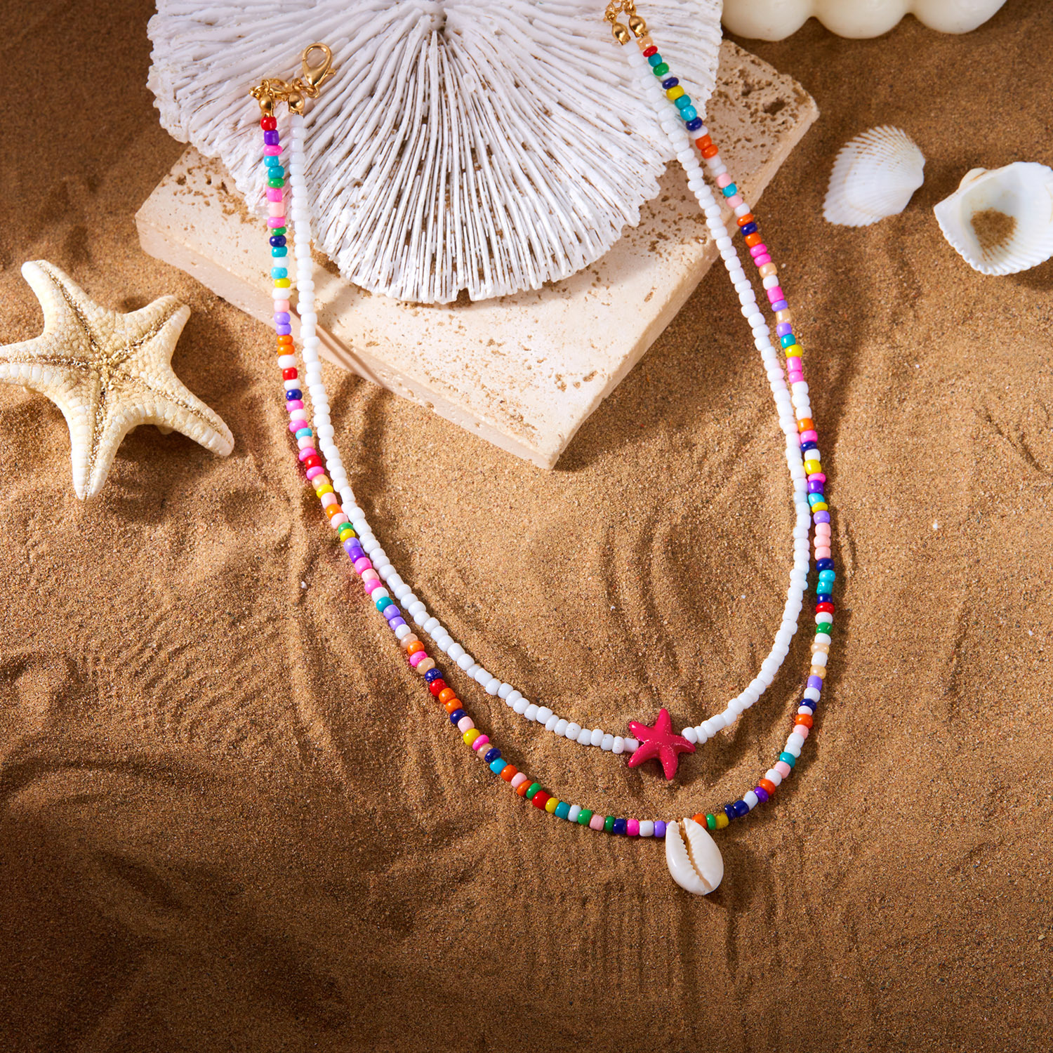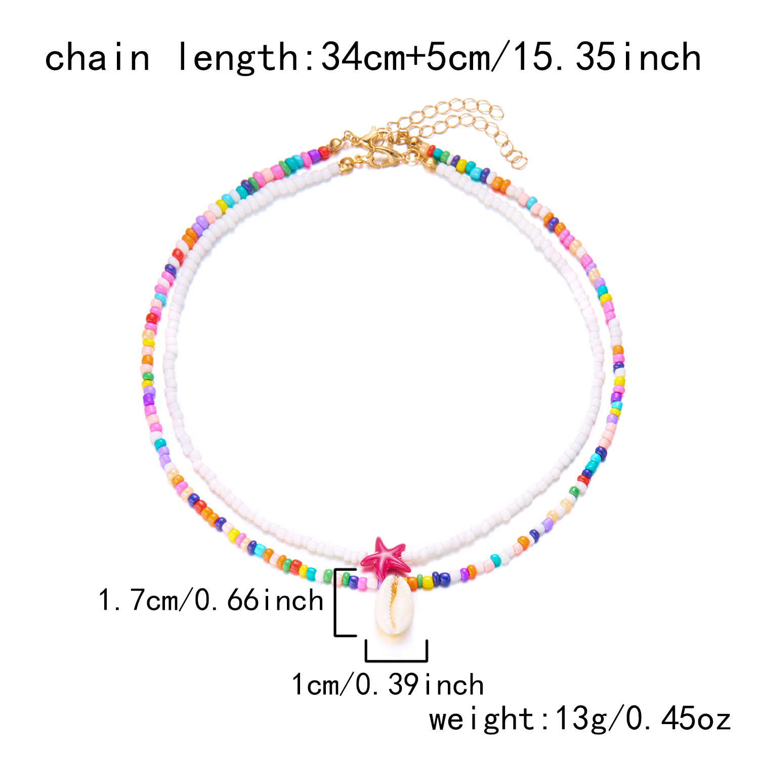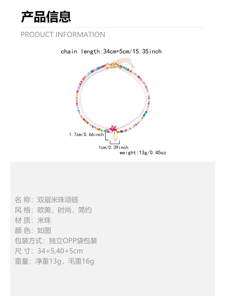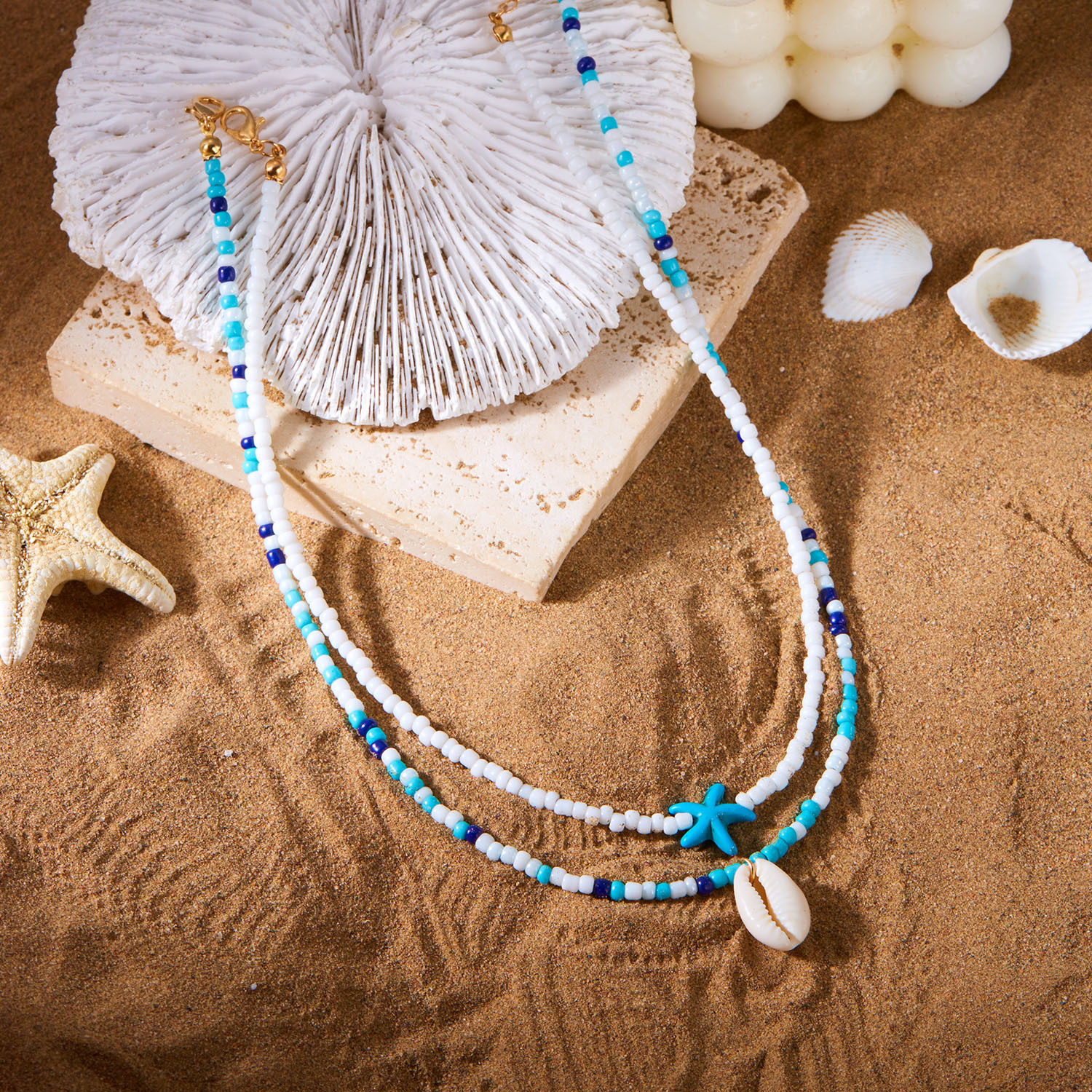 欧美时尚双层海星贝壳米珠颈链卡脖链项链夏季百搭女式米珠锁骨链