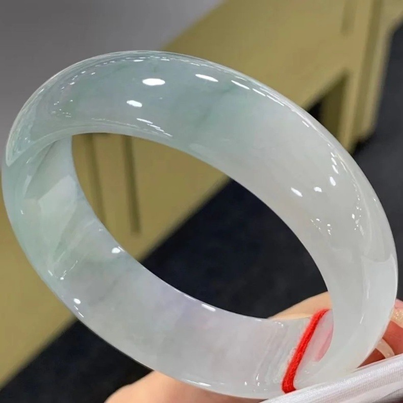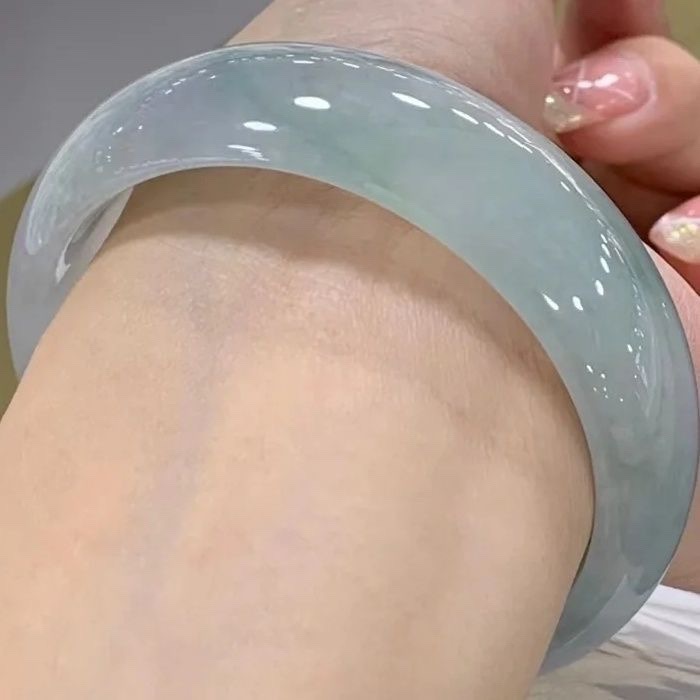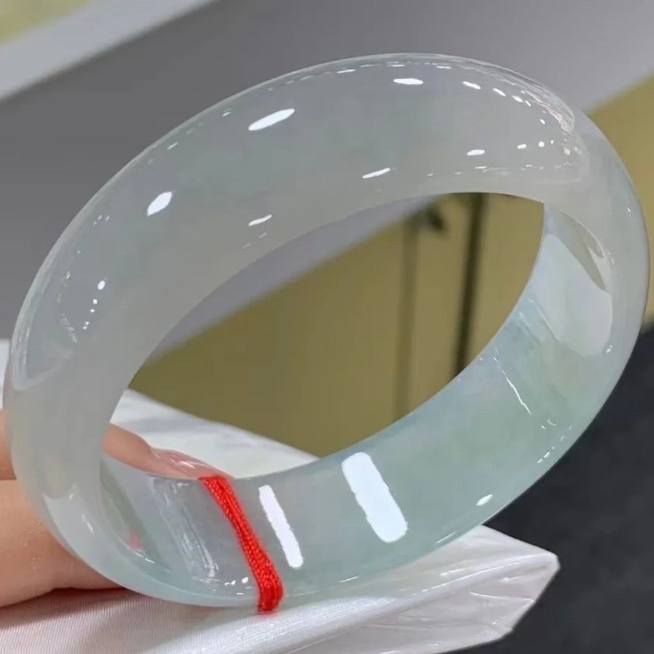 缅甸处理翡翠手镯冰种玉手镯浅绿飘花玉镯子女款白月光玉镯送人礼