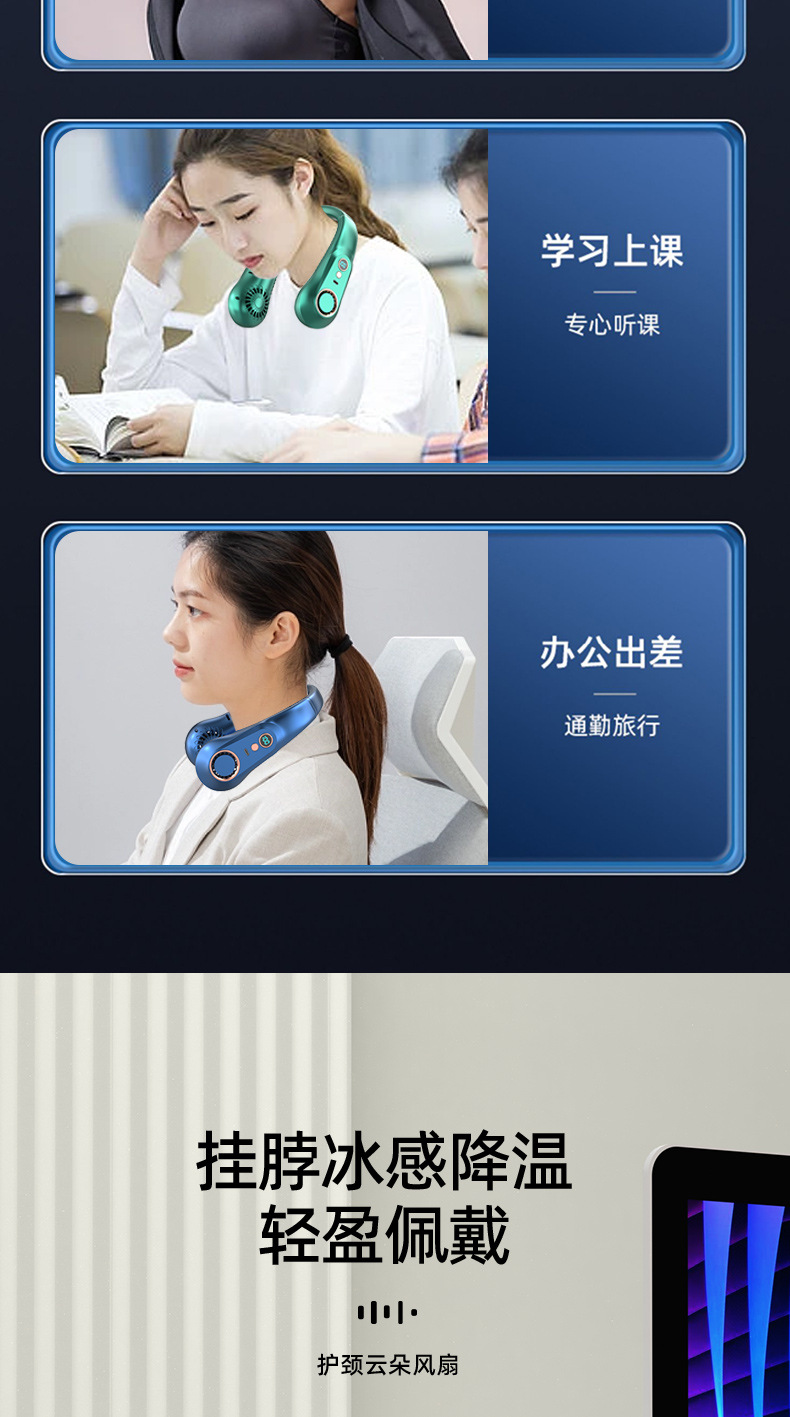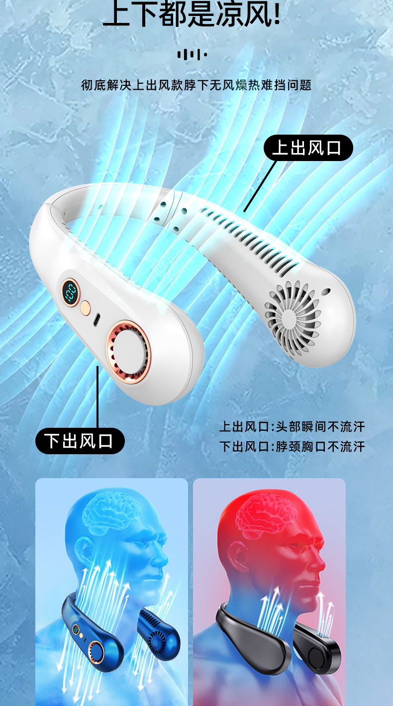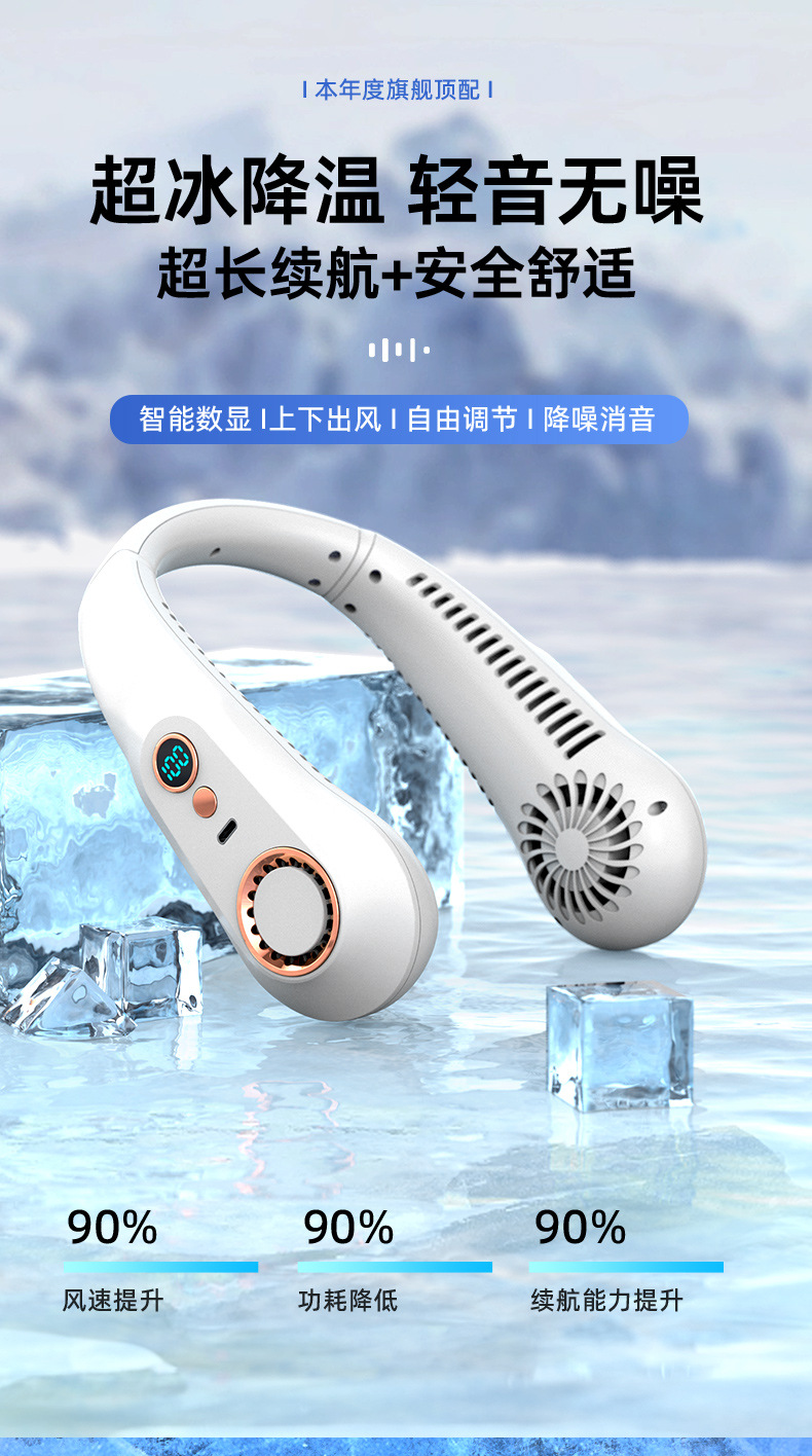 P30冰感挂脖风扇usb便携式静音无叶小风扇学生办公运动数显空调