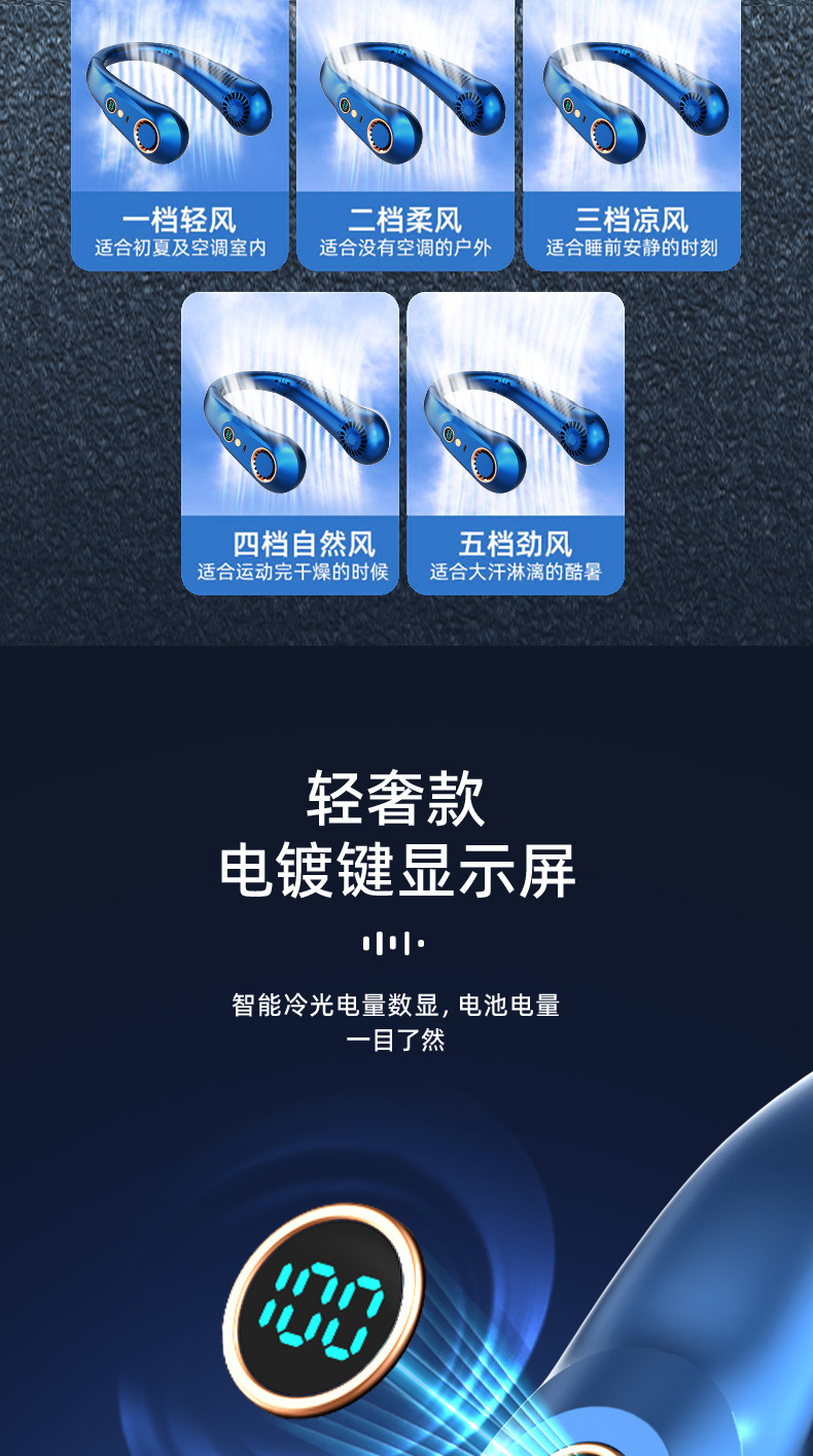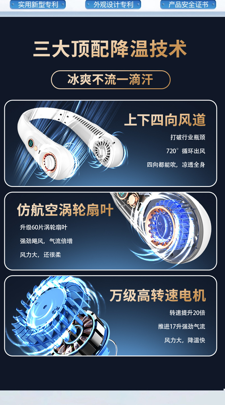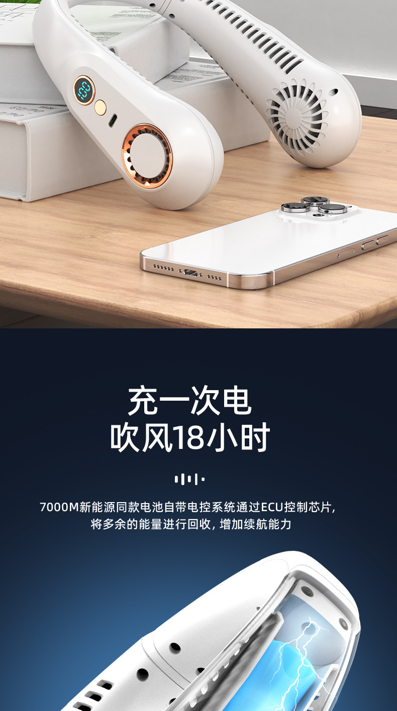 P30冰感挂脖风扇usb便携式静音无叶小风扇学生办公运动数显空调