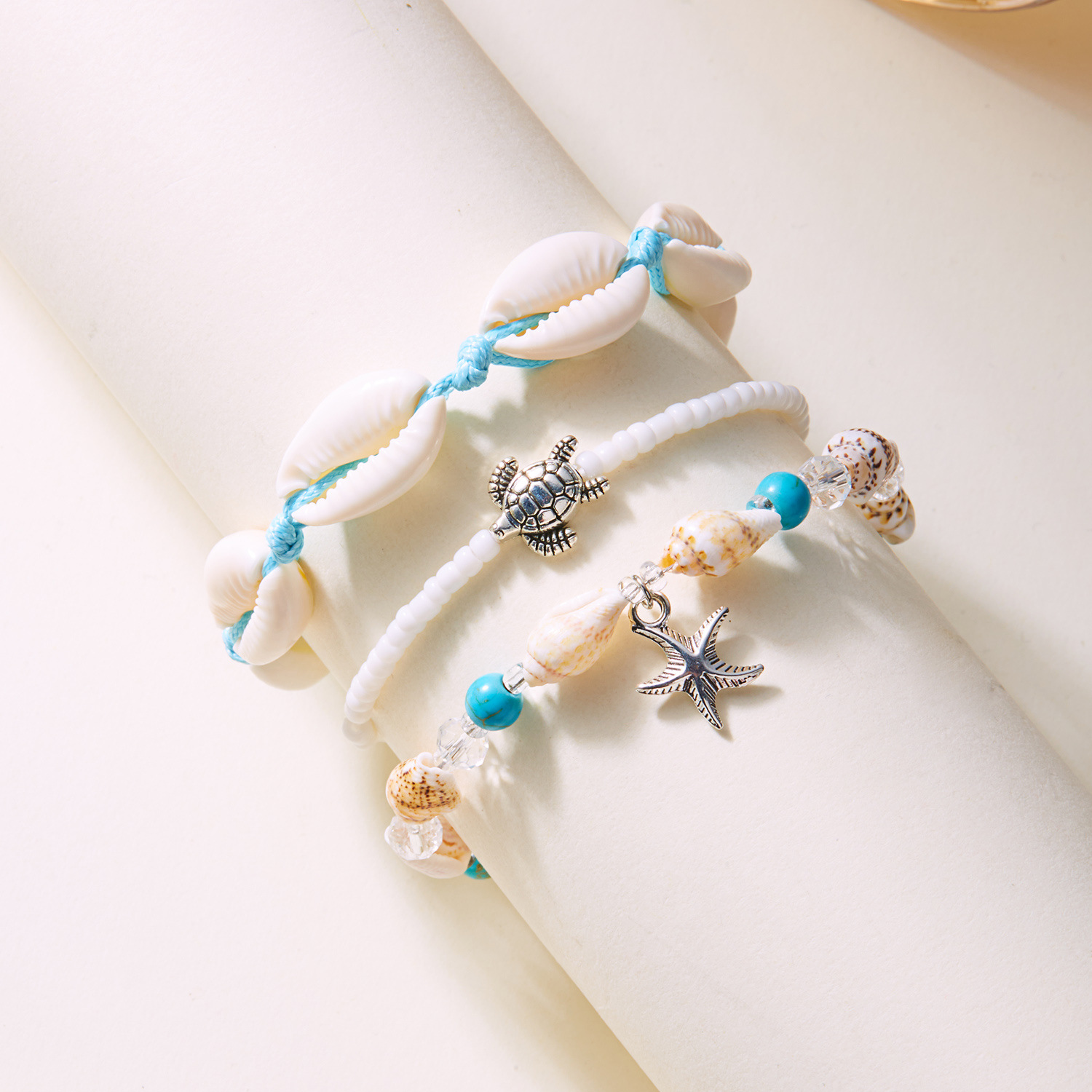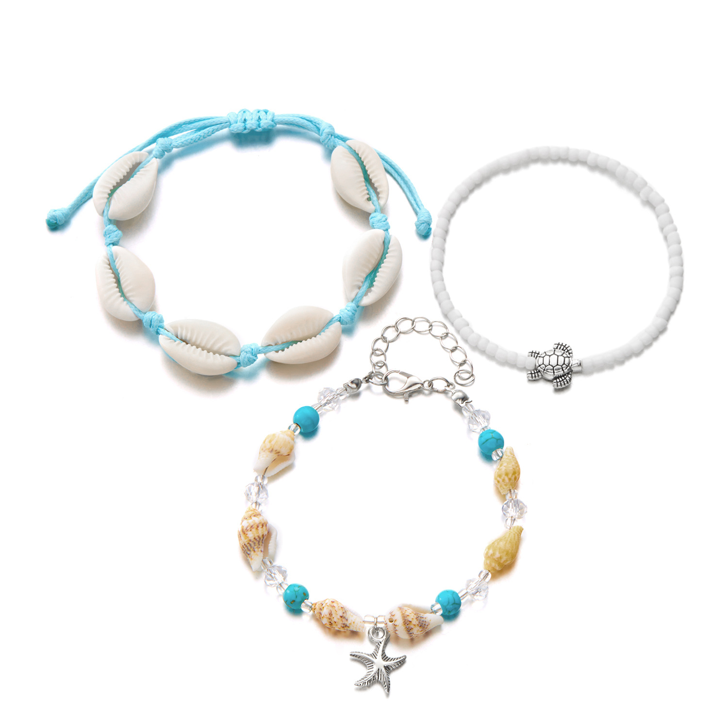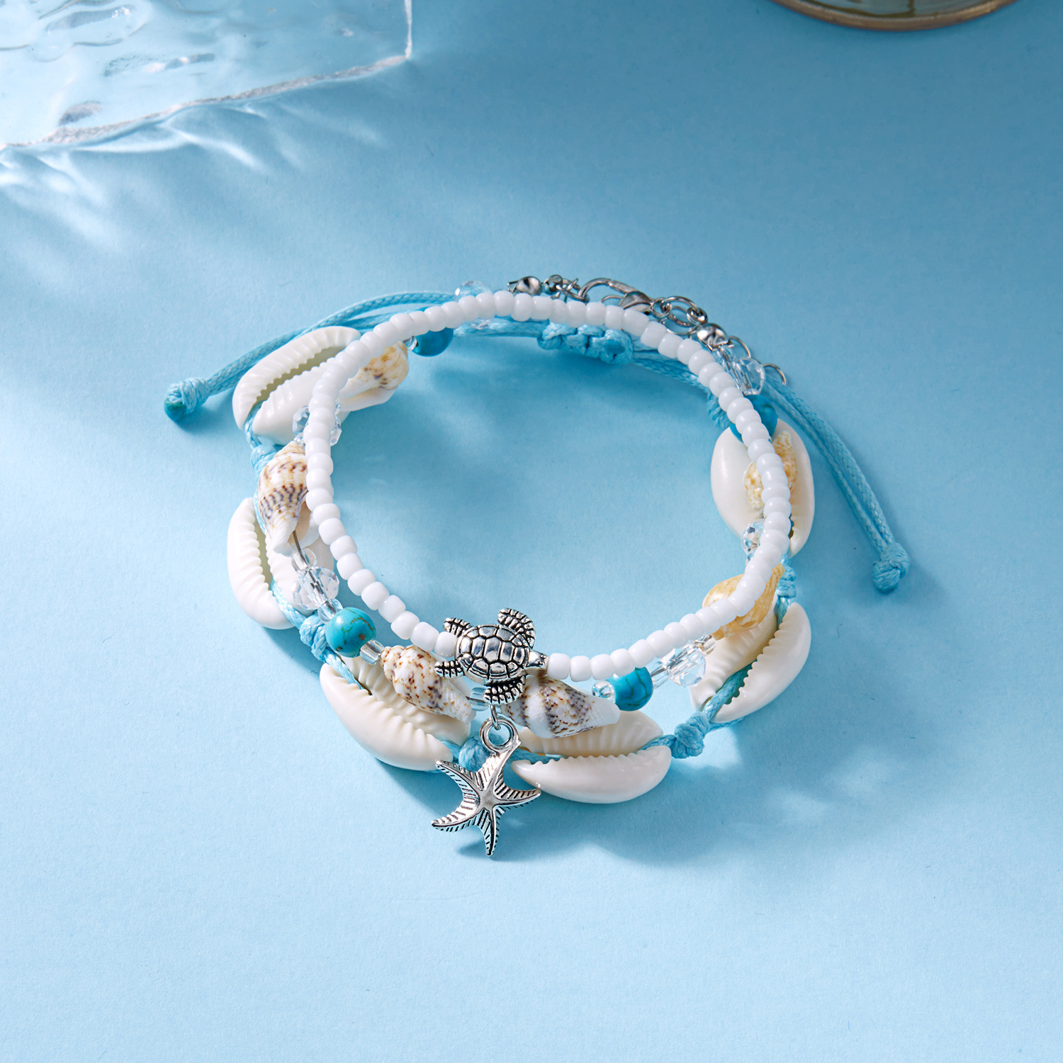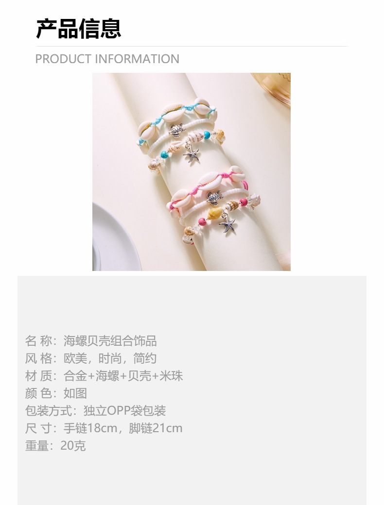 厂家直销新款海螺贝壳海星乌龟米珠手链脚链套装百搭三层海螺饰品