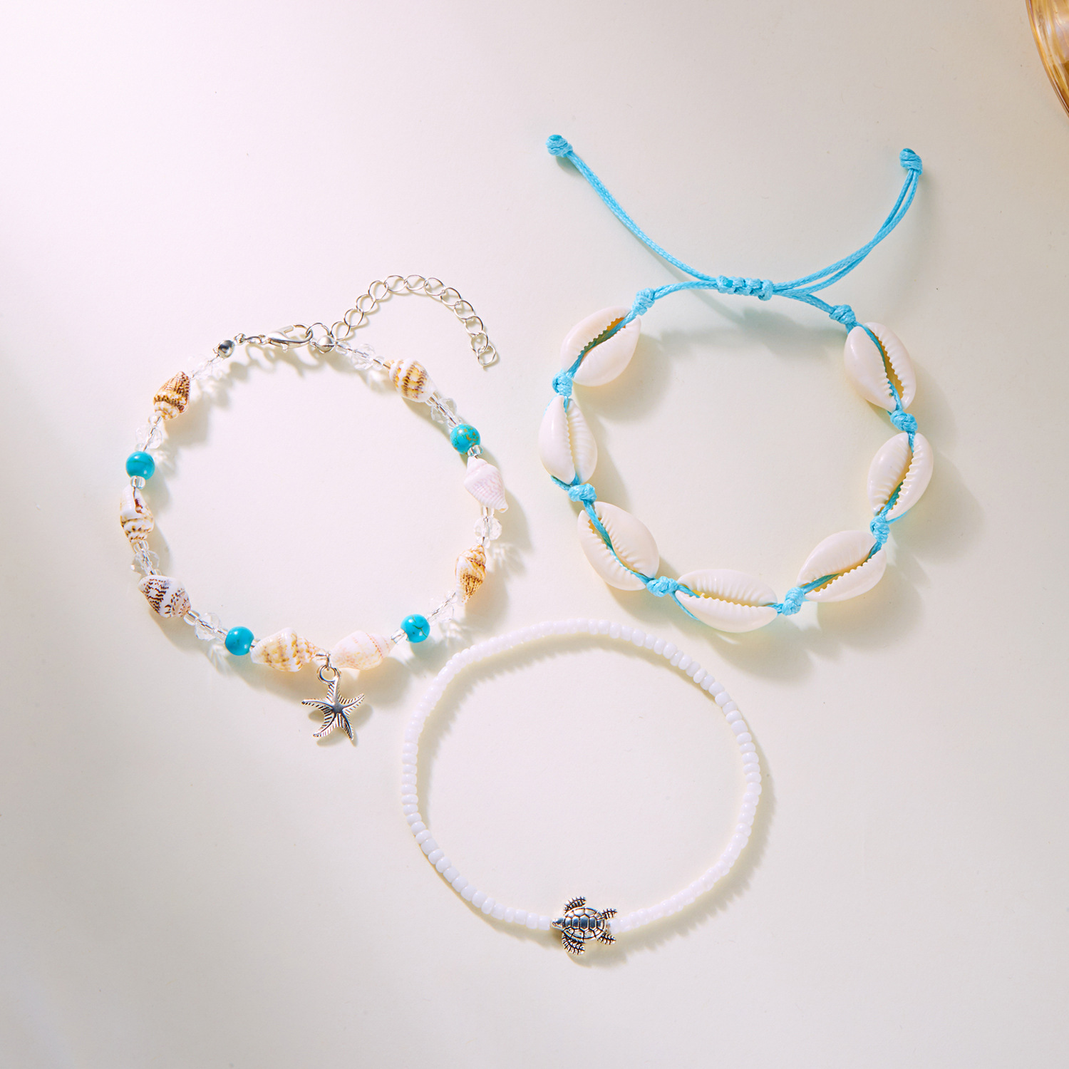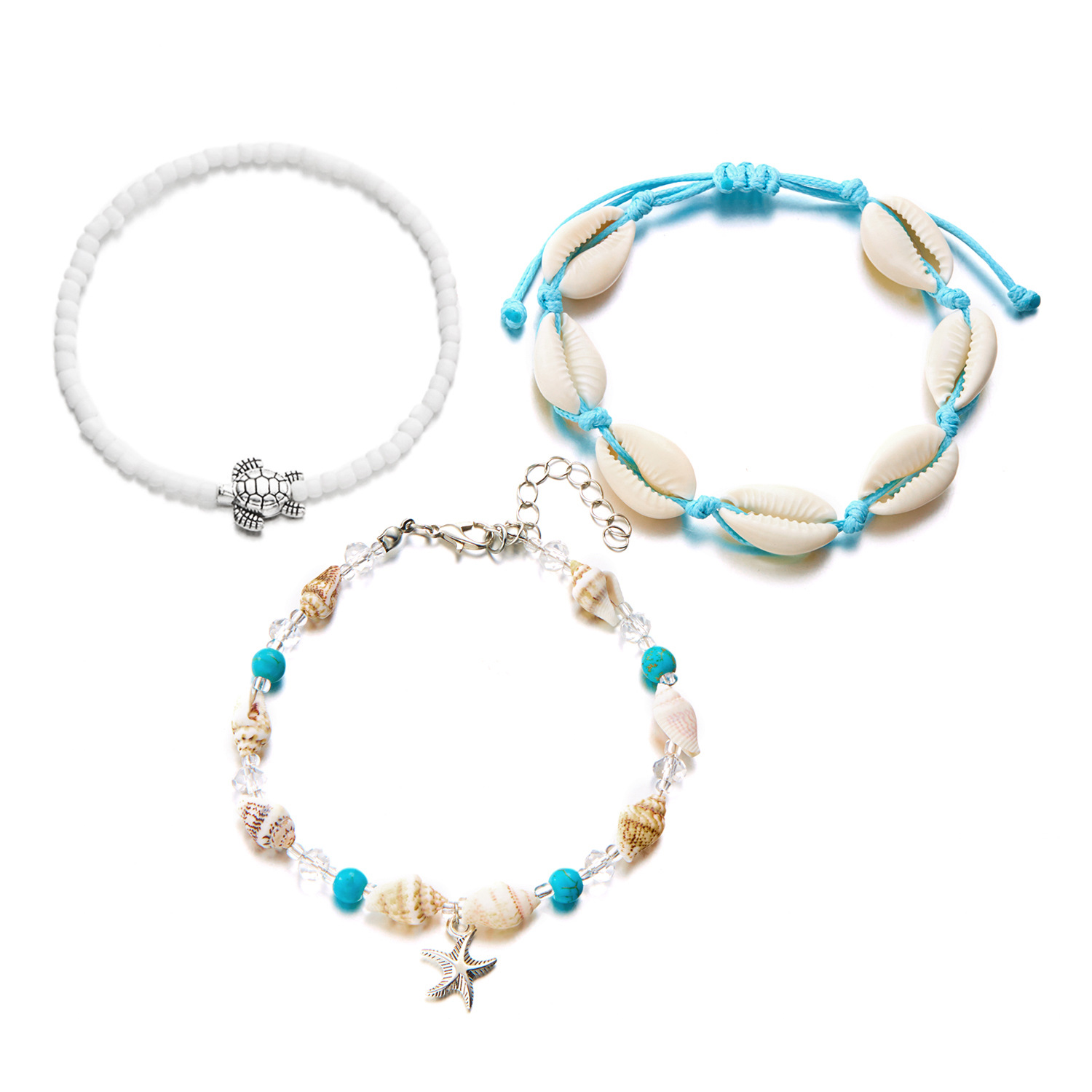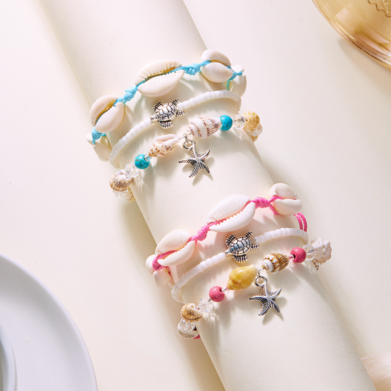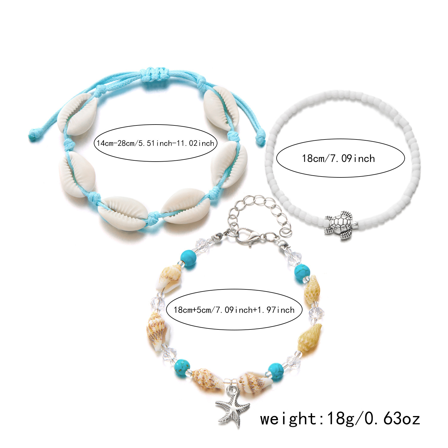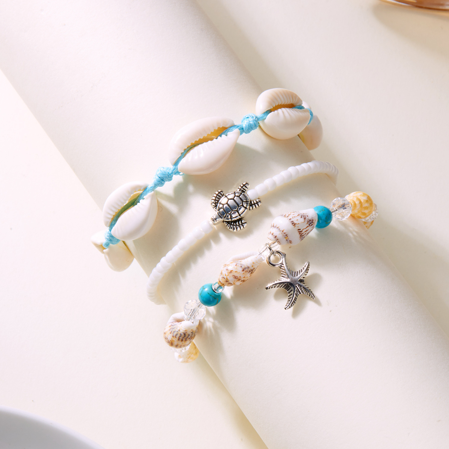 厂家直销新款海螺贝壳海星乌龟米珠手链脚链套装百搭三层海螺饰品