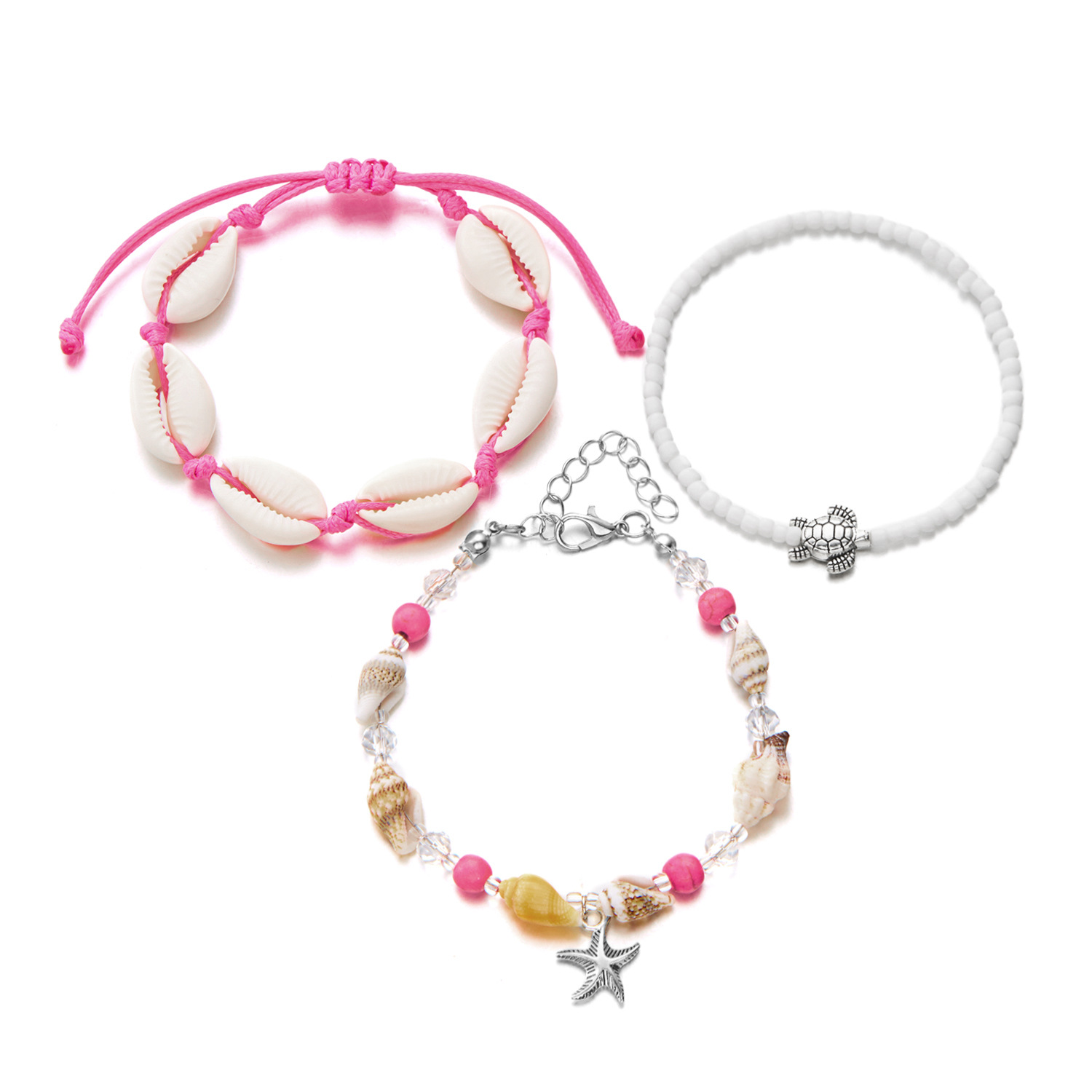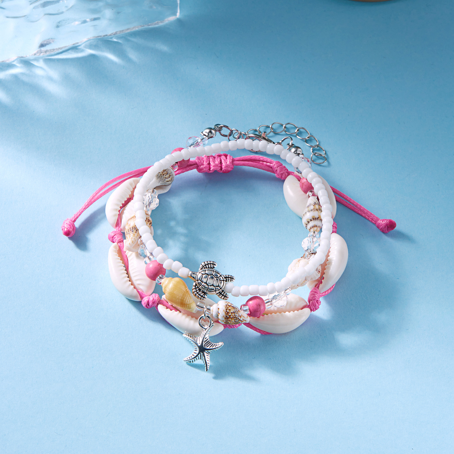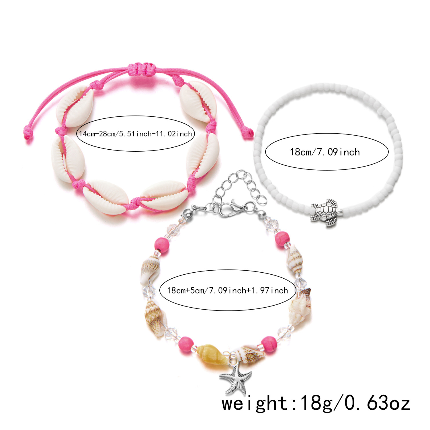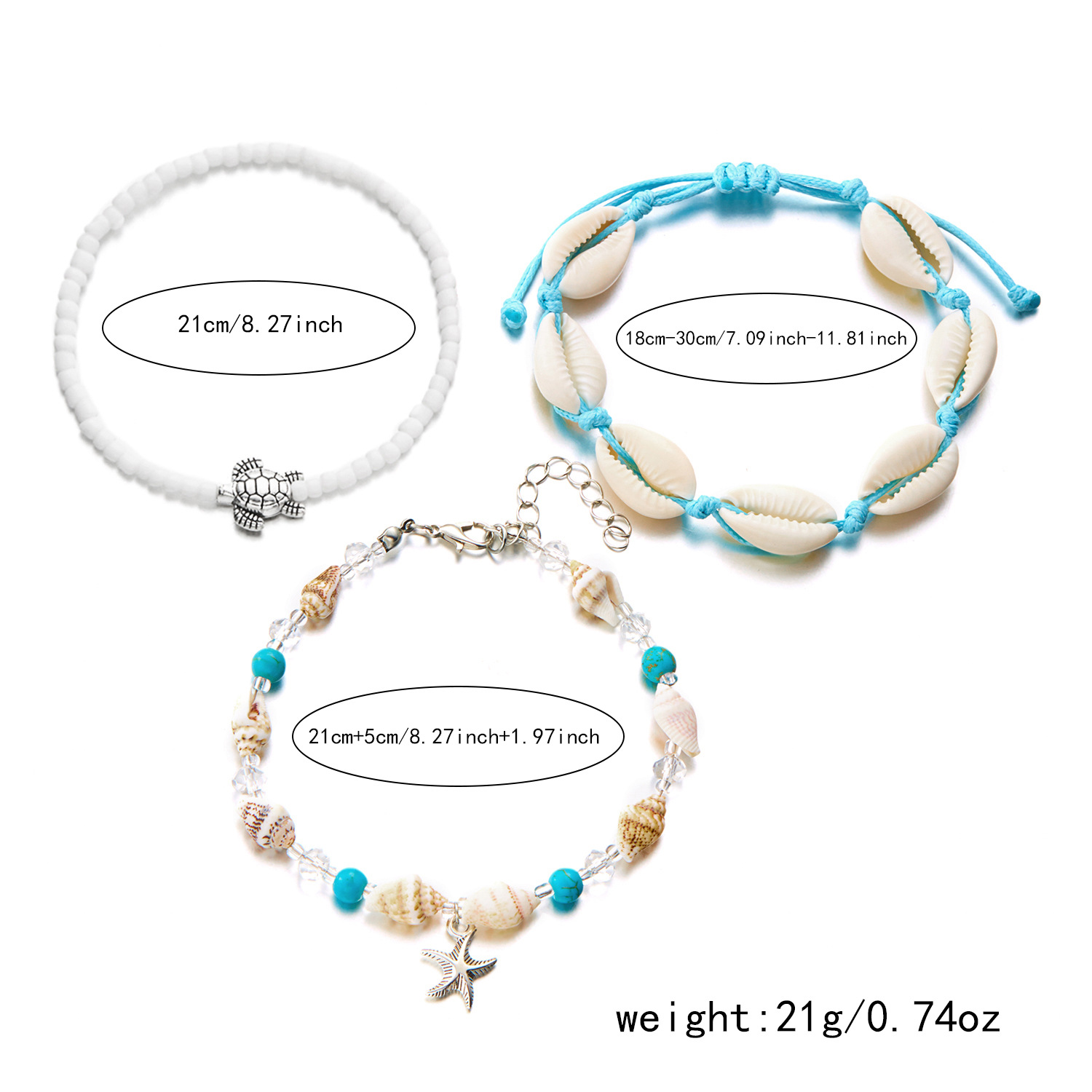 厂家直销新款海螺贝壳海星乌龟米珠手链脚链套装百搭三层海螺饰品