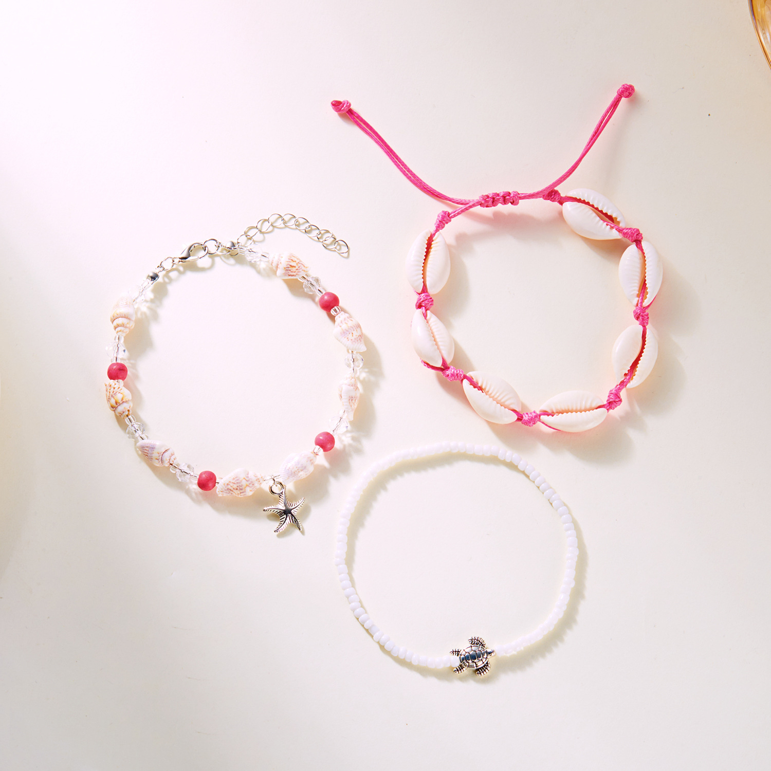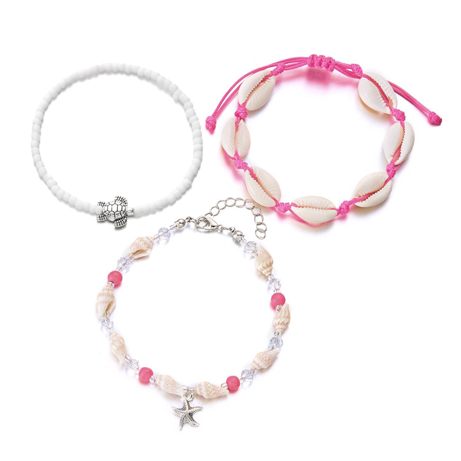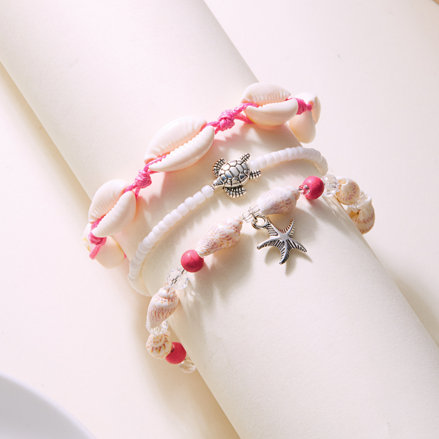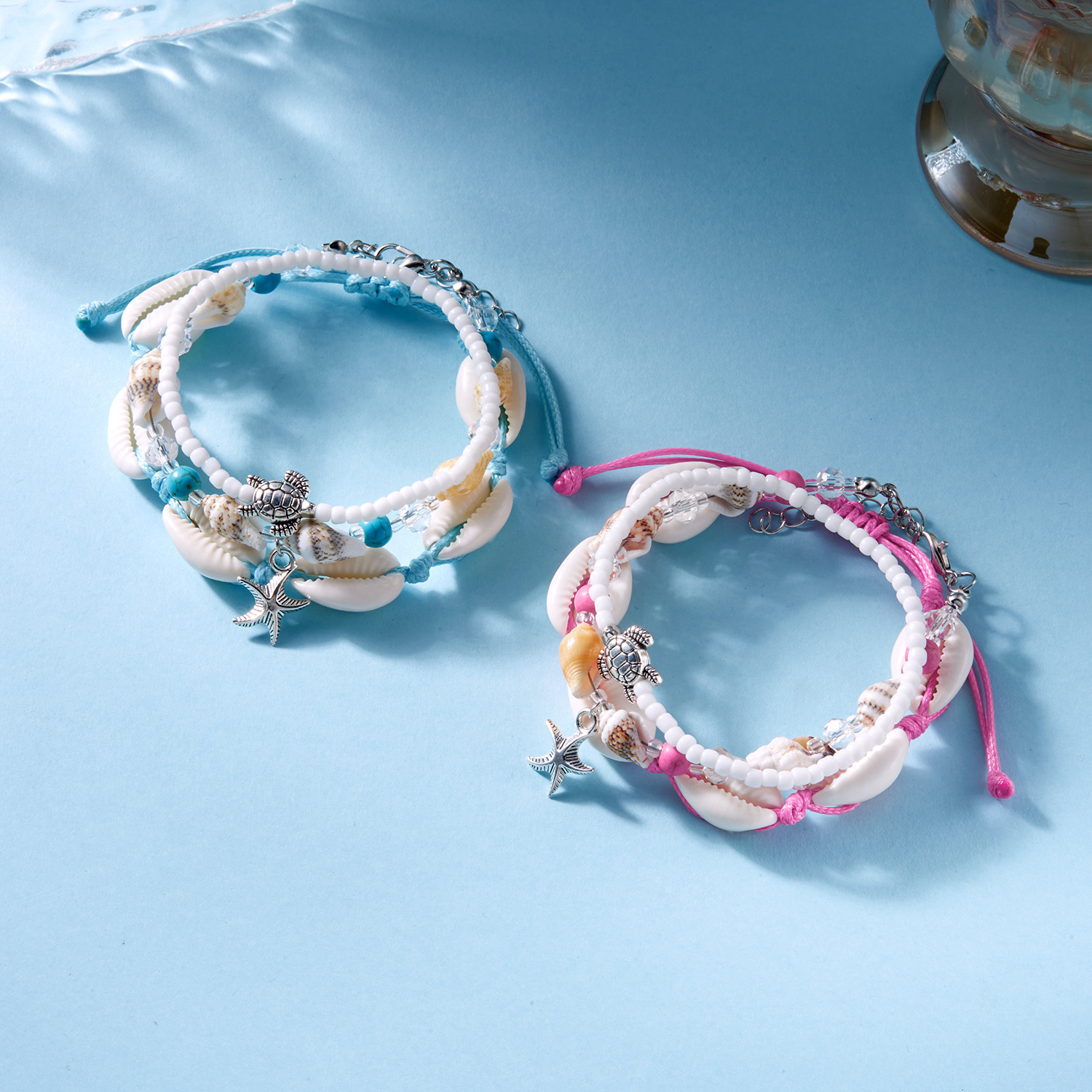 厂家直销新款海螺贝壳海星乌龟米珠手链脚链套装百搭三层海螺饰品