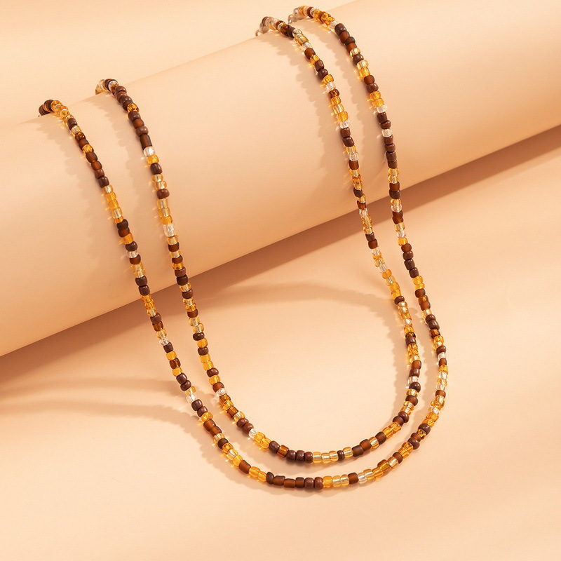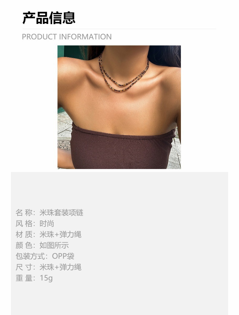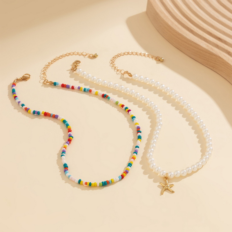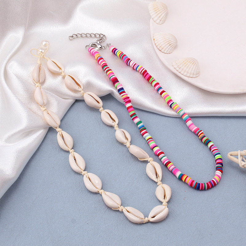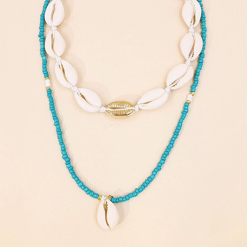 欧美跨境时尚米珠项链个性夏日贝壳米珠套装项链叠戴双层项链
