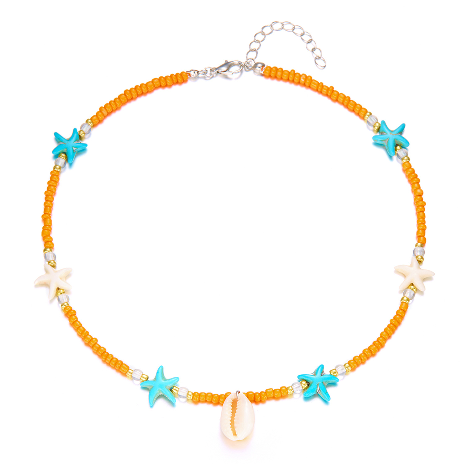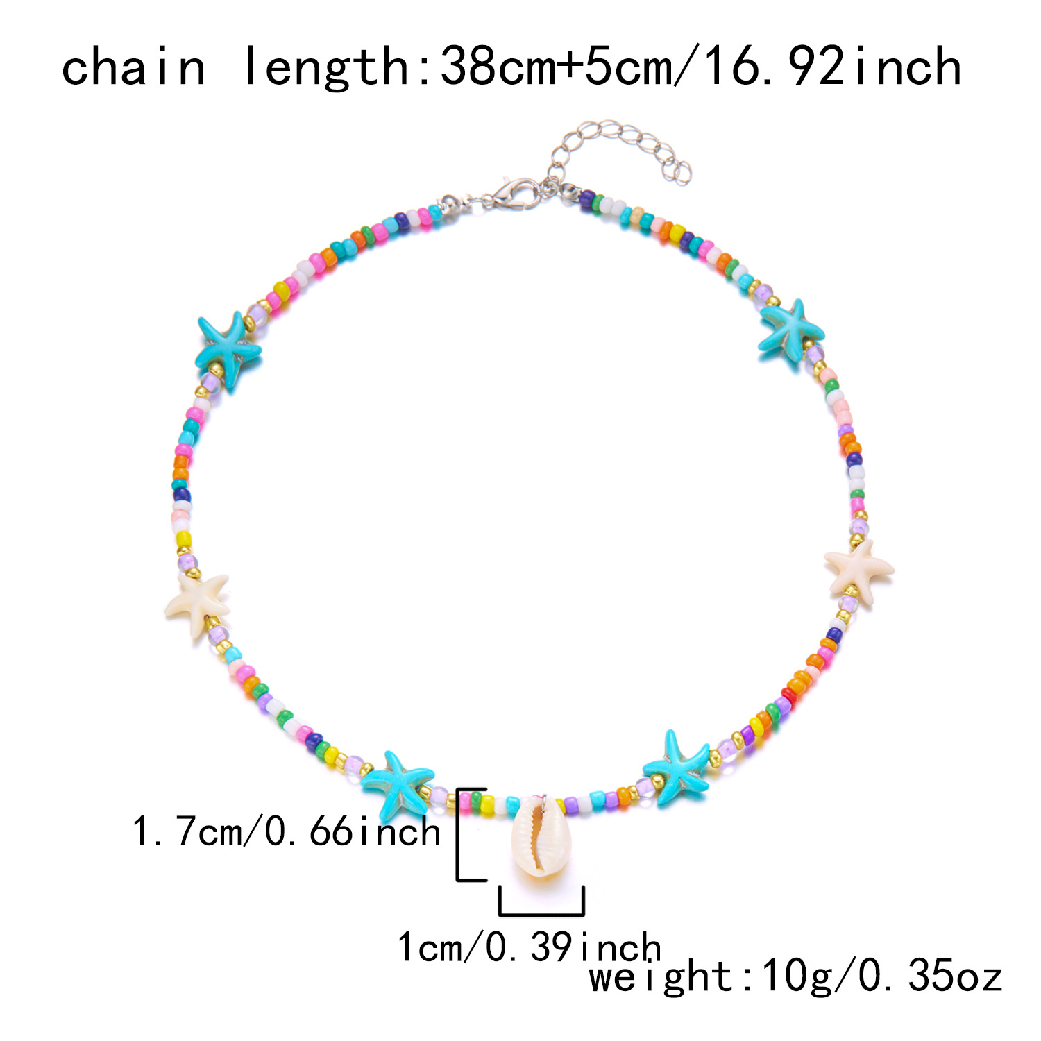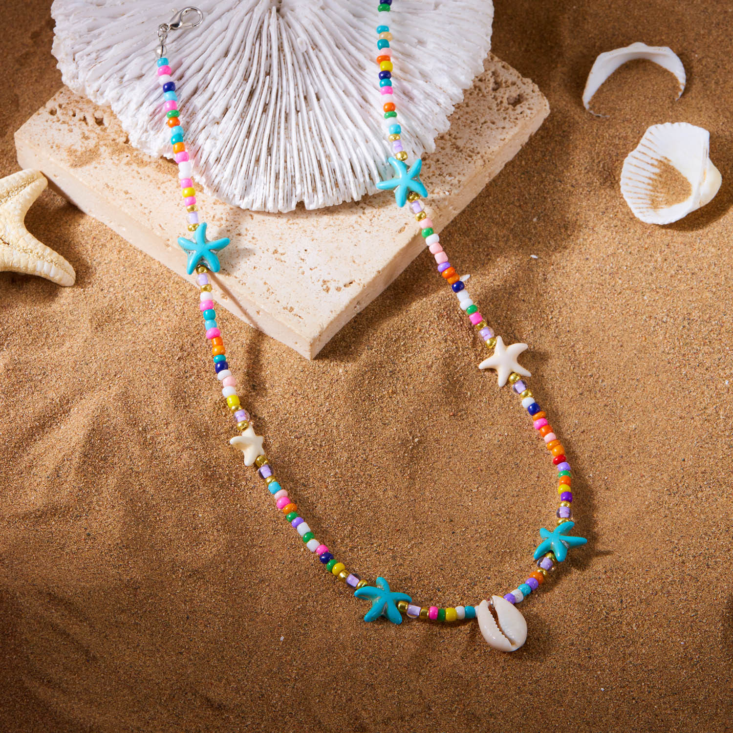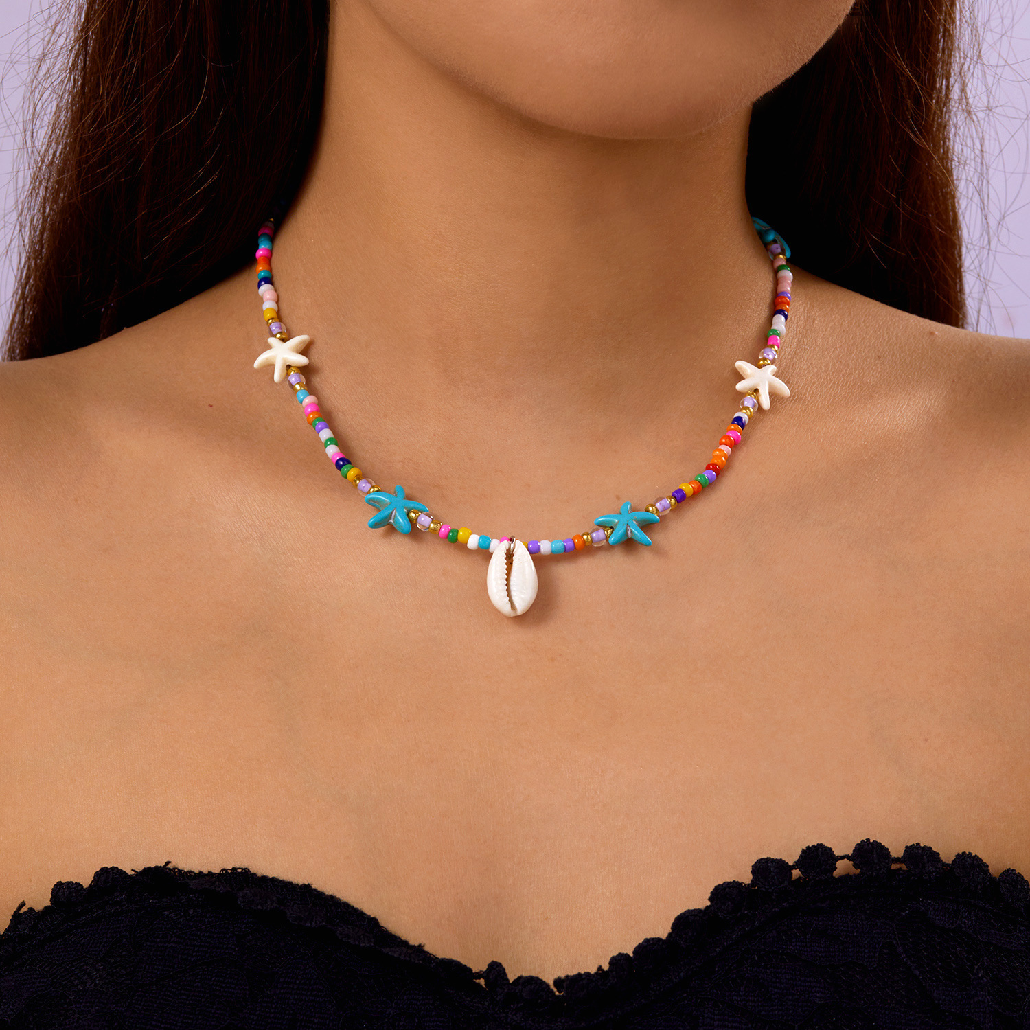 跨境新款时尚米珠项链波西米亚风夏季海星贝壳米珠颈链卡脖链批发