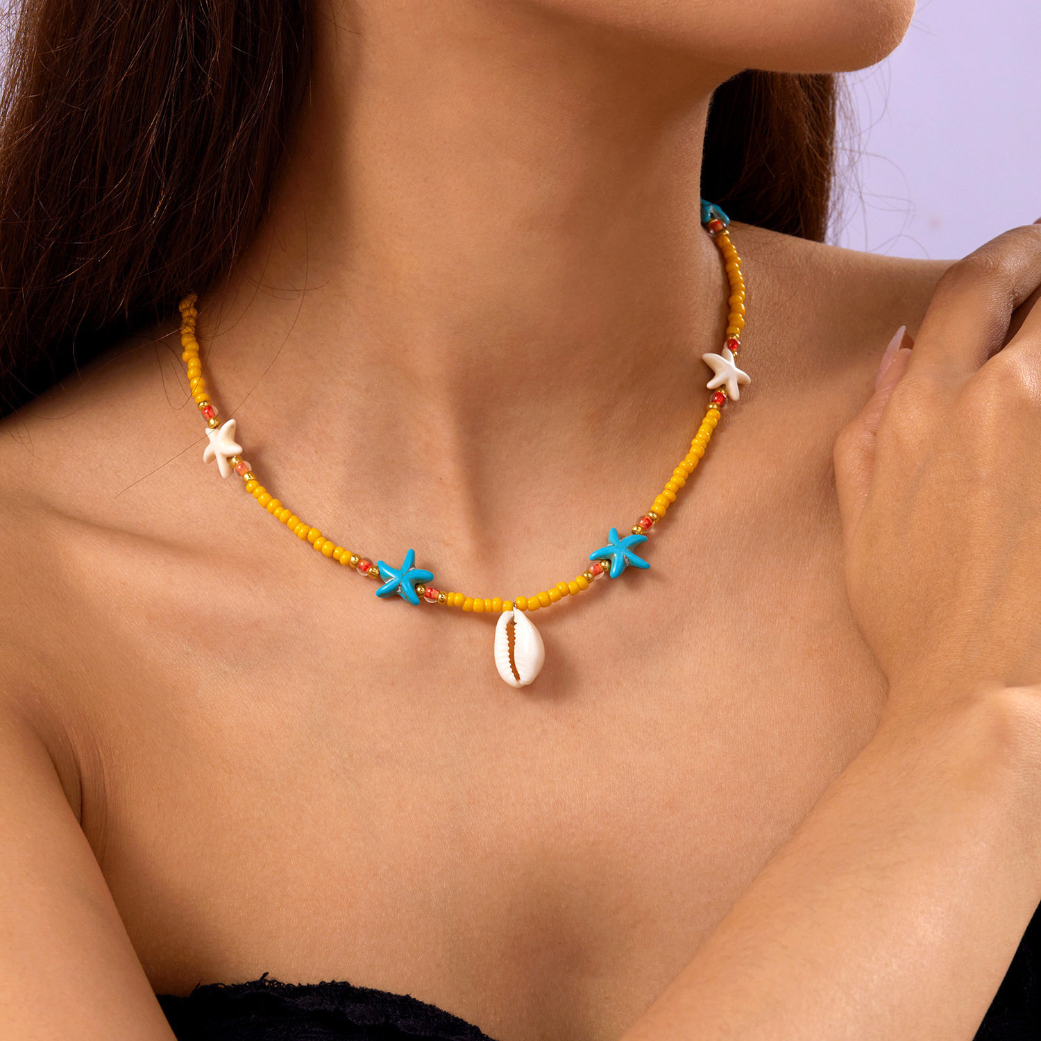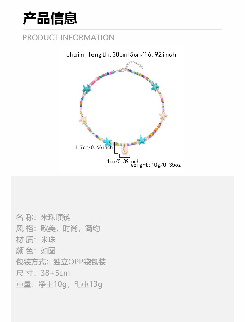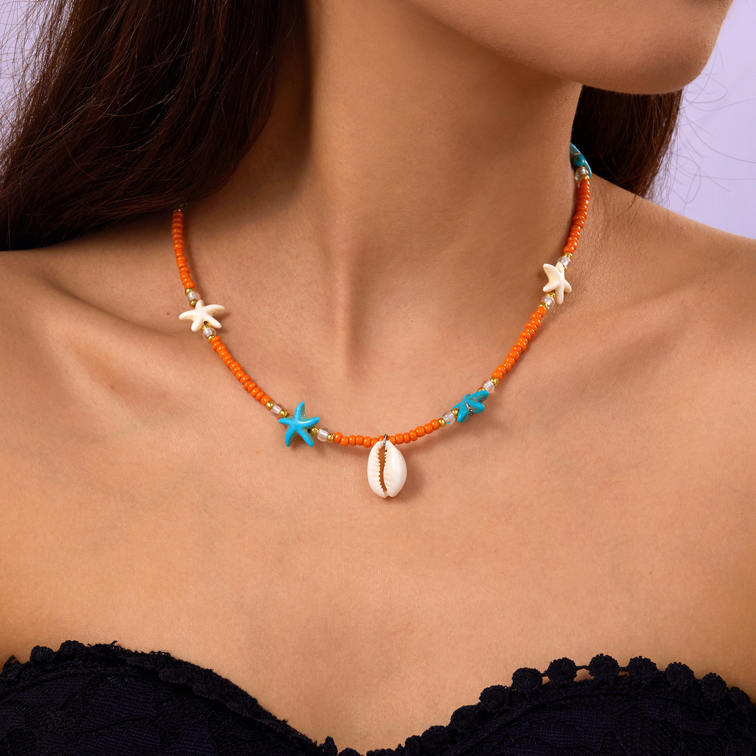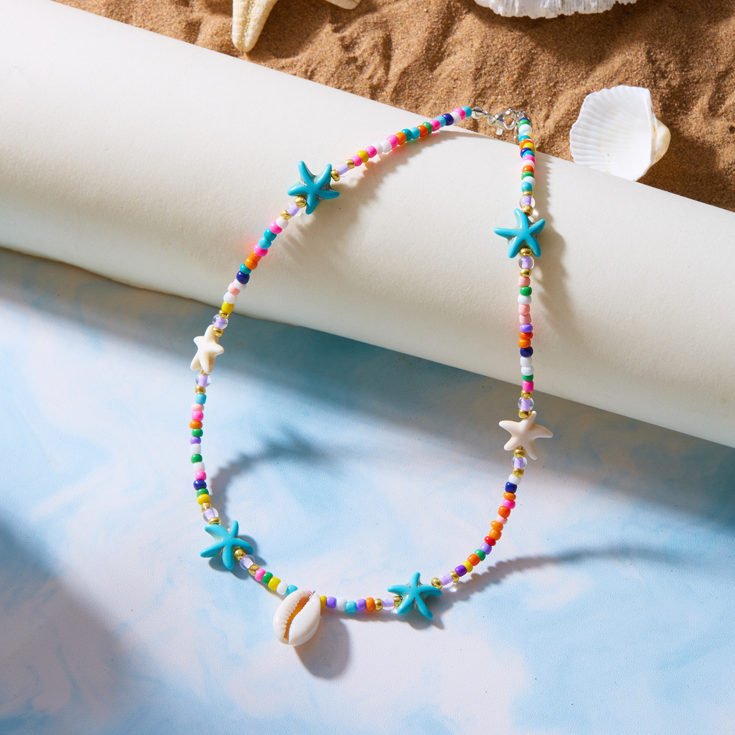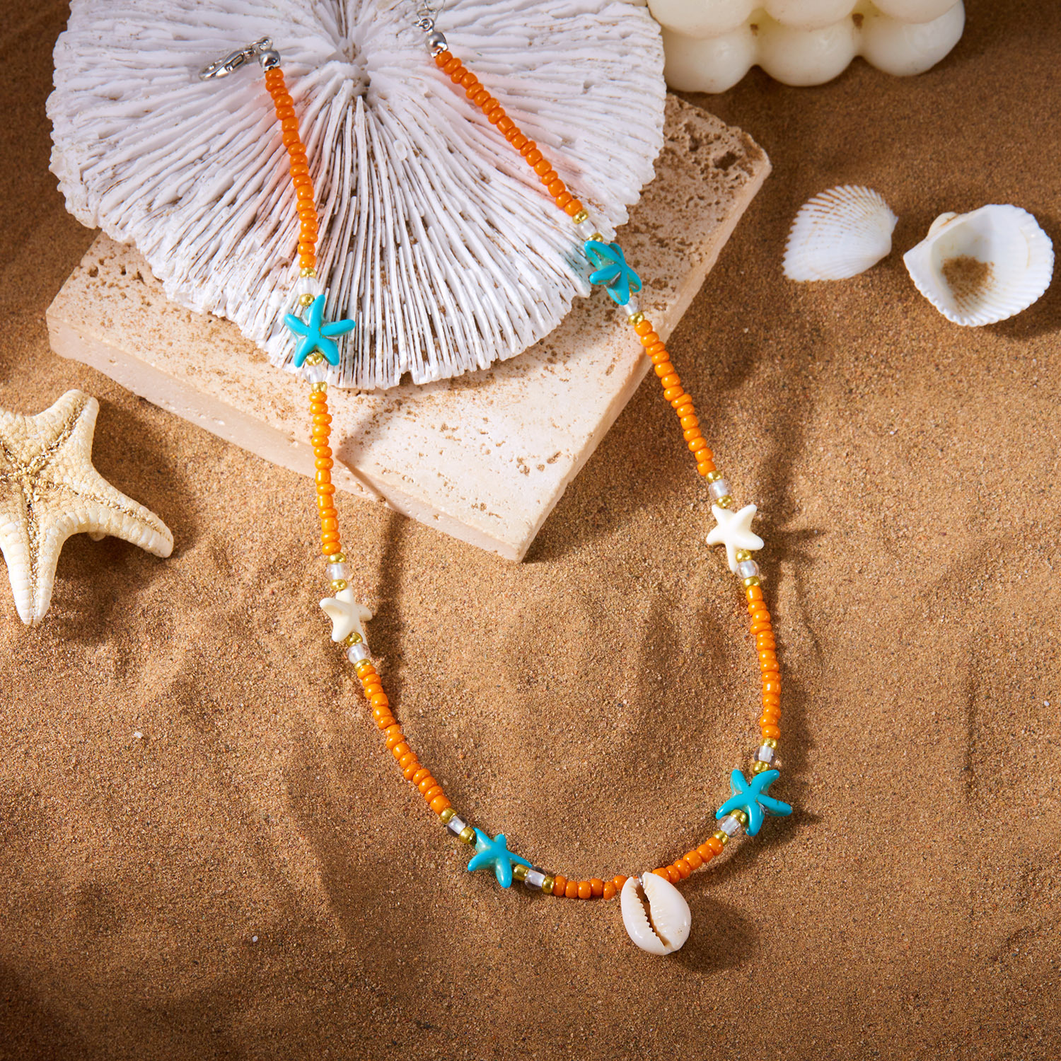 跨境新款时尚米珠项链波西米亚风夏季海星贝壳米珠颈链卡脖链批发