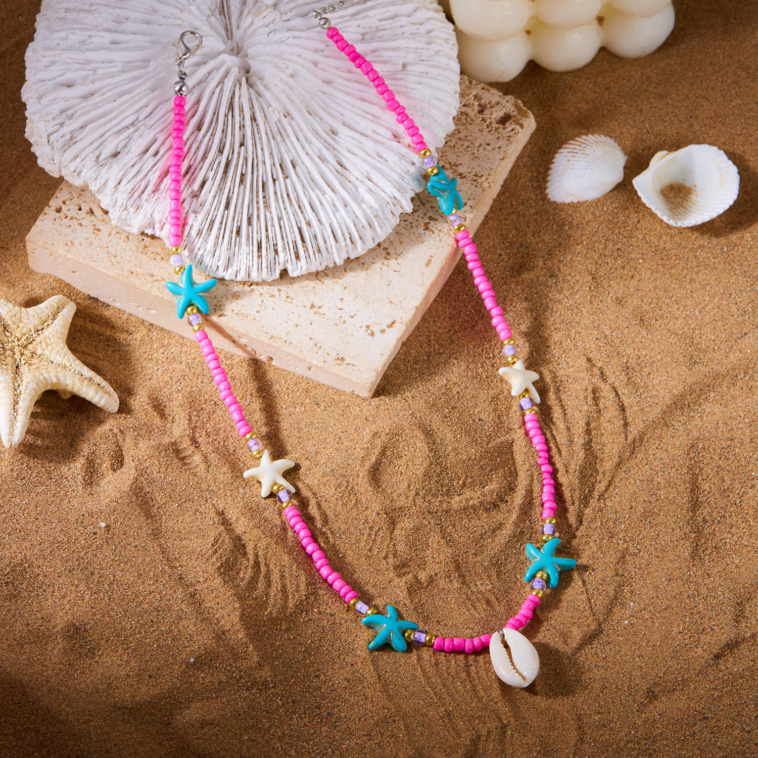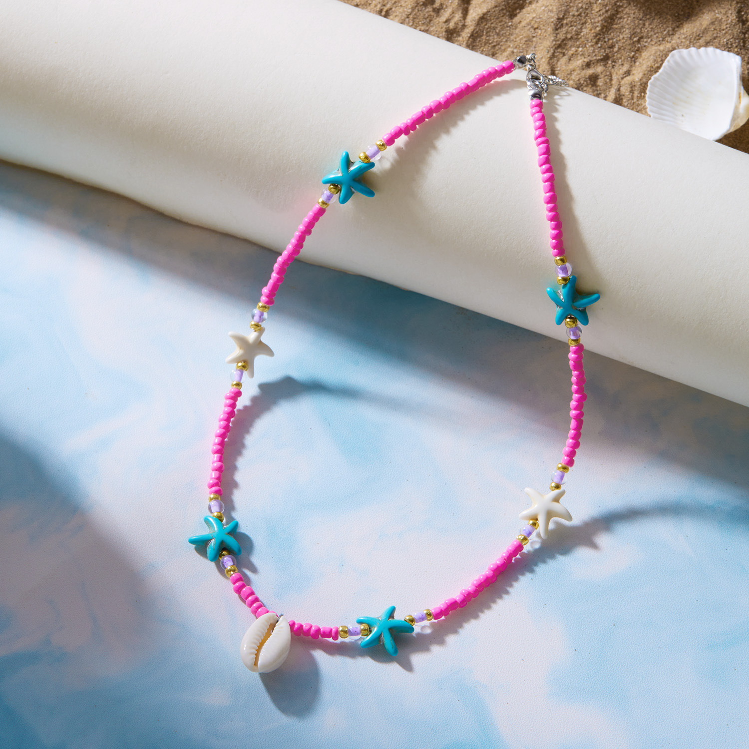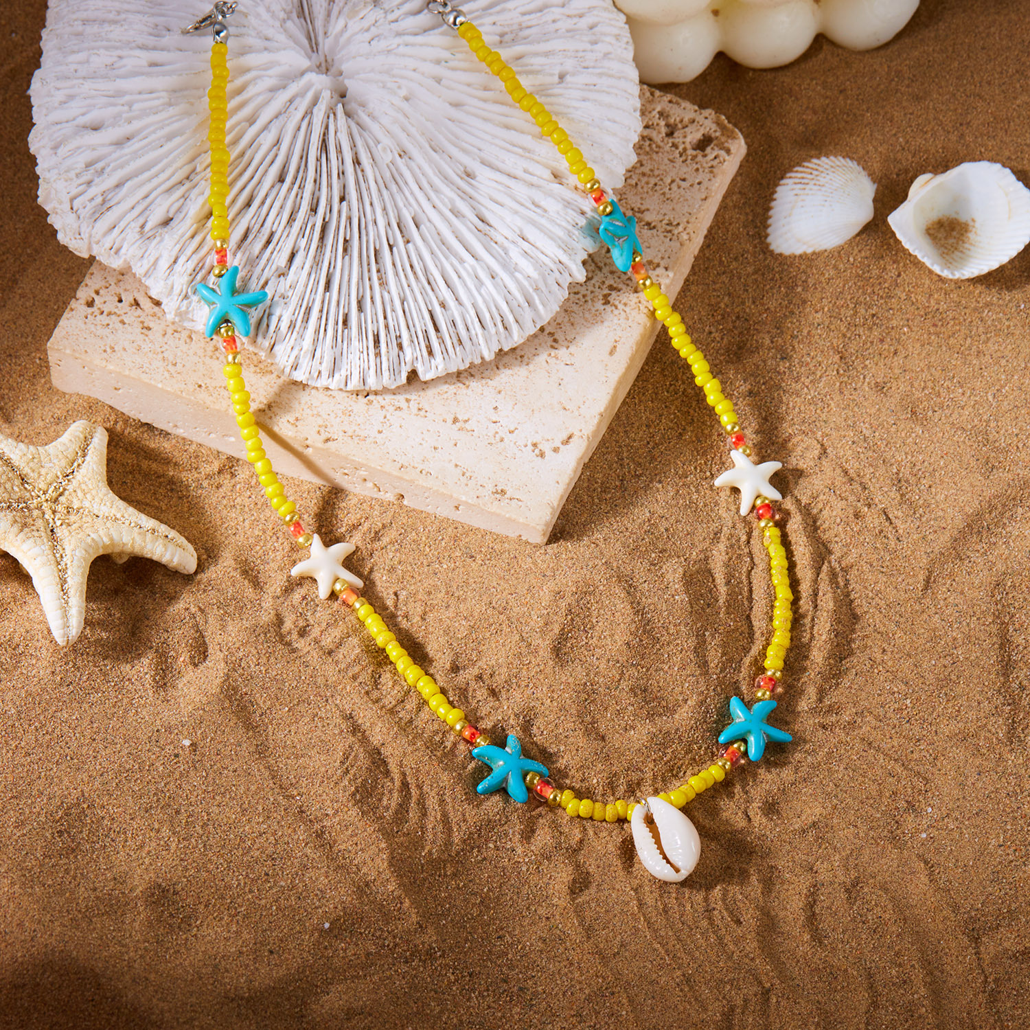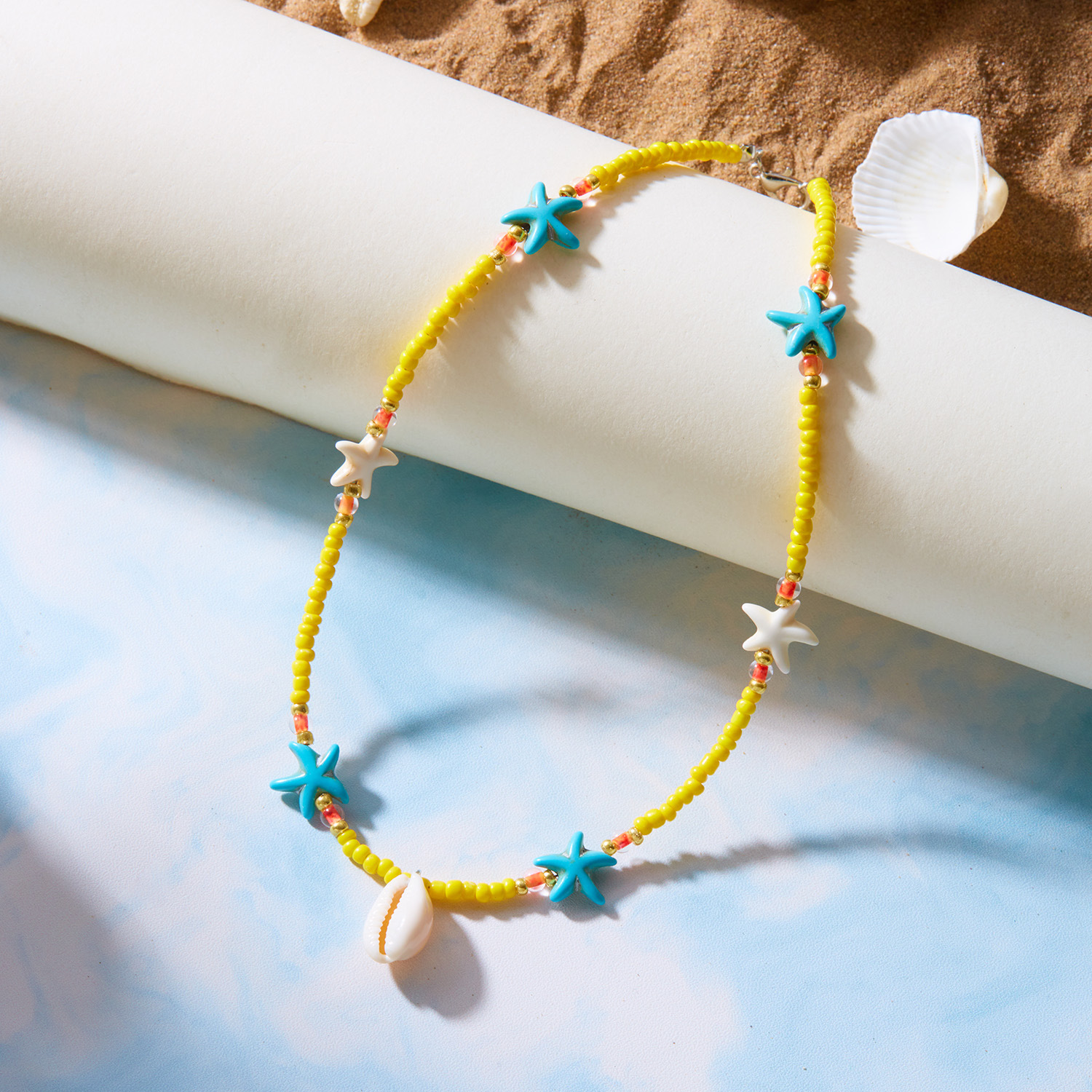 跨境新款时尚米珠项链波西米亚风夏季海星贝壳米珠颈链卡脖链批发
