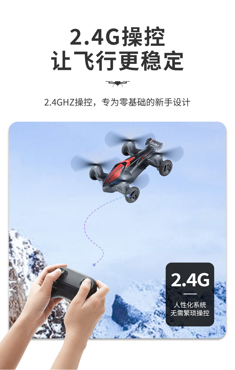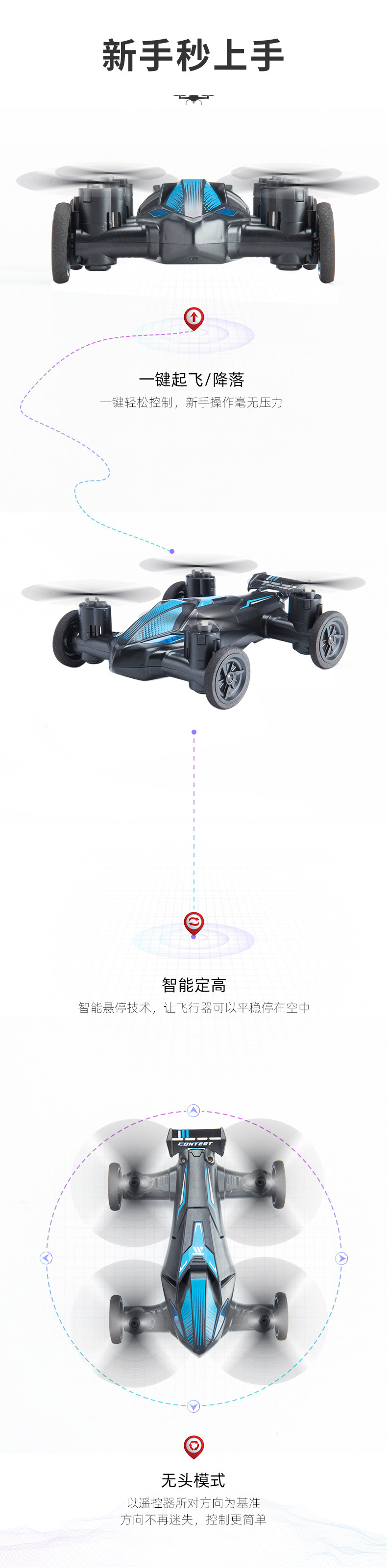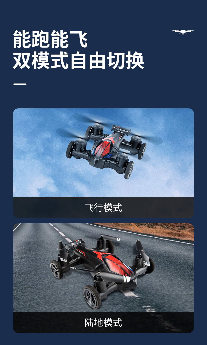 JJRC 迷你四轴陆空双模式飞行便携飞机花样翻滚灯光遥控玩具热款