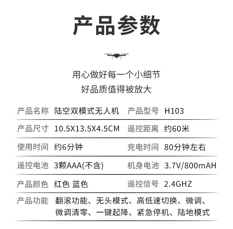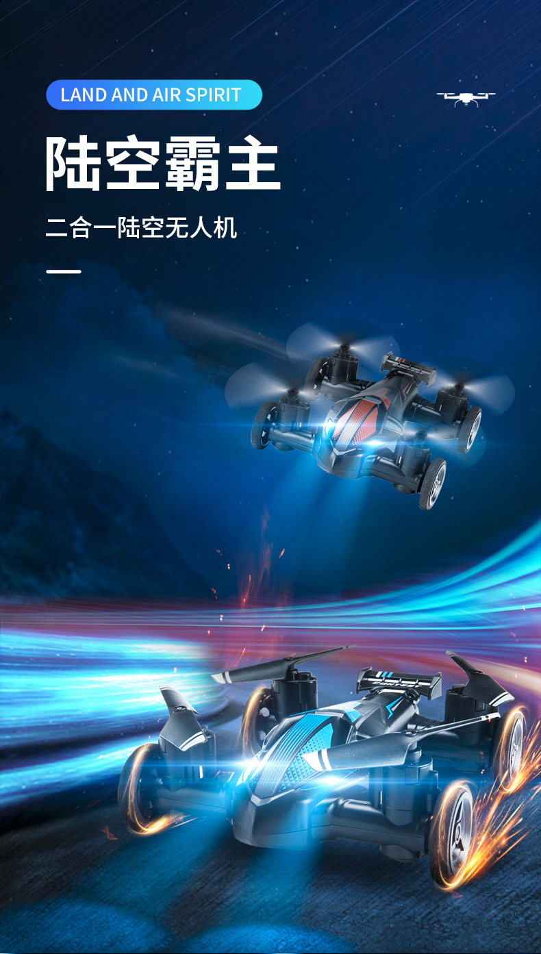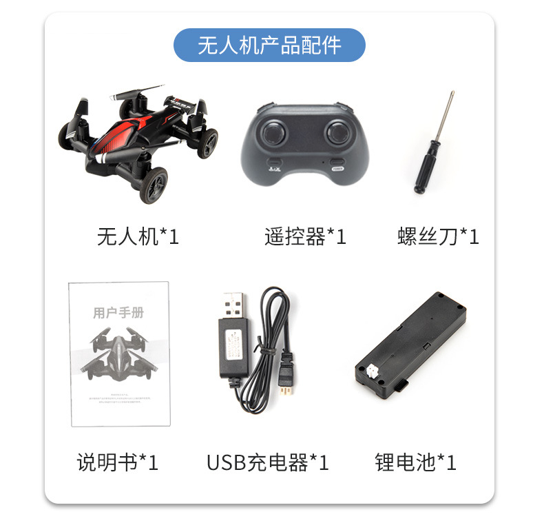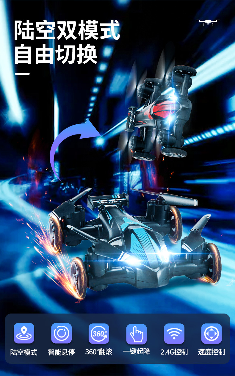JJRC 迷你四轴陆空双模式飞行便携飞机花样翻滚灯光遥控玩具热款