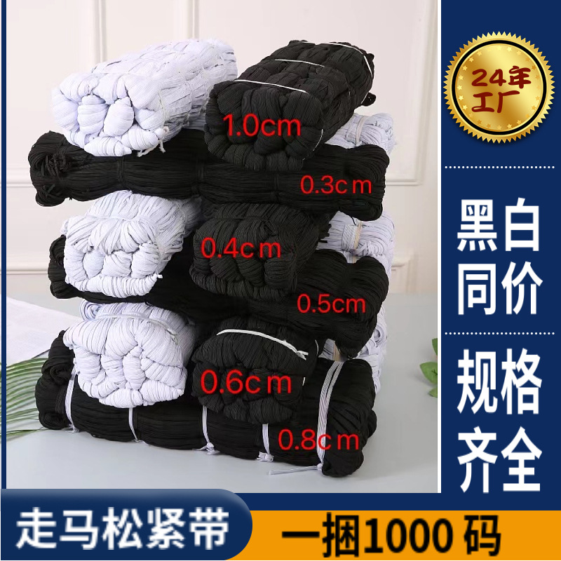 现货0.30.60.81.0黑色白色走马松紧带松紧绳橡筋松紧带辅料批发