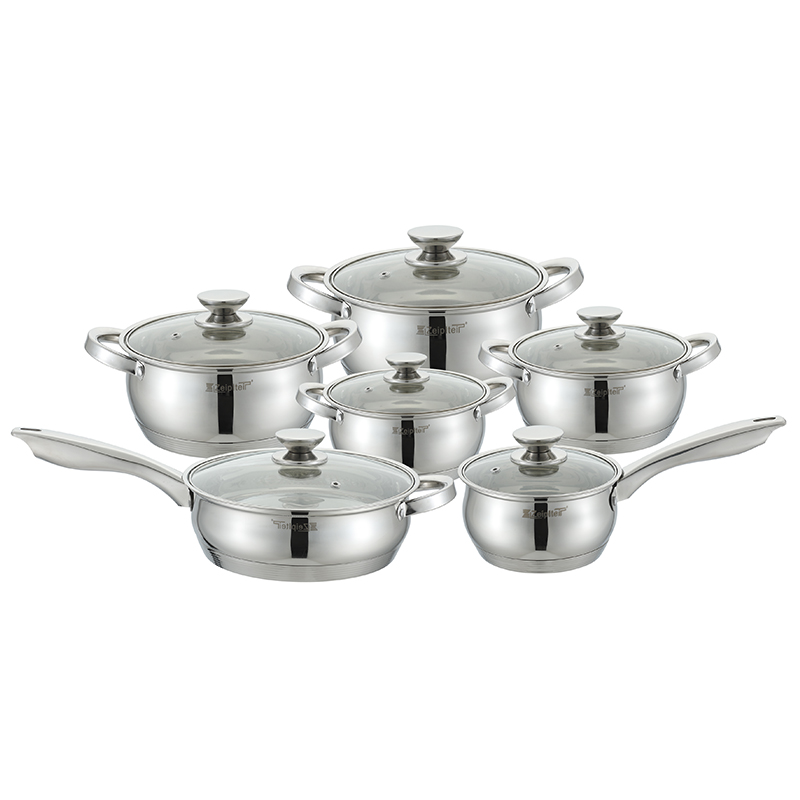 跨境不锈钢六件套锅加厚复底套装锅不粘煎锅奶锅汤锅组合套装