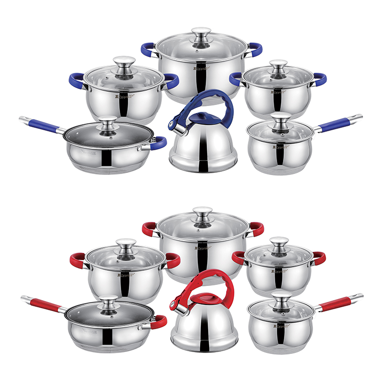 外贸出口六件套不锈钢炊具套装加厚复地水壶汤锅煎锅套装跨境批发