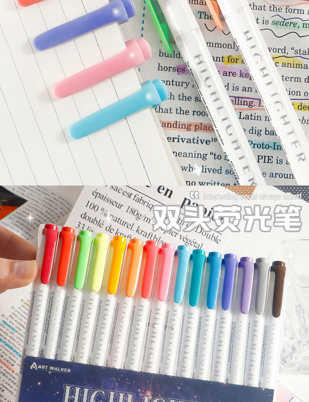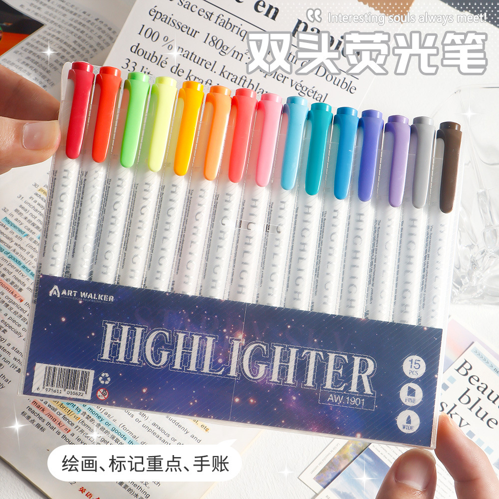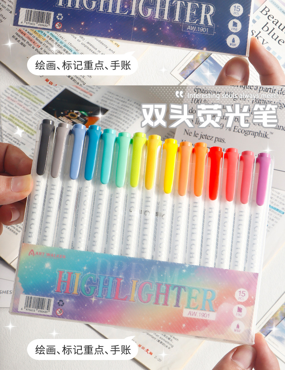 双头荧光笔15色高颜值学生记号笔手账笔文具笔套装不透墨绘画笔