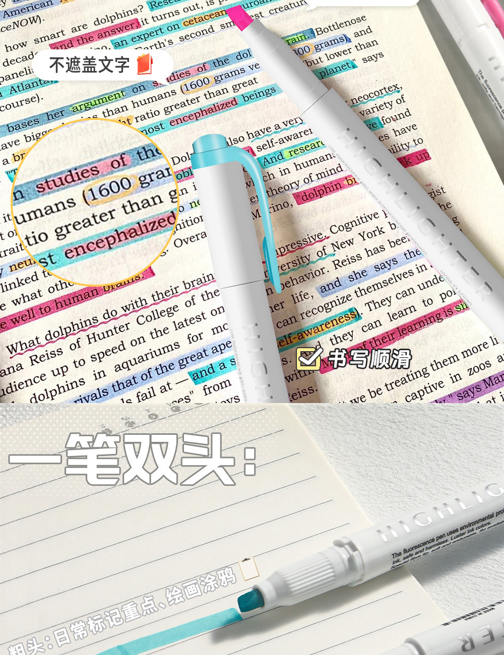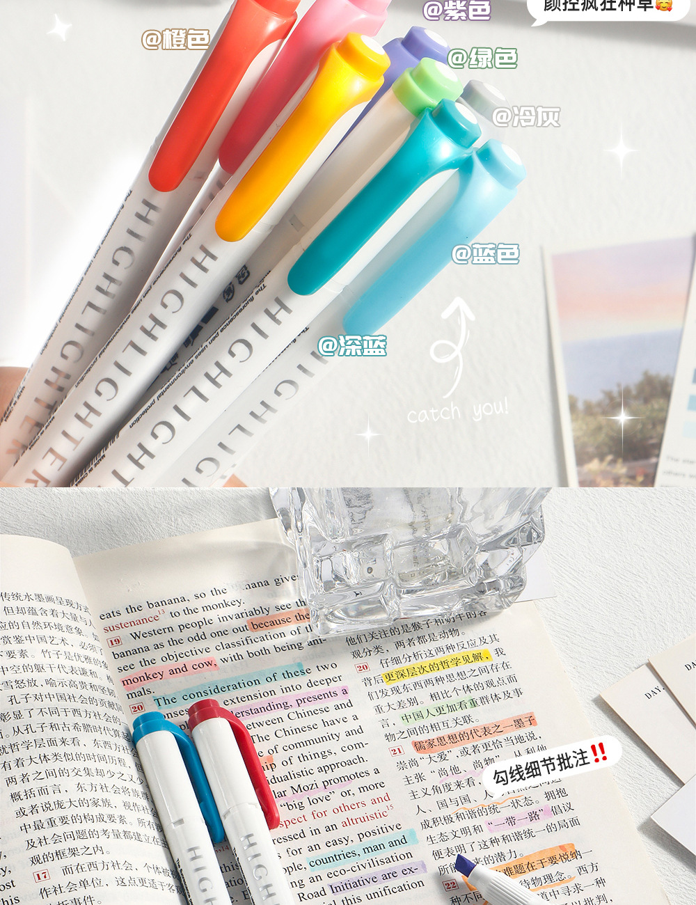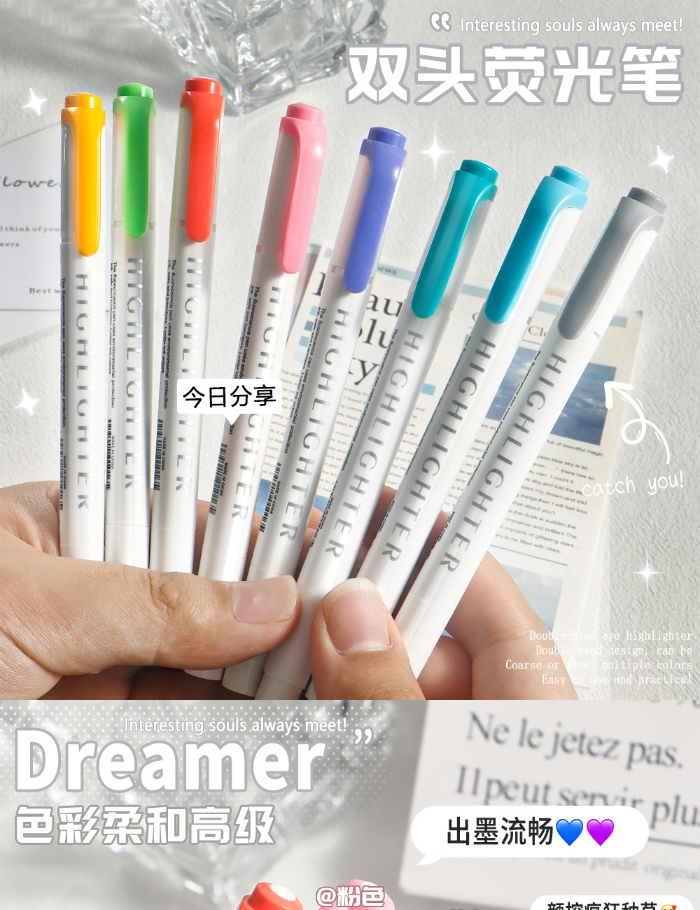 双头荧光笔15色高颜值学生记号笔手账笔文具笔套装不透墨绘画笔