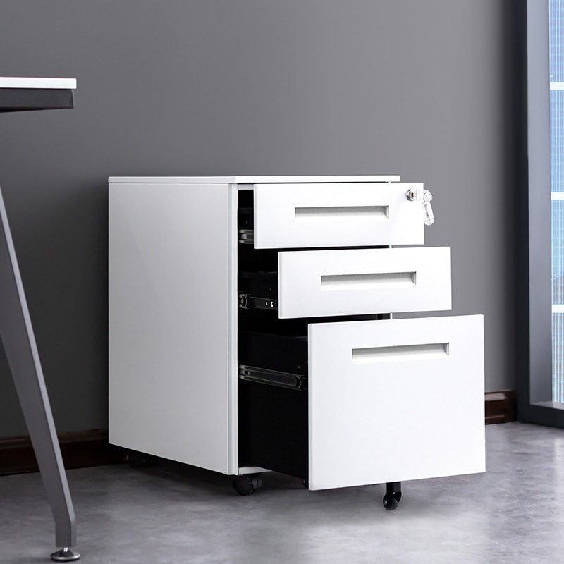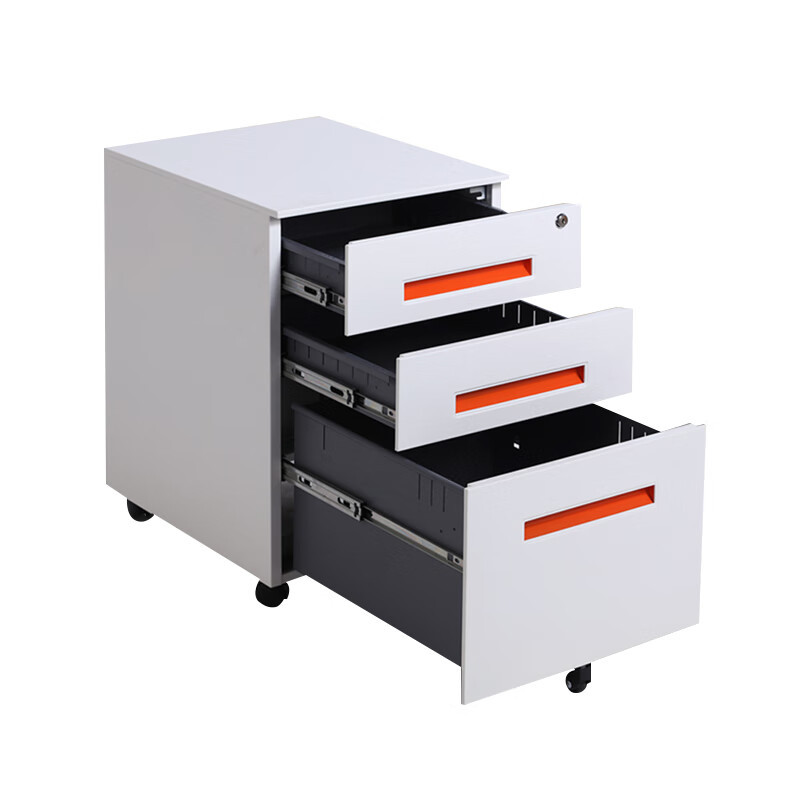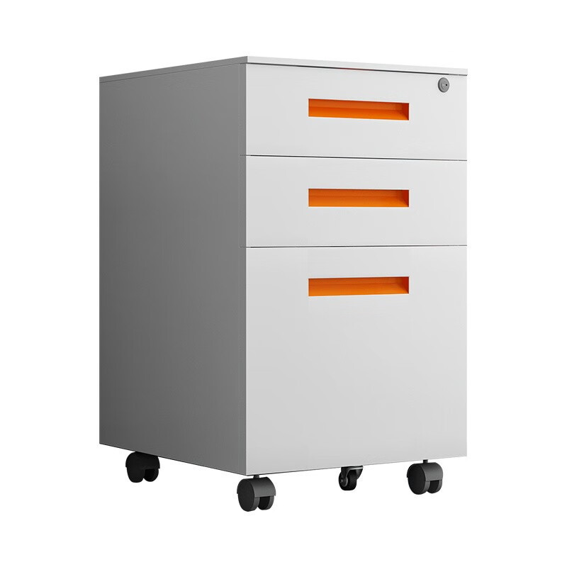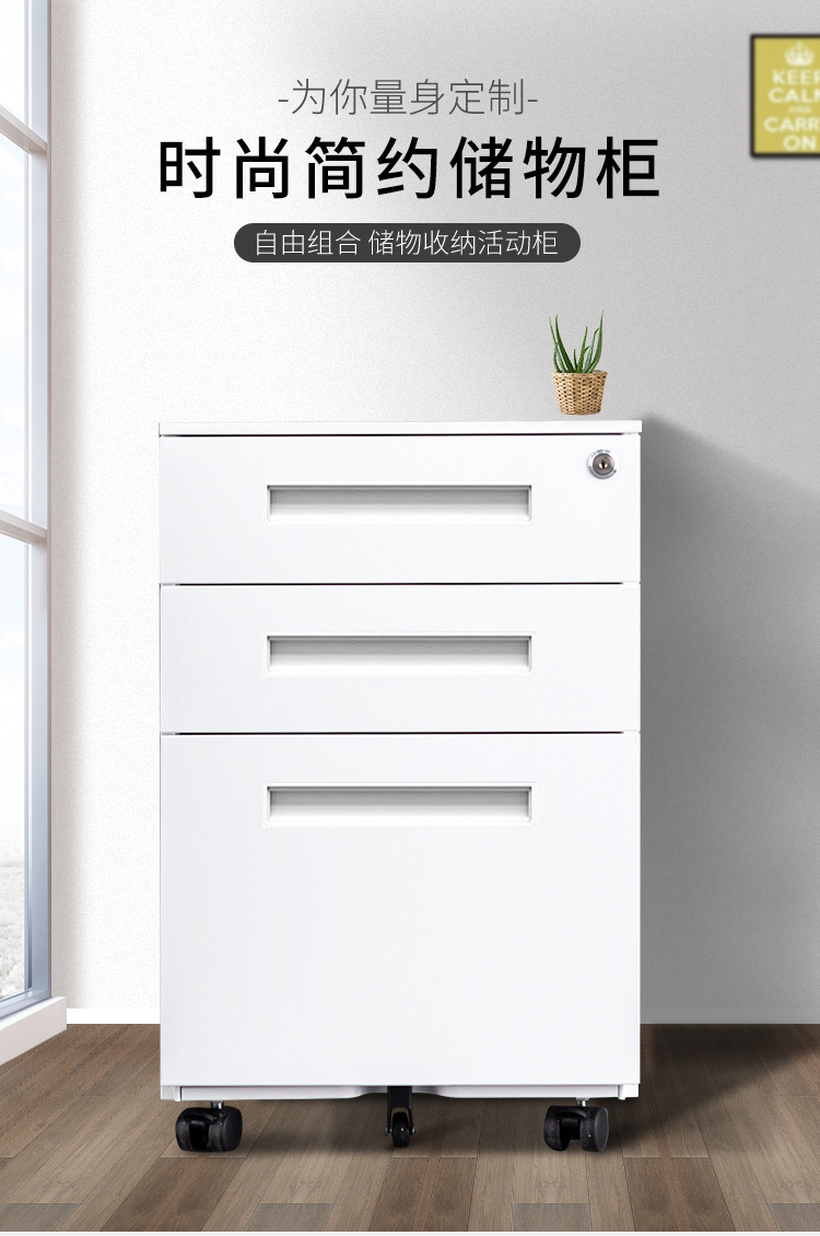 钢制三抽收纳柜文件柜带锁防盗资料柜办公桌下可移动抽屉铁皮柜