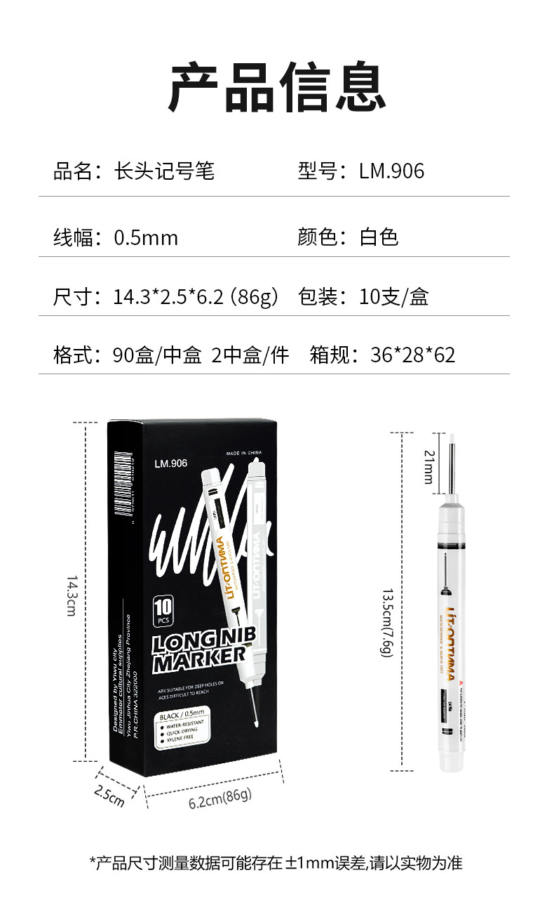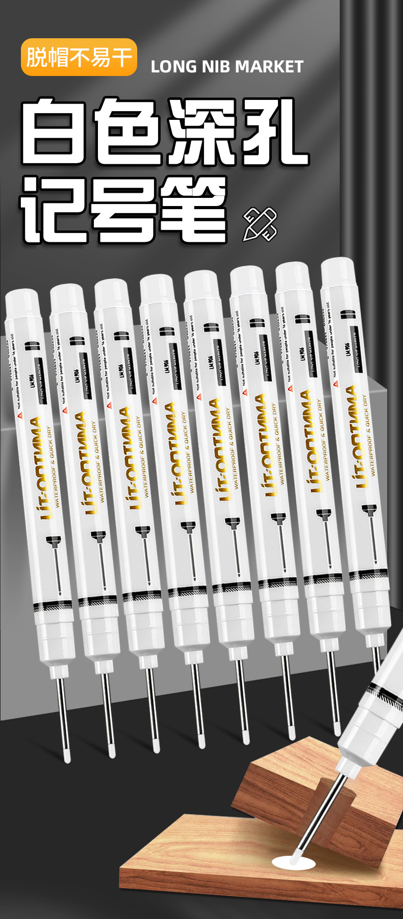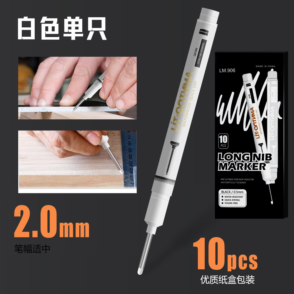 深孔长头记号笔白色木工专用标记笔防水油性笔深口五金配件标记笔