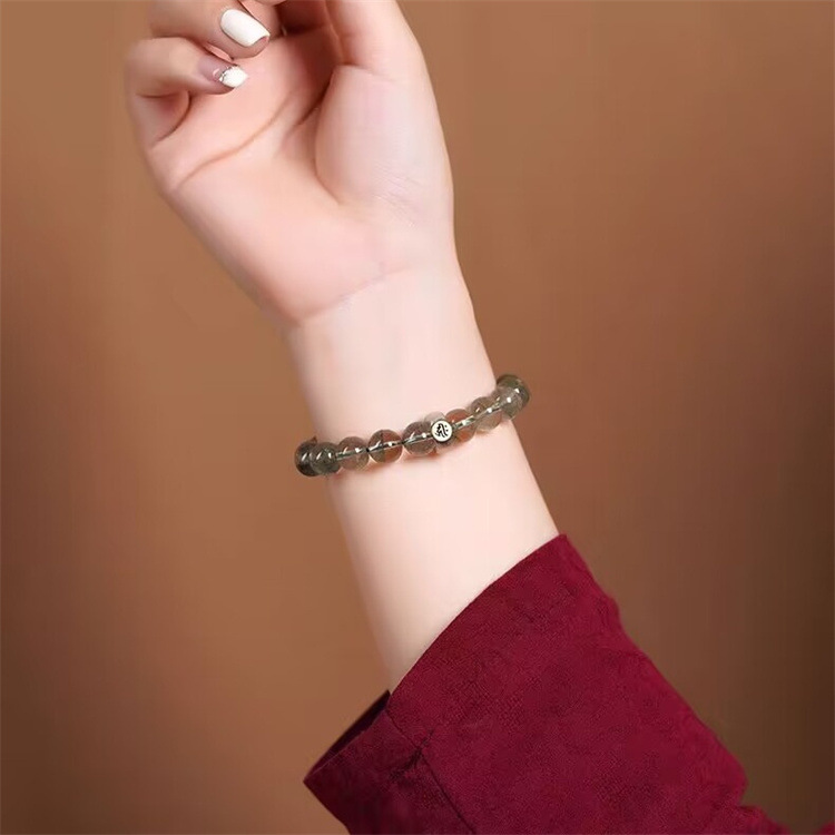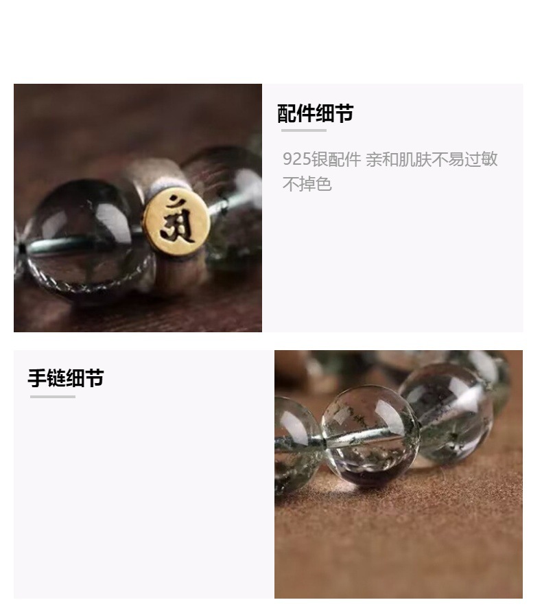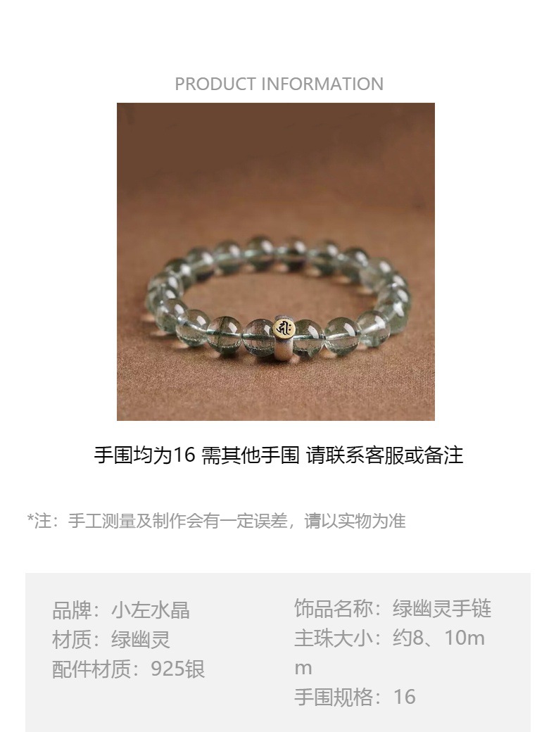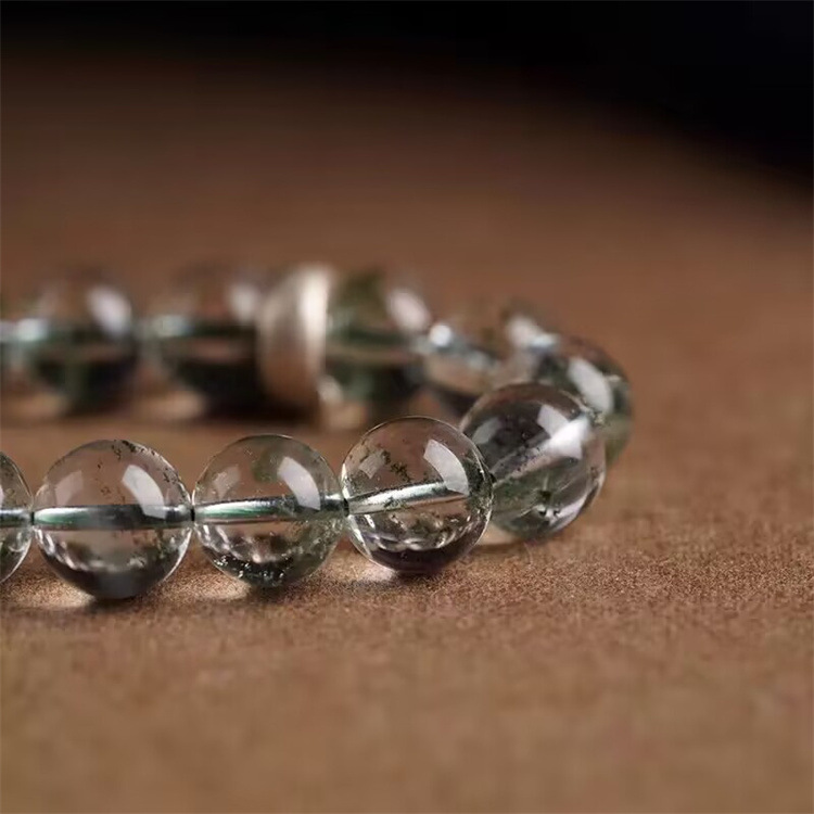 天然绿幽灵手串925银隔珠水晶手链男女款节日生日礼物