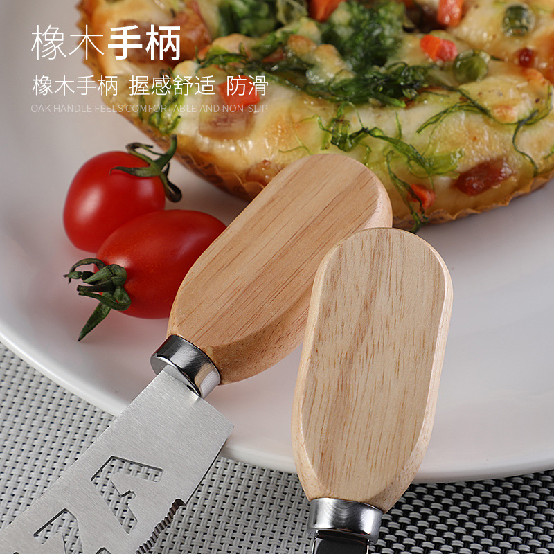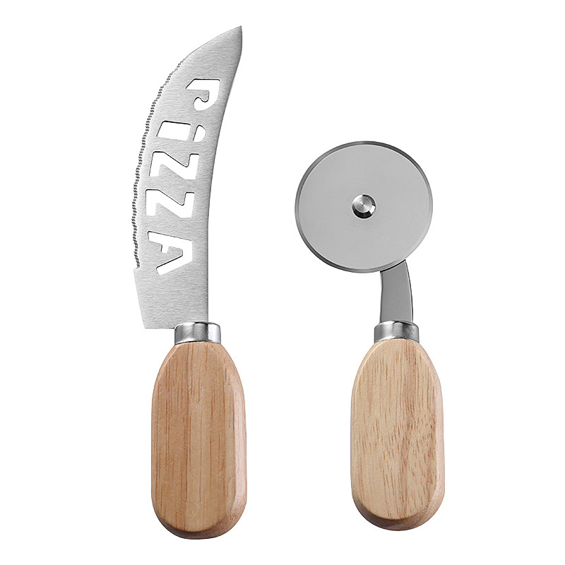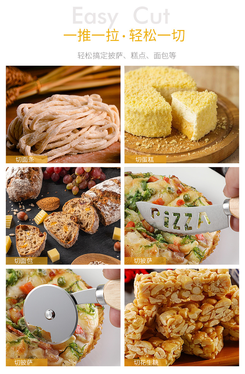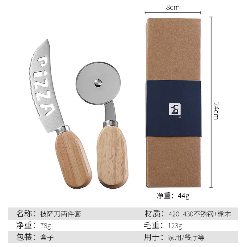 不锈钢披萨刀介饼刀橡木柄PIZZA滚轮刀比萨切刀烘焙工具切饼牙刀