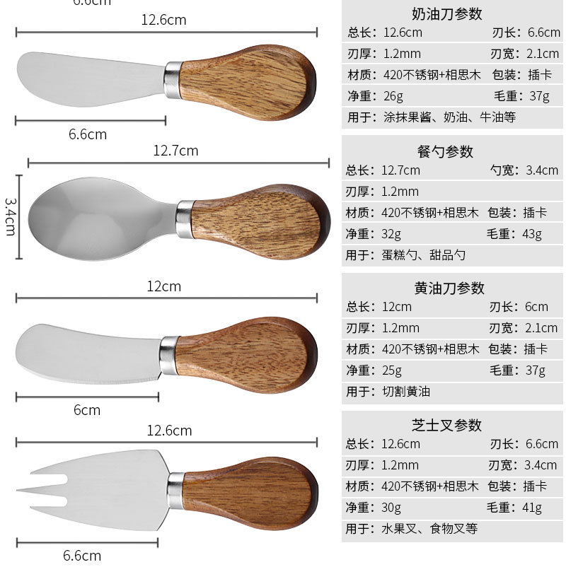 跨境现货相思木奶酪刀西式芝士工具刀叉黄油刀奶油刀不锈钢芝士刀