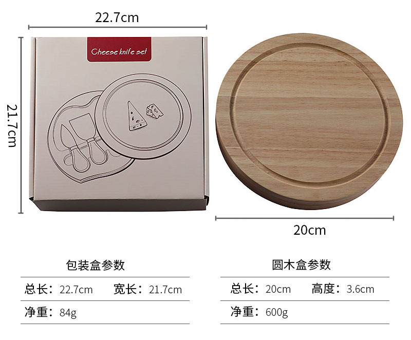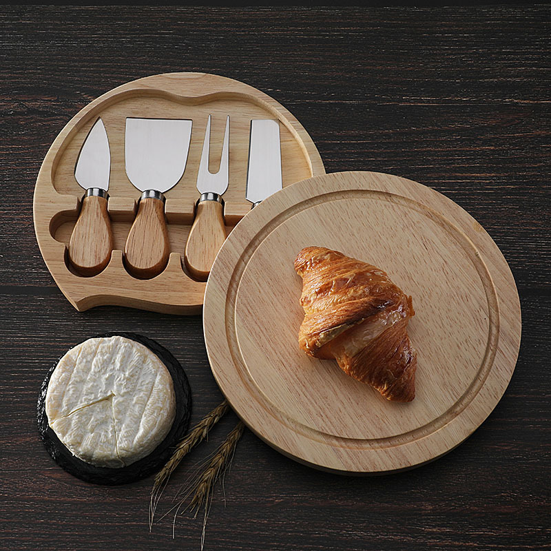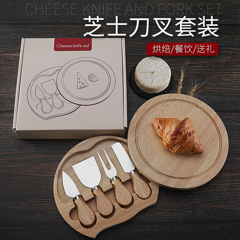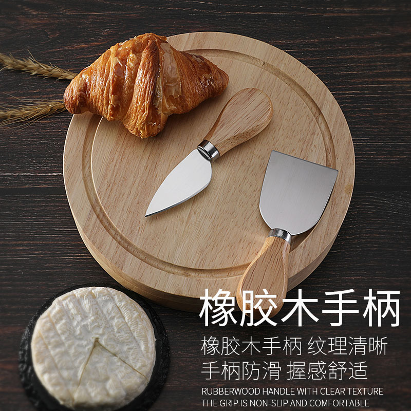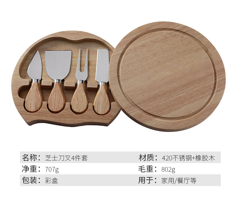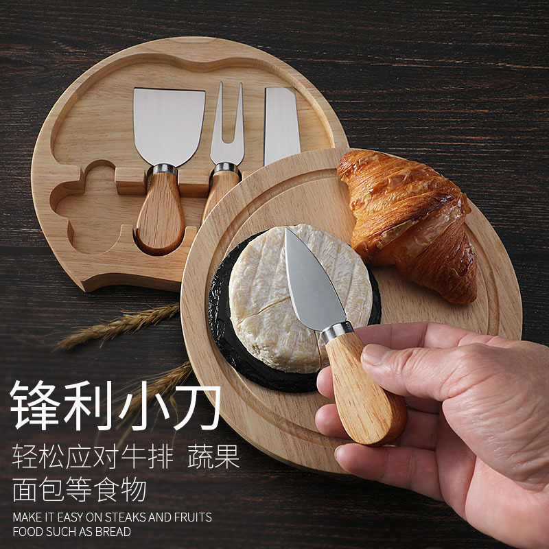 跨境圆橡胶木盒4件套奶酪刀铲不锈钢芝士工具餐具芝士刀套装礼盒