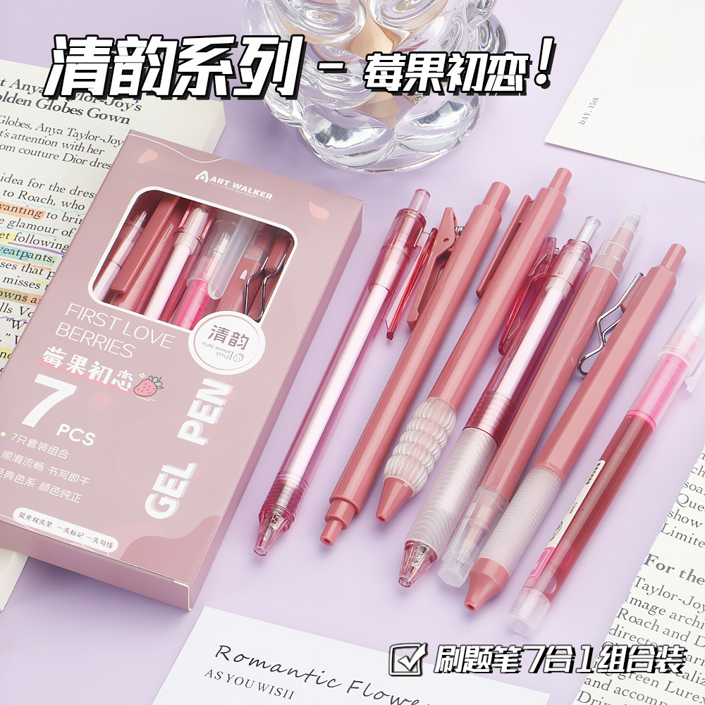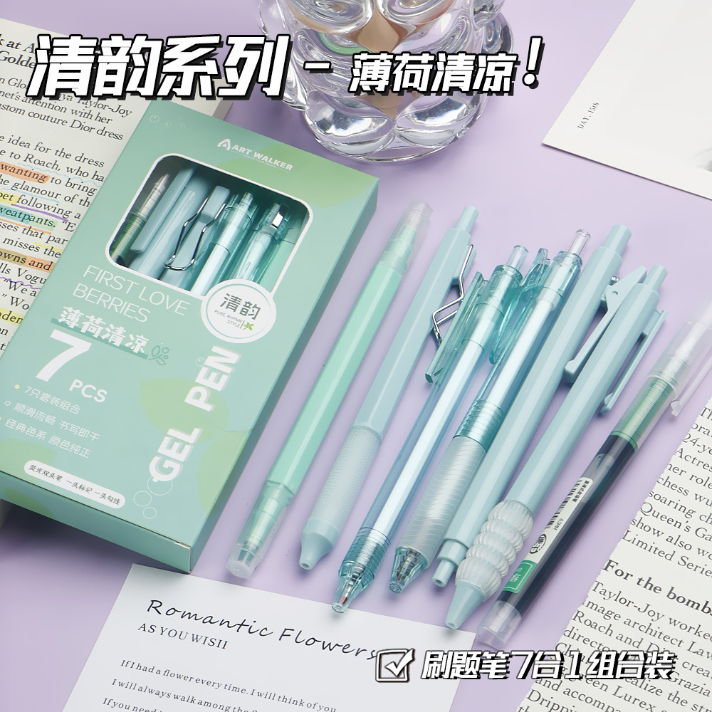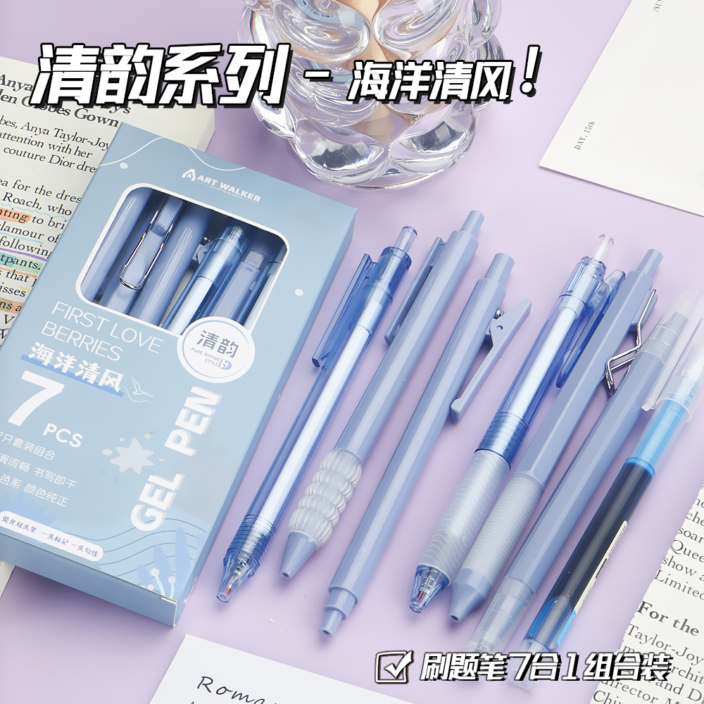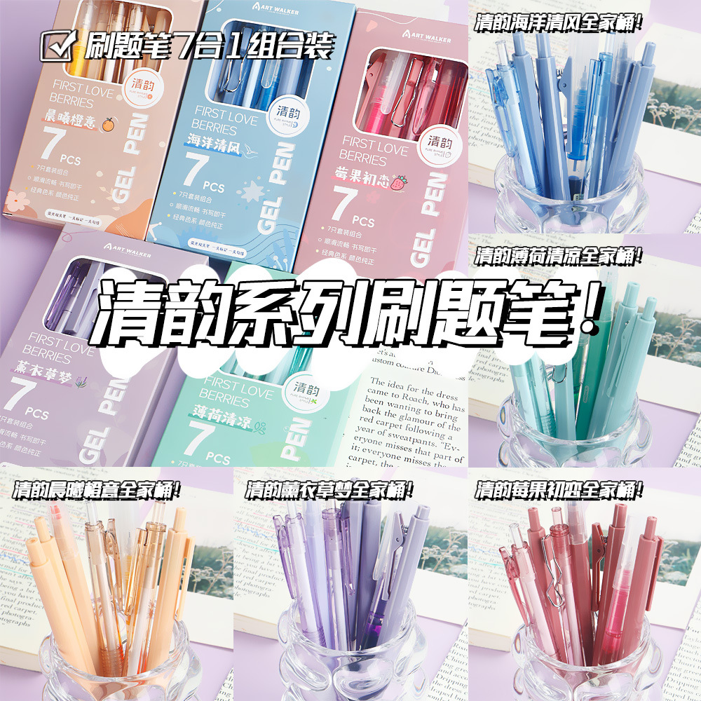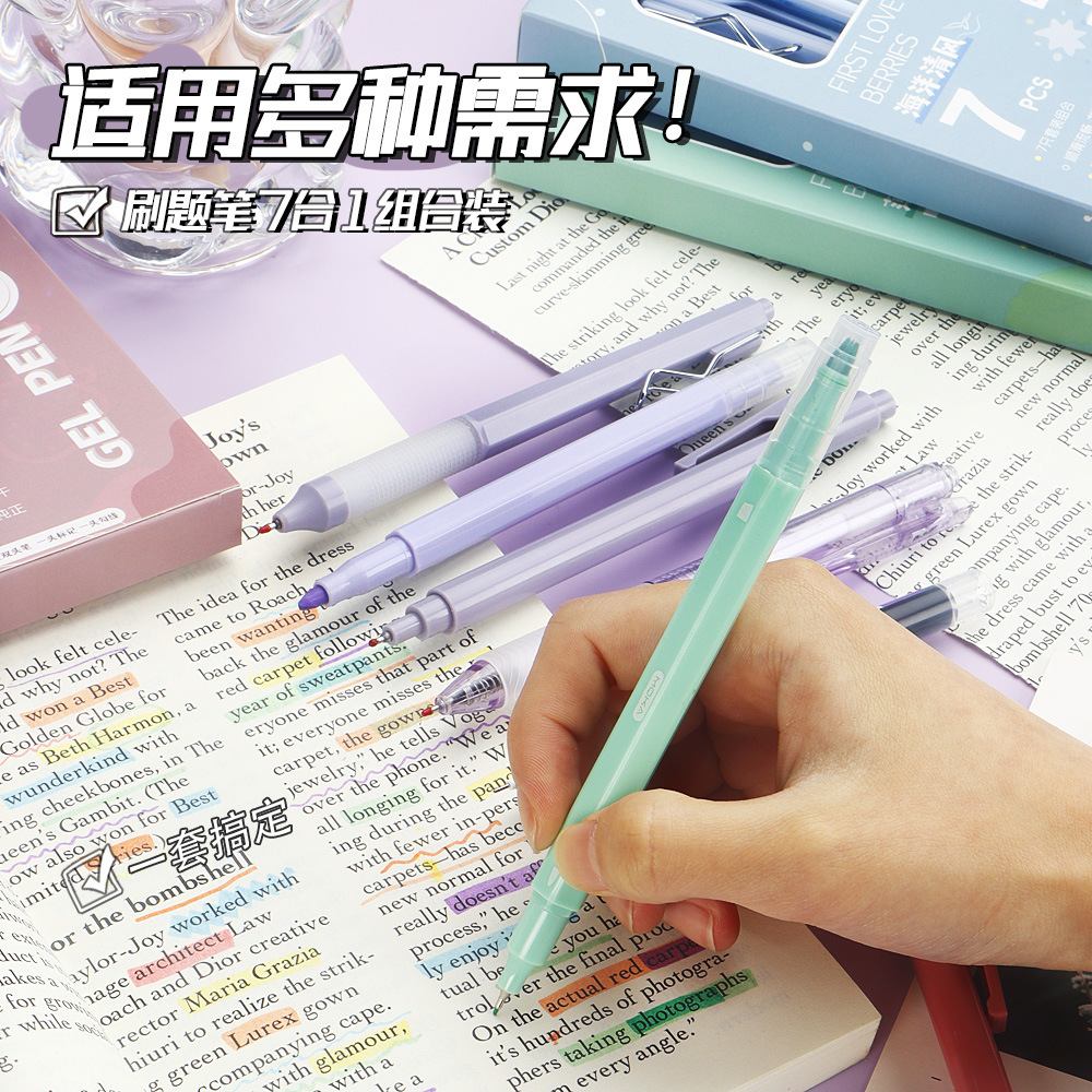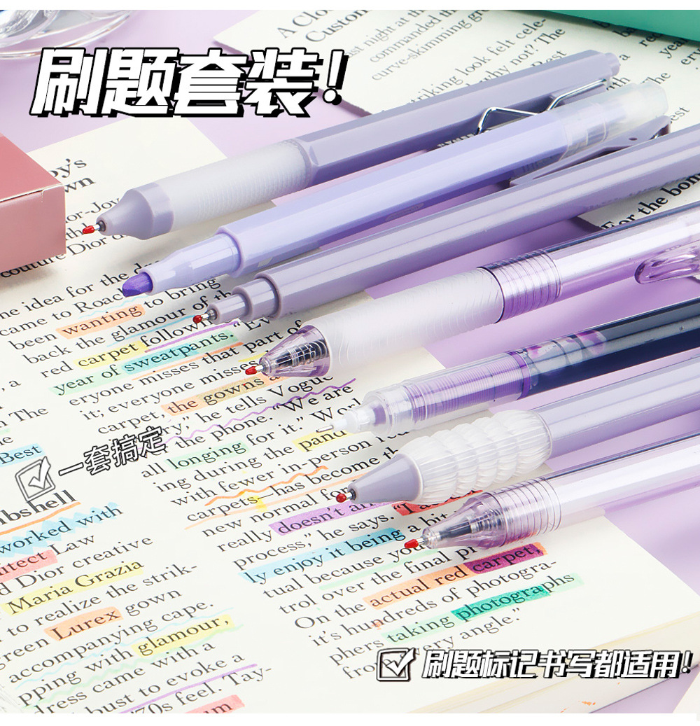 高颜值按动中性笔套装学生专用刷题笔速干油墨组合笔套装签字笔