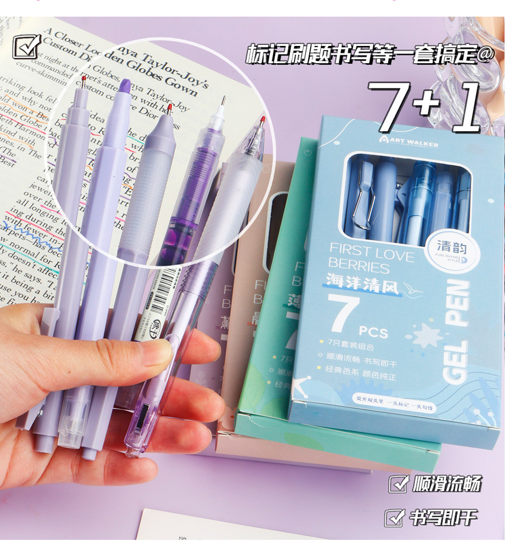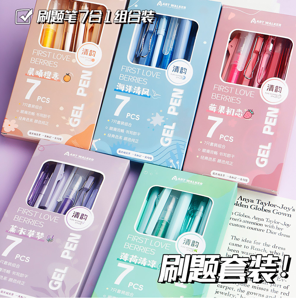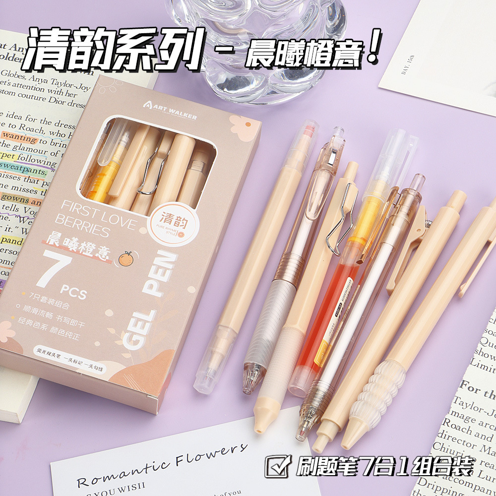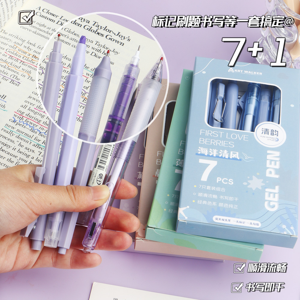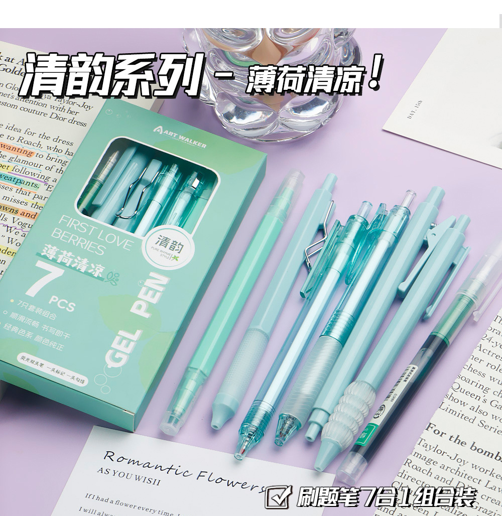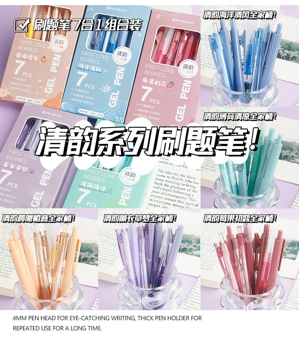 高颜值按动中性笔套装学生专用刷题笔速干油墨组合笔套装签字笔