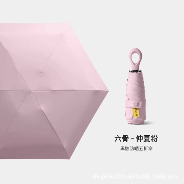 伞具迷你环扣手柄五折伞超轻防晒遮阳伞小巧便携太阳伞可定制LOGO