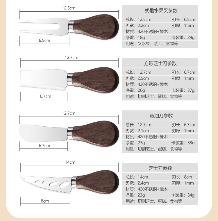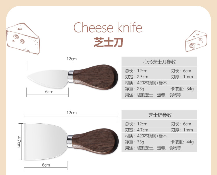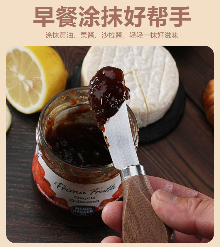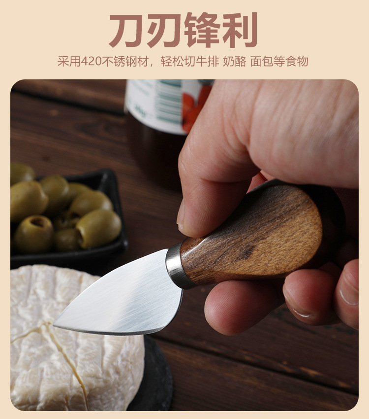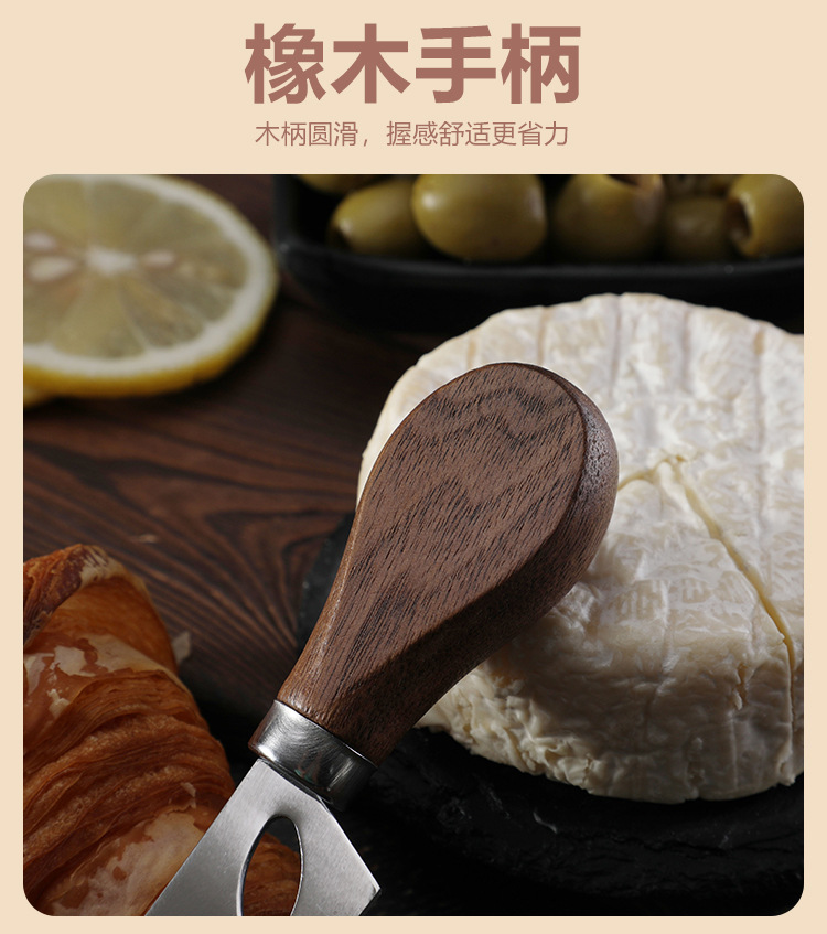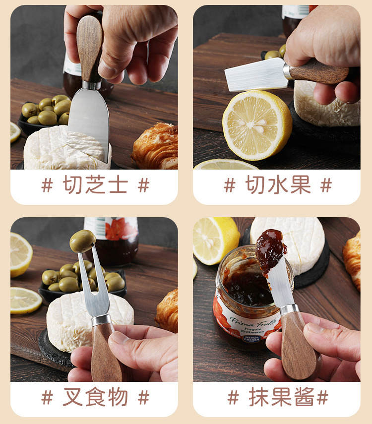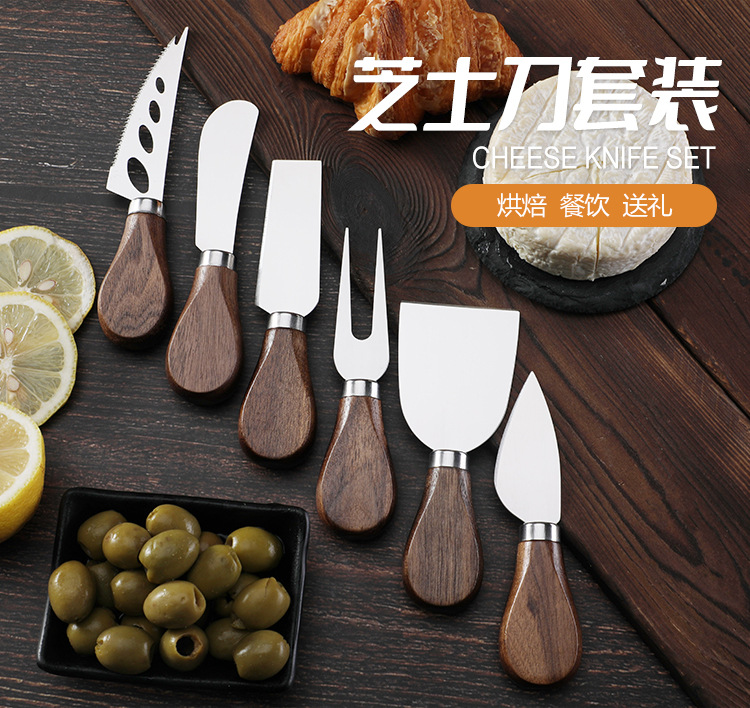现货黑披萨刀胡桃木柄芝士刀不锈钢奶酪工具奶油抹刀叉厨房餐具