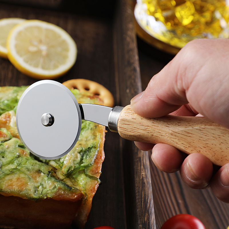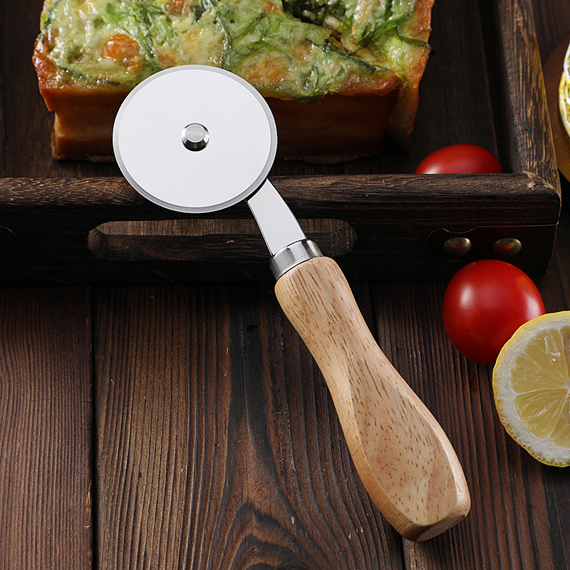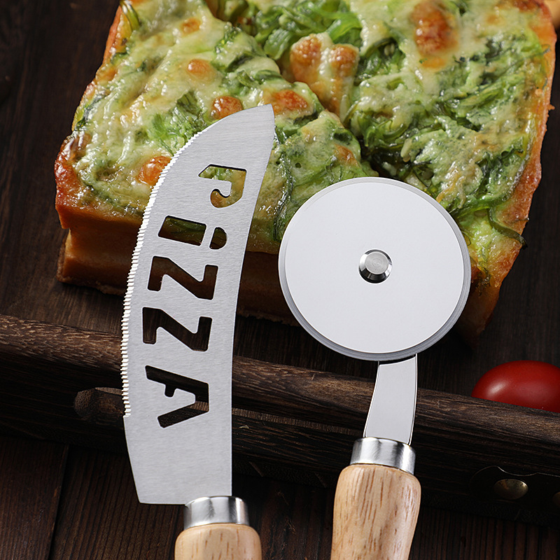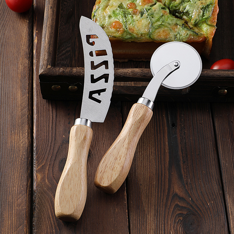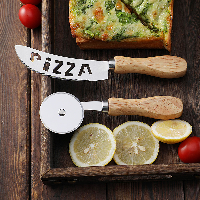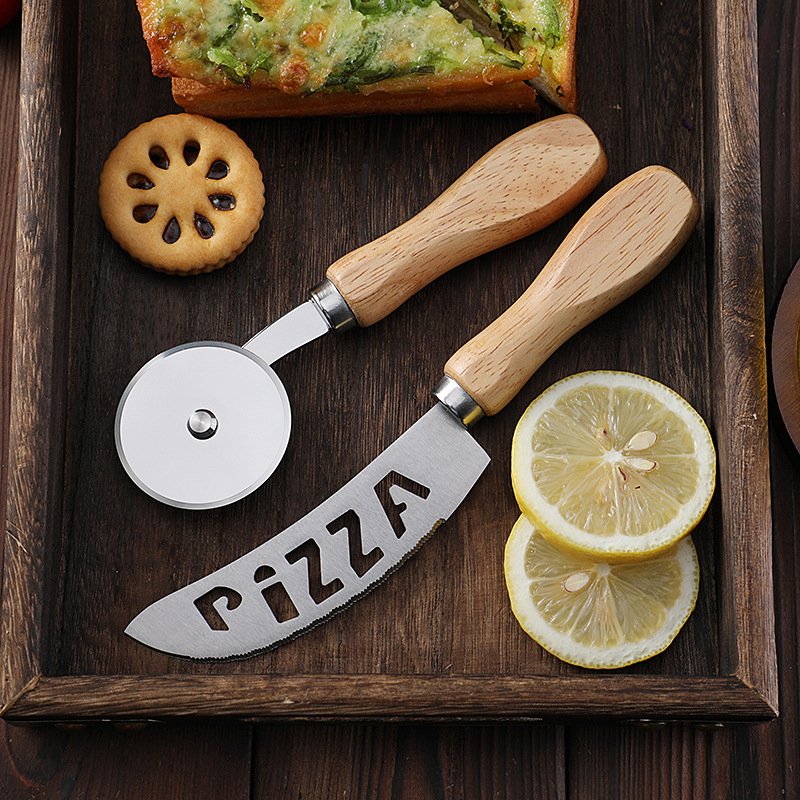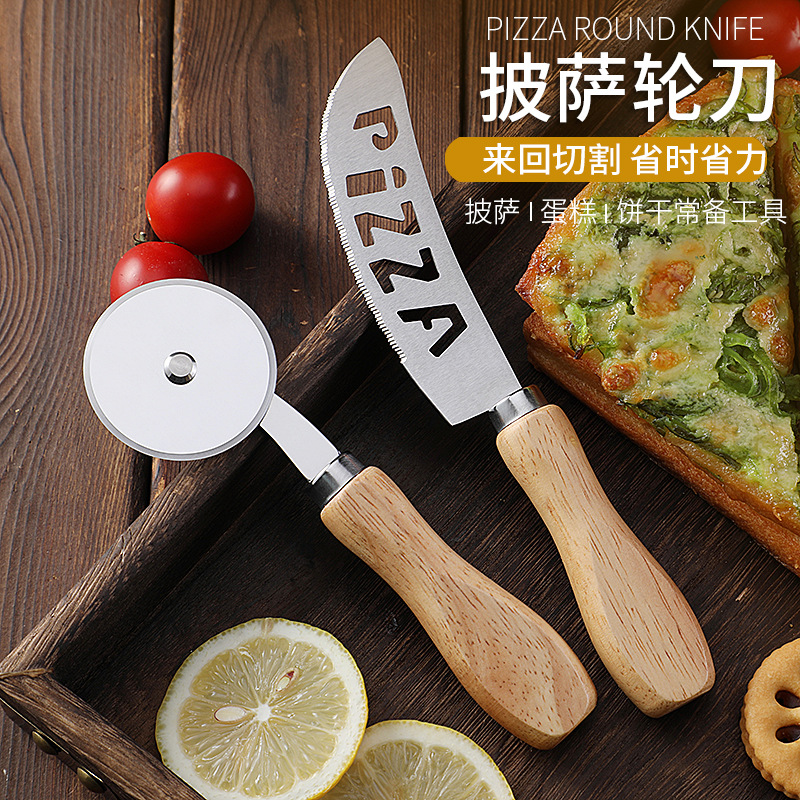 现货烘培工具橡木柄芝士刀披萨刀牙刀滚轮刀家用披萨轮刀工具套装