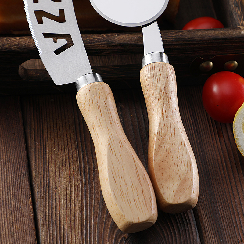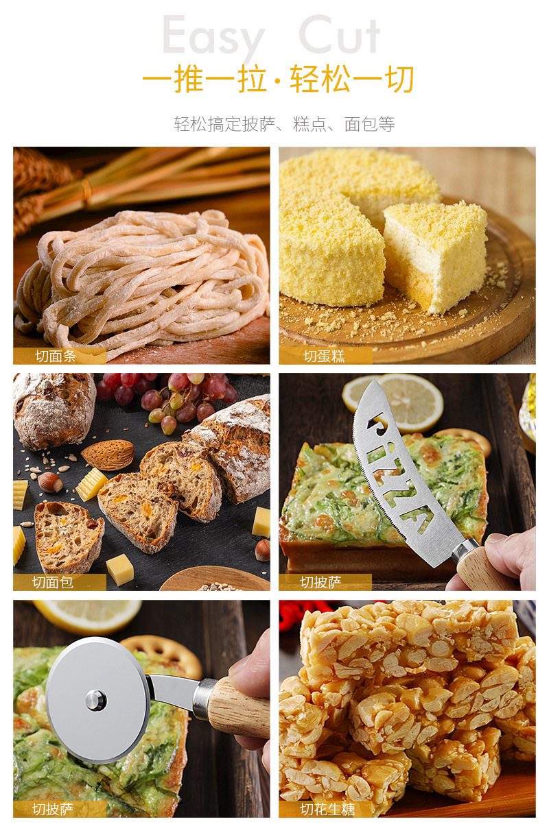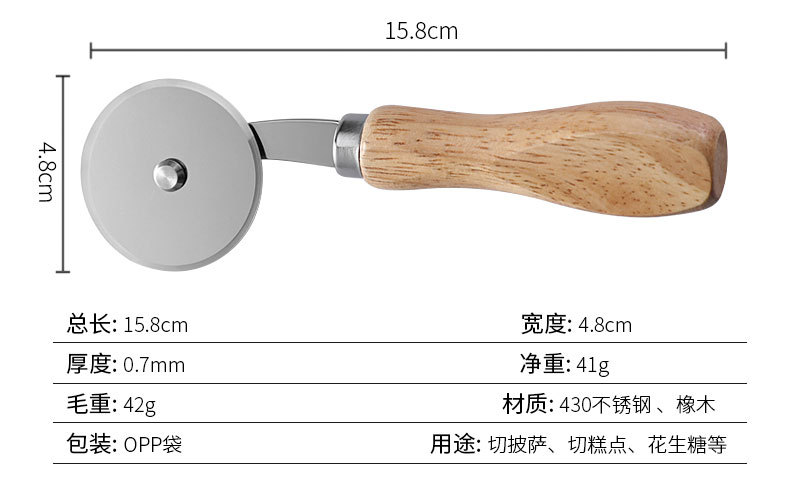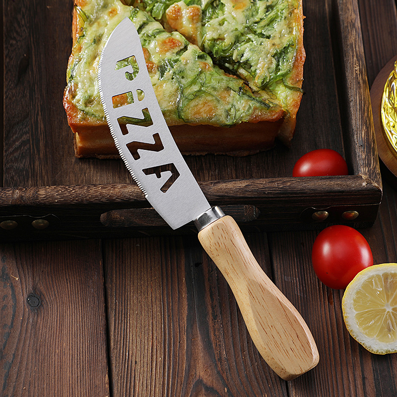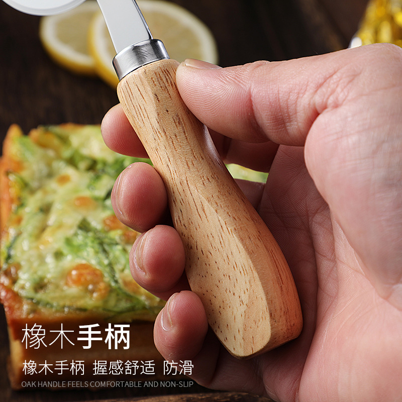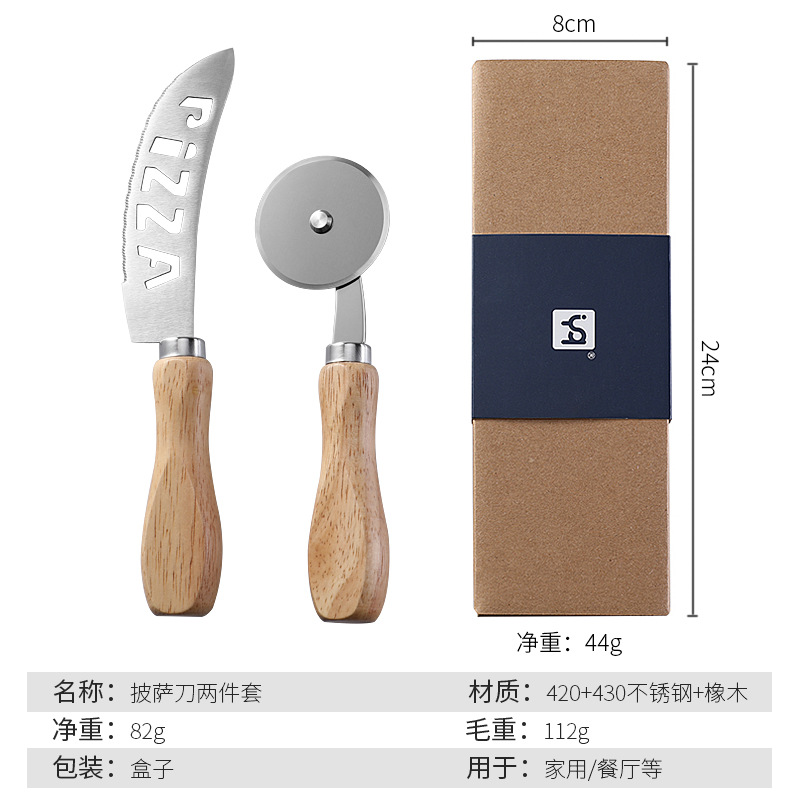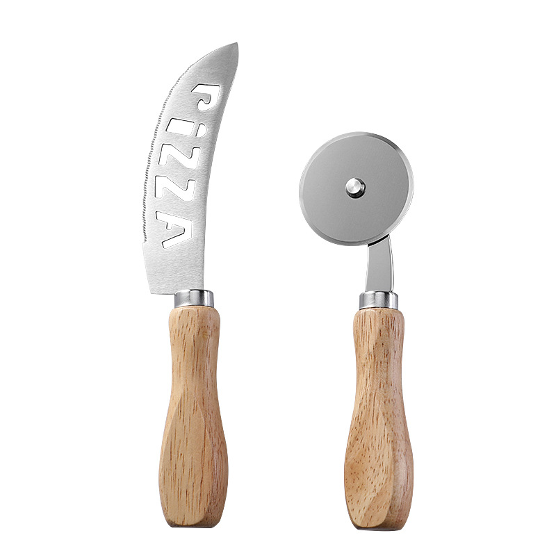 现货烘培工具橡木柄芝士刀披萨刀牙刀滚轮刀家用披萨轮刀工具套装