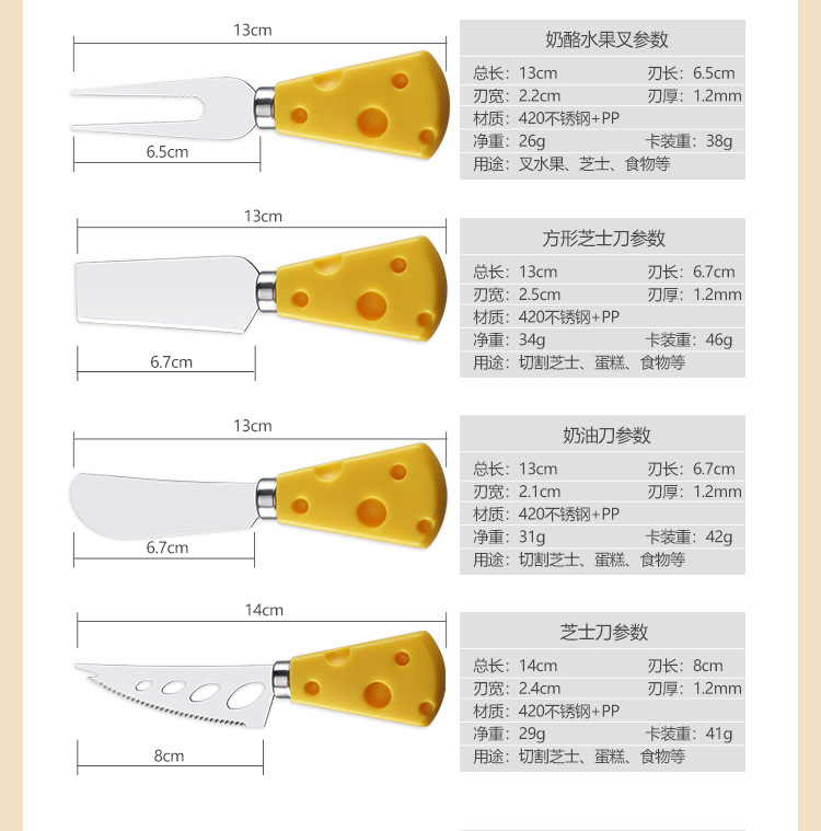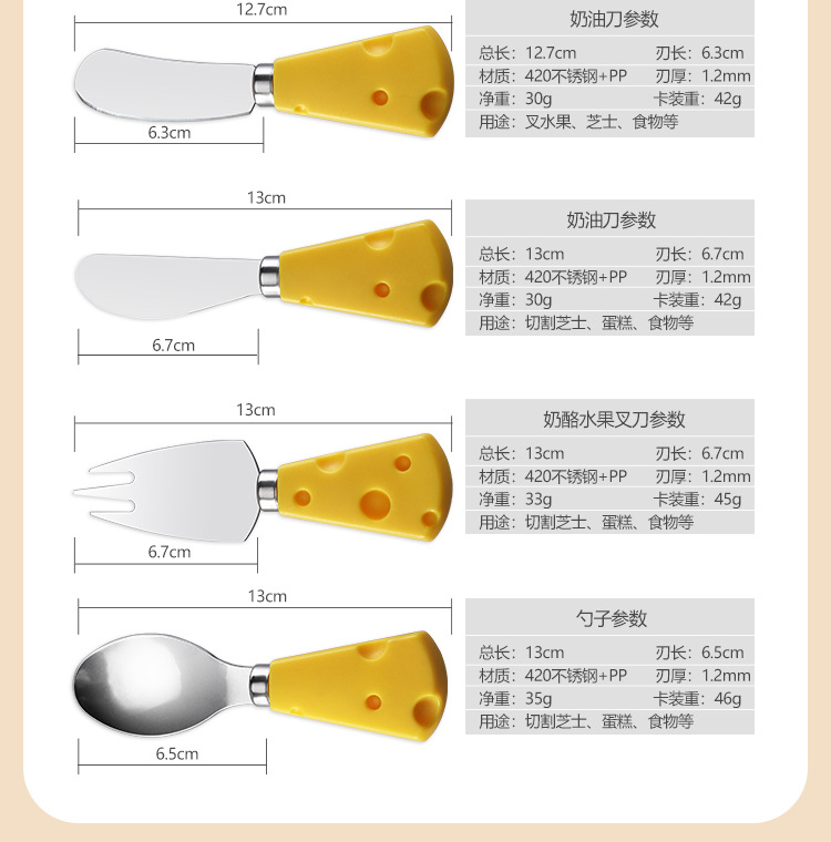 创意手柄芝士工具黄油奶酪刀厨房餐具叉勺子不锈钢芝士刀蛋糕