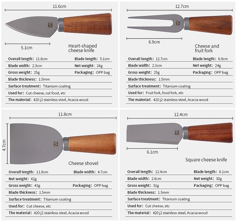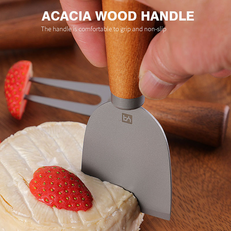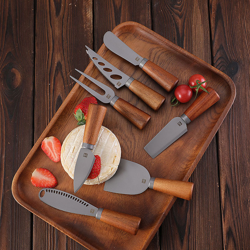 跨境现货高品质芝士工具相思木柄奶酪刀叉铲子不锈钢黄油刀芝士刀