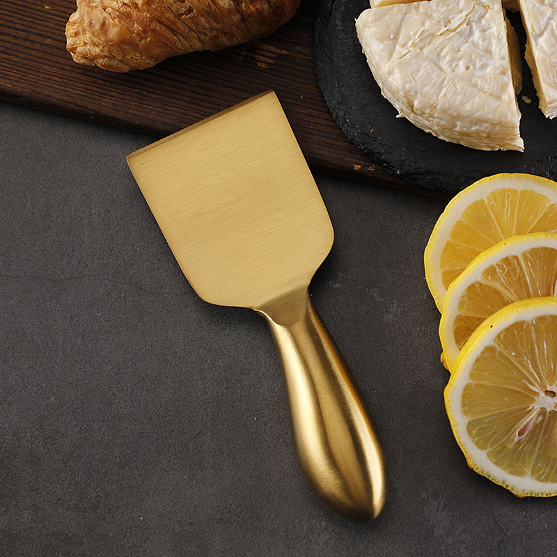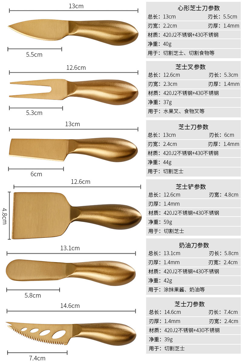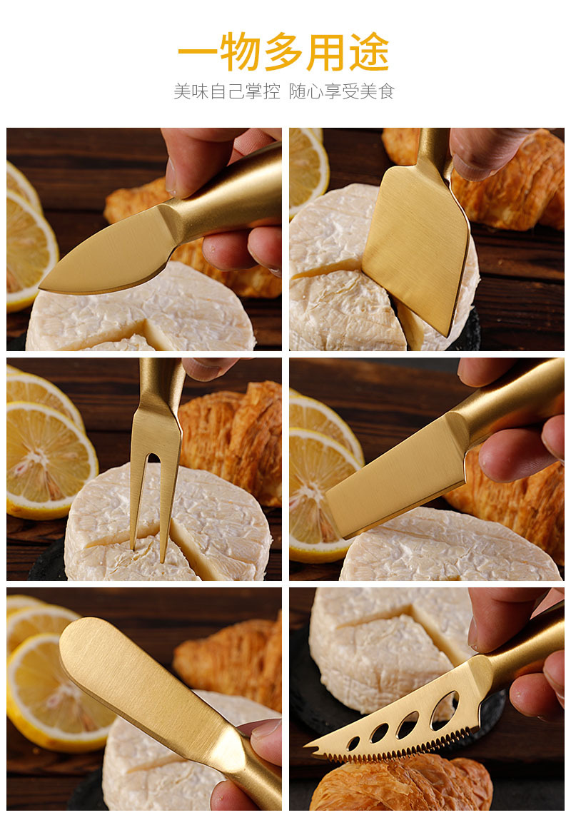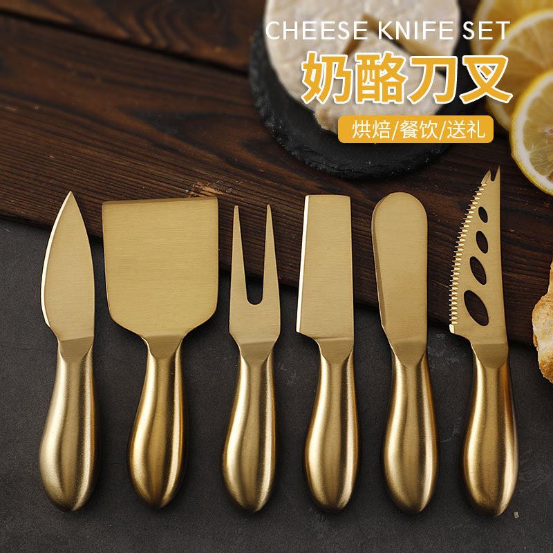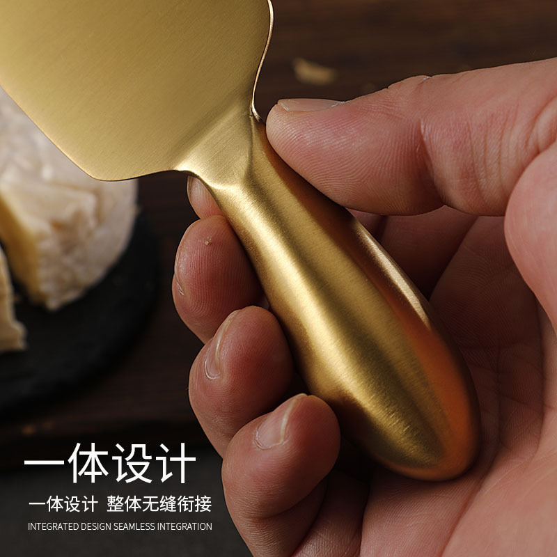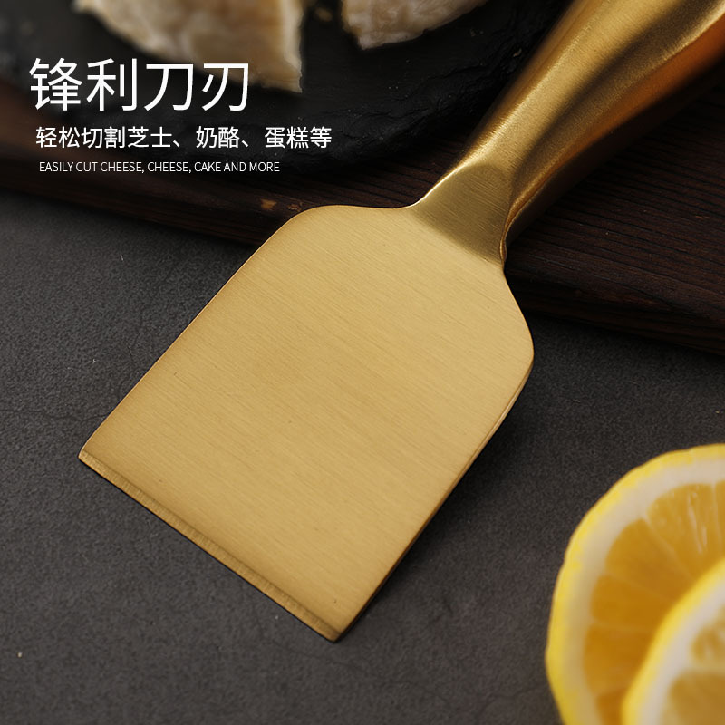 跨境现货金色不锈钢芝士刀空心柄奶酪刀叉西餐刀具黄油奶油抺刀