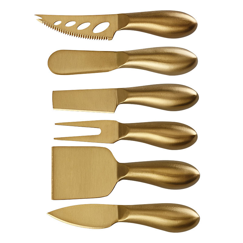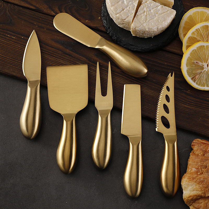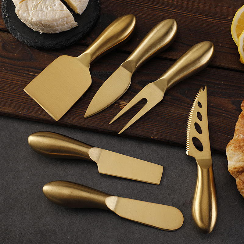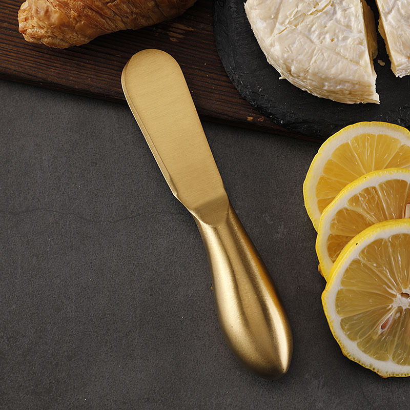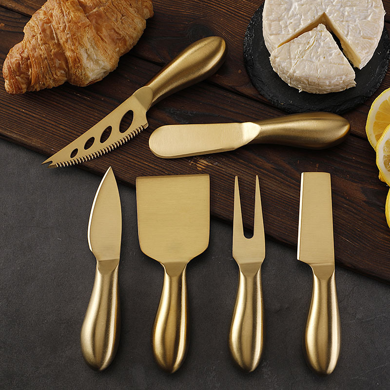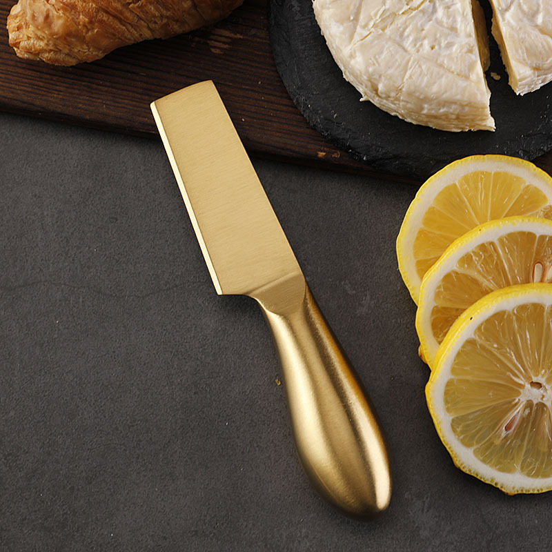 跨境现货金色不锈钢芝士刀空心柄奶酪刀叉西餐刀具黄油奶油抺刀