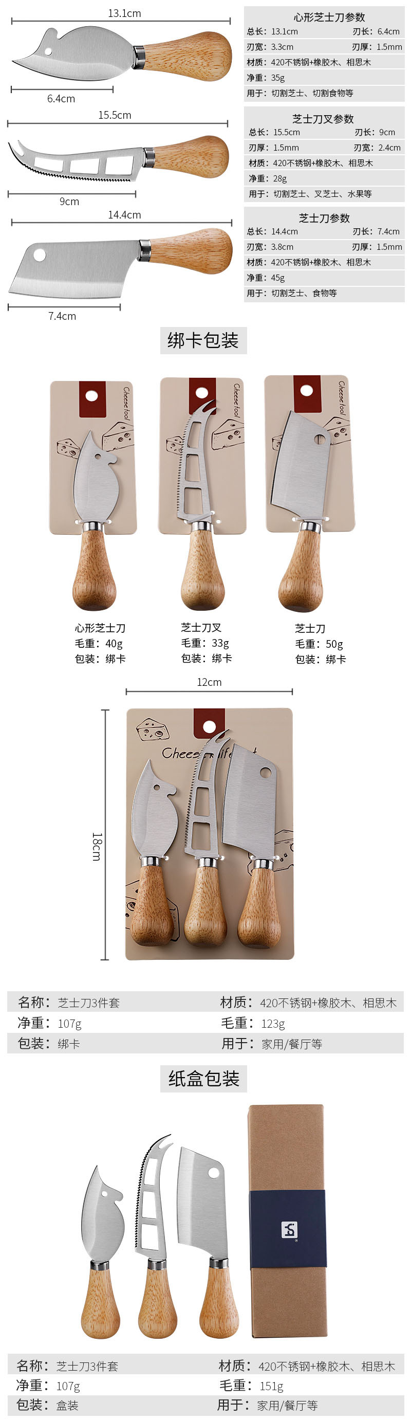 工厂现货可立芝士刀不锈钢小菜刀带牙面包起司刀创意老鼠刀水果刀