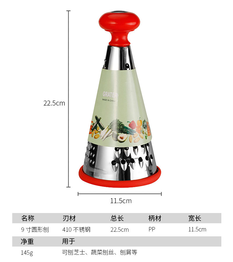 9寸圆形不锈钢三面刨多功能切菜器刨丝擦丝器巧克力柠檬刨芝士刨