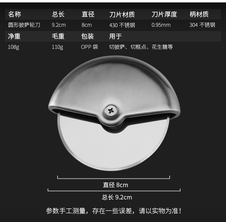 现货烘焙工具304不锈钢圆形滚轮刀 介饼刀切饼器披萨轮刀 披萨刀