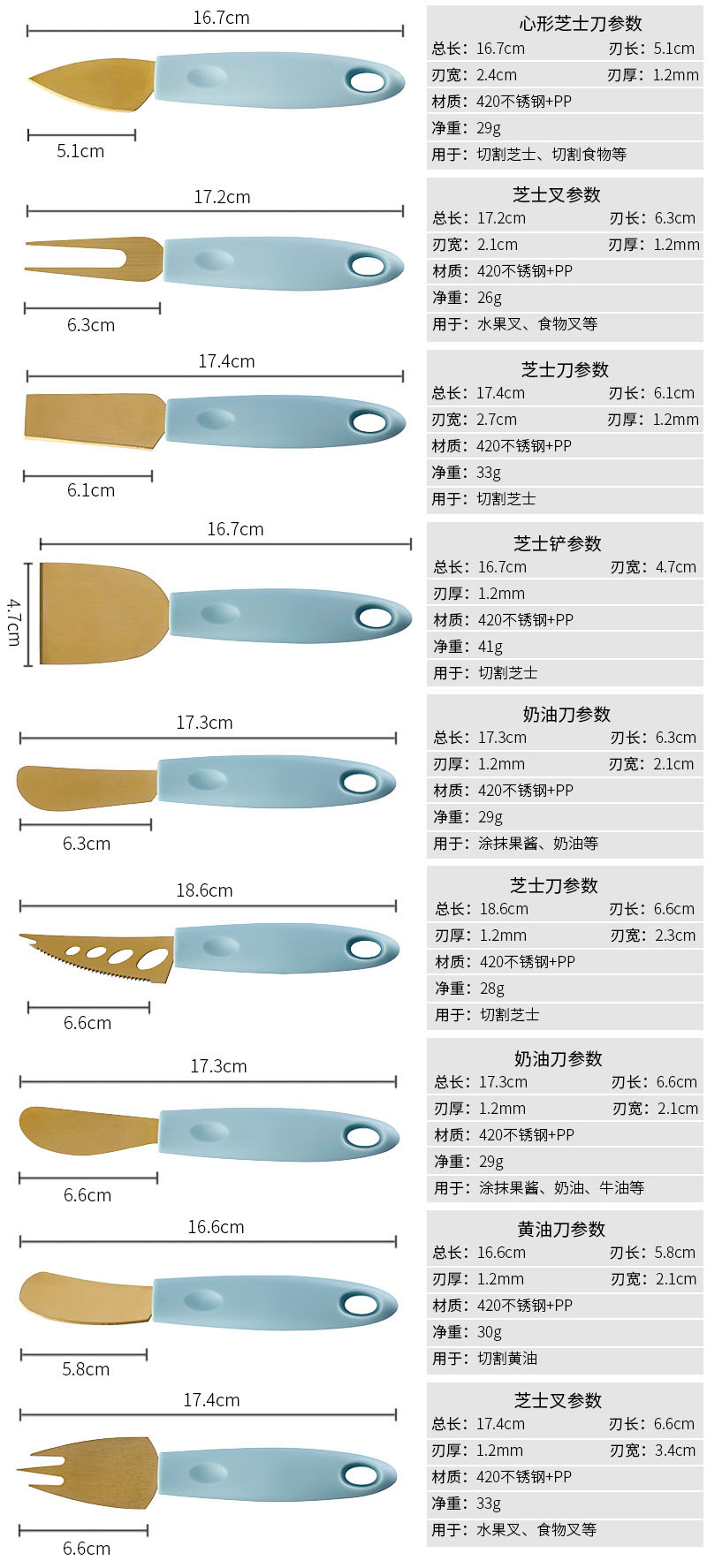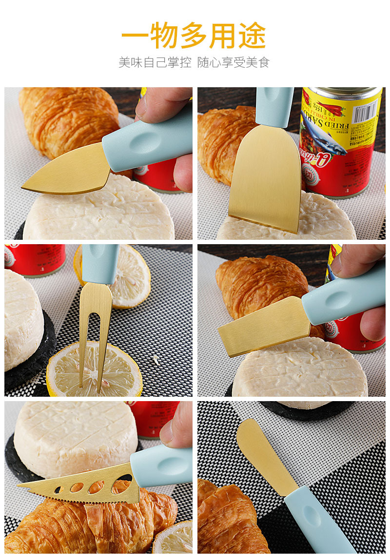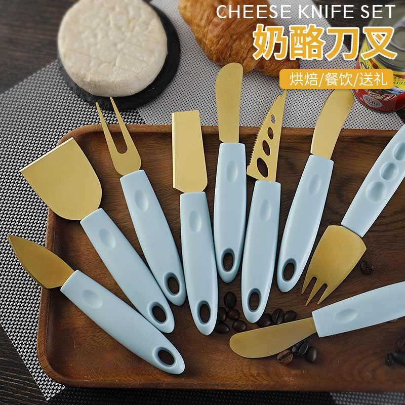 现货PP柄水果面包刀叉西式餐具黄油奶油刀金色不锈钢芝士刀奶酪刀