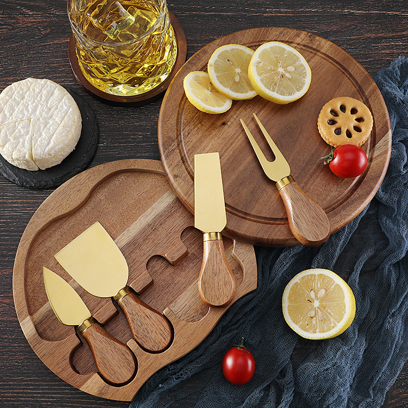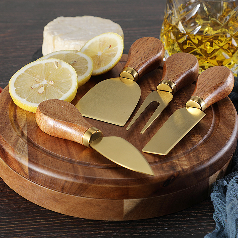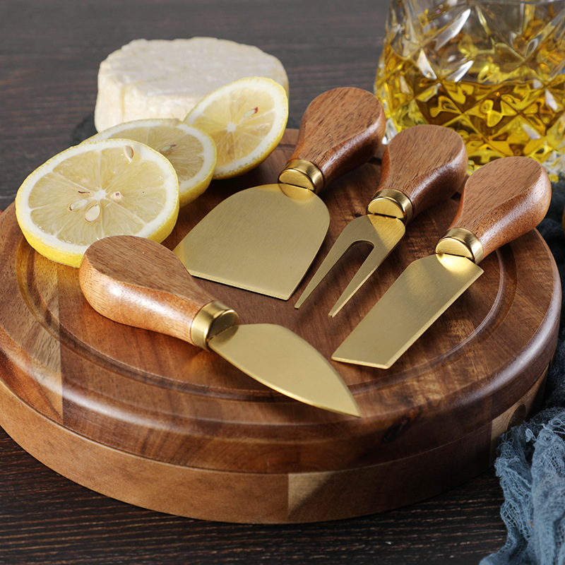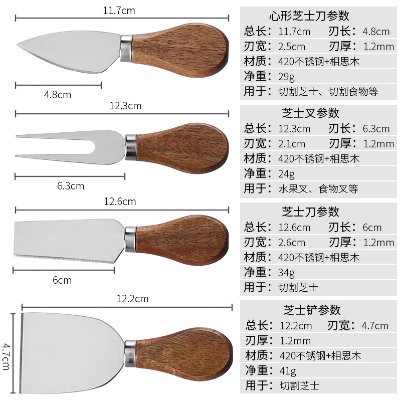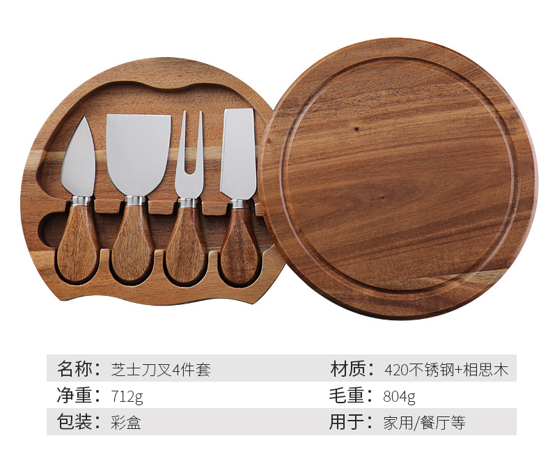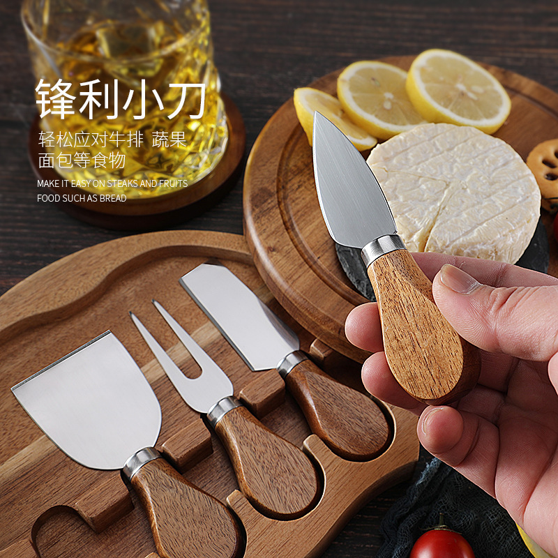 跨境相思木芝士圆木盒奶酪刀具四件套礼品刀叉奶酪刀芝士刀套装