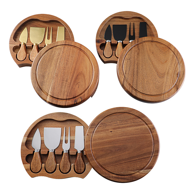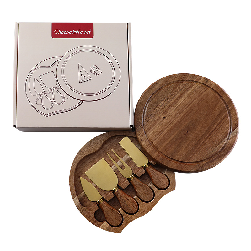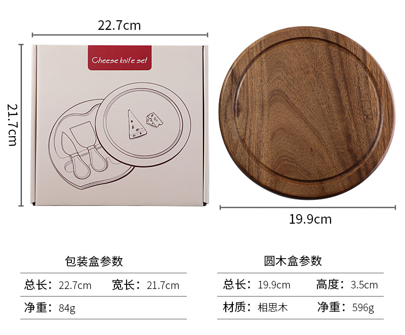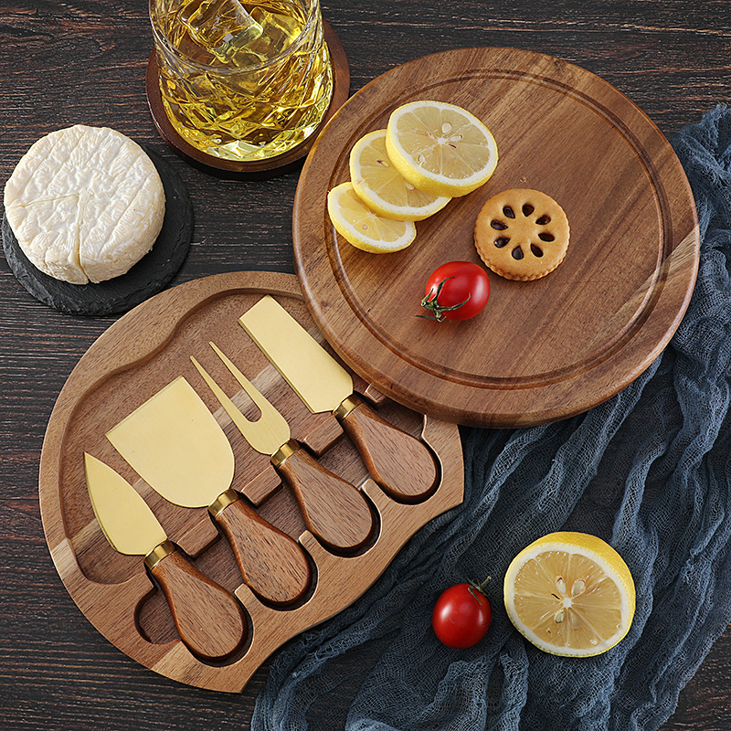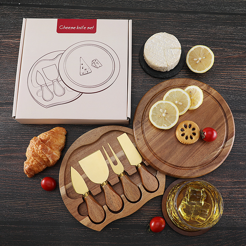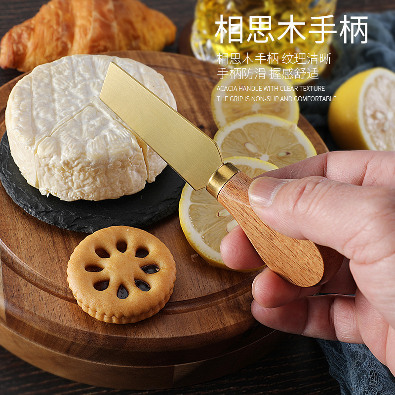 跨境相思木芝士圆木盒奶酪刀具四件套礼品刀叉奶酪刀芝士刀套装